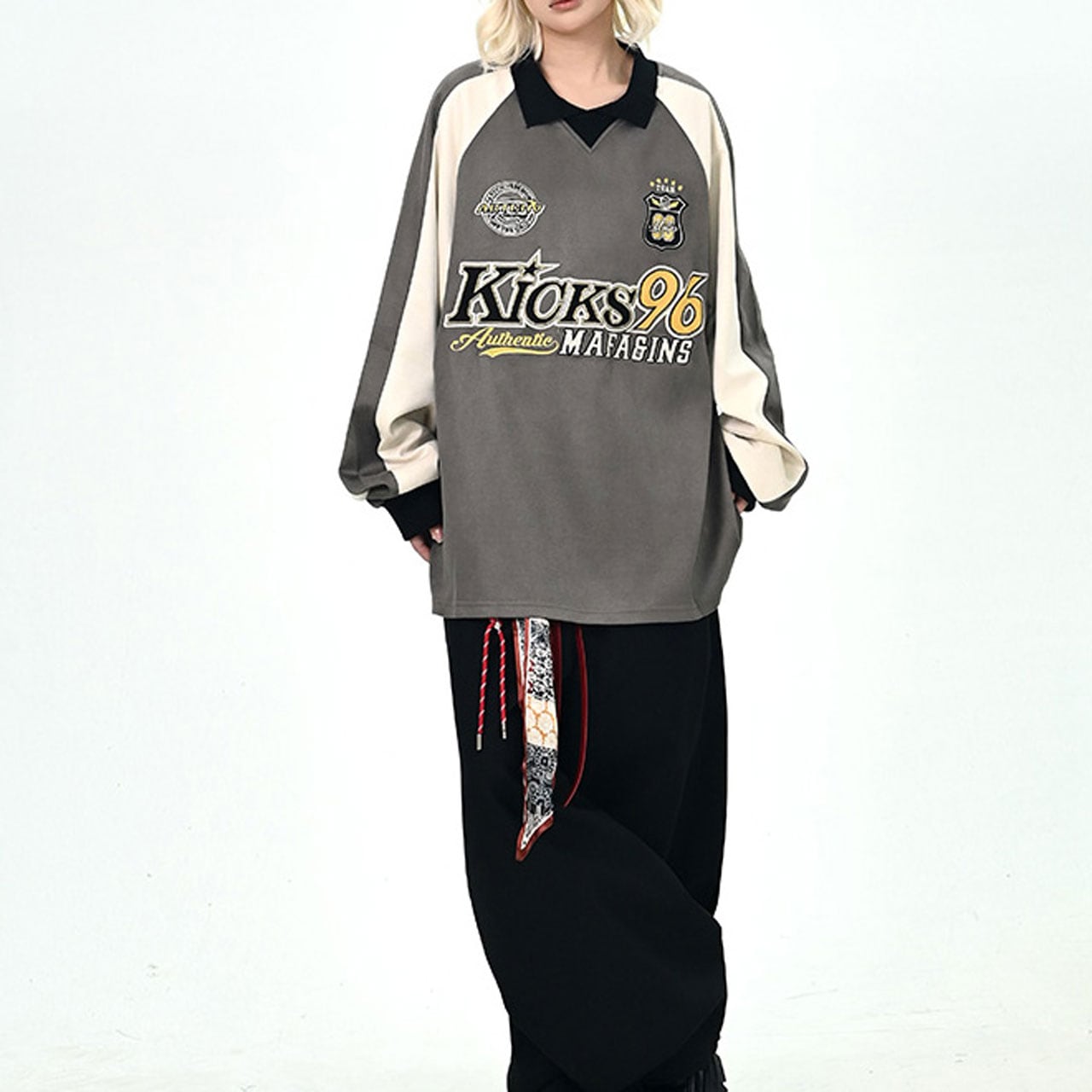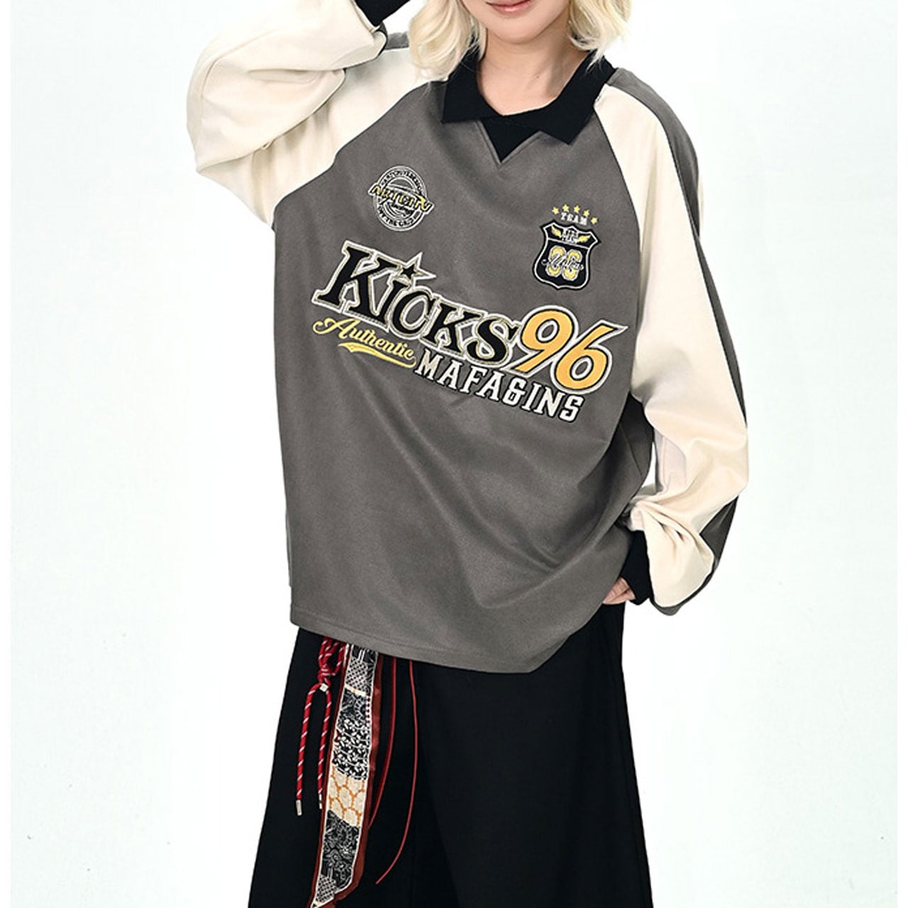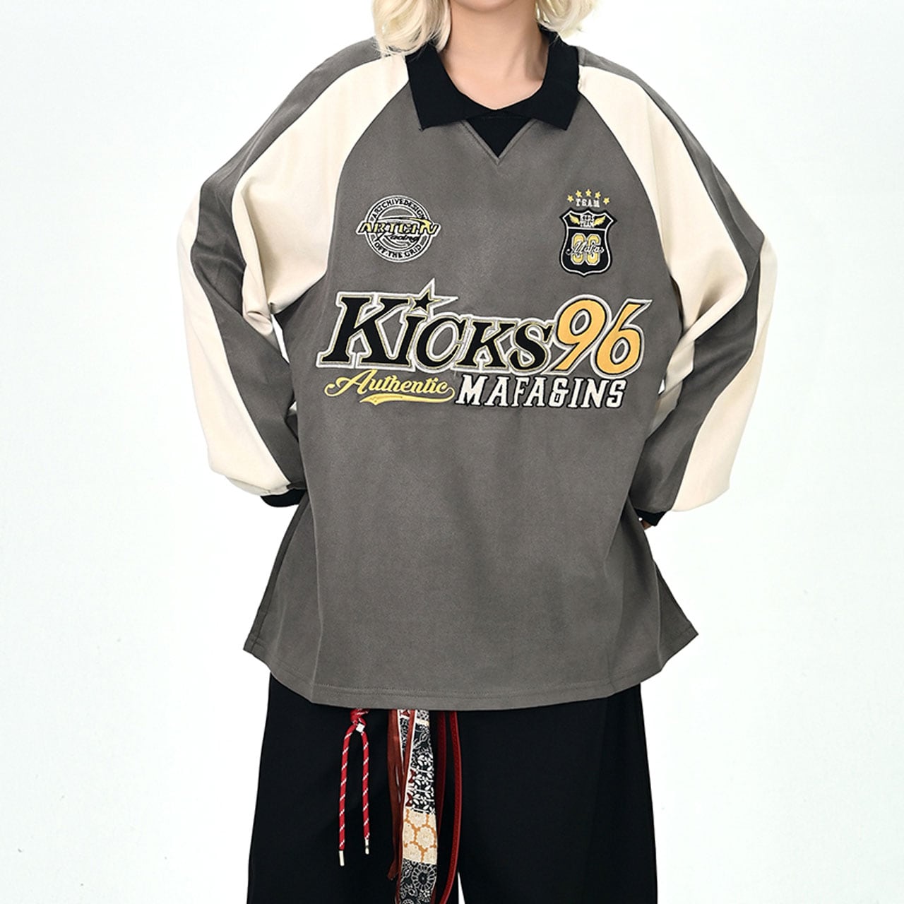 カレッジロゴバイカラーポロスウェット 2col R01070