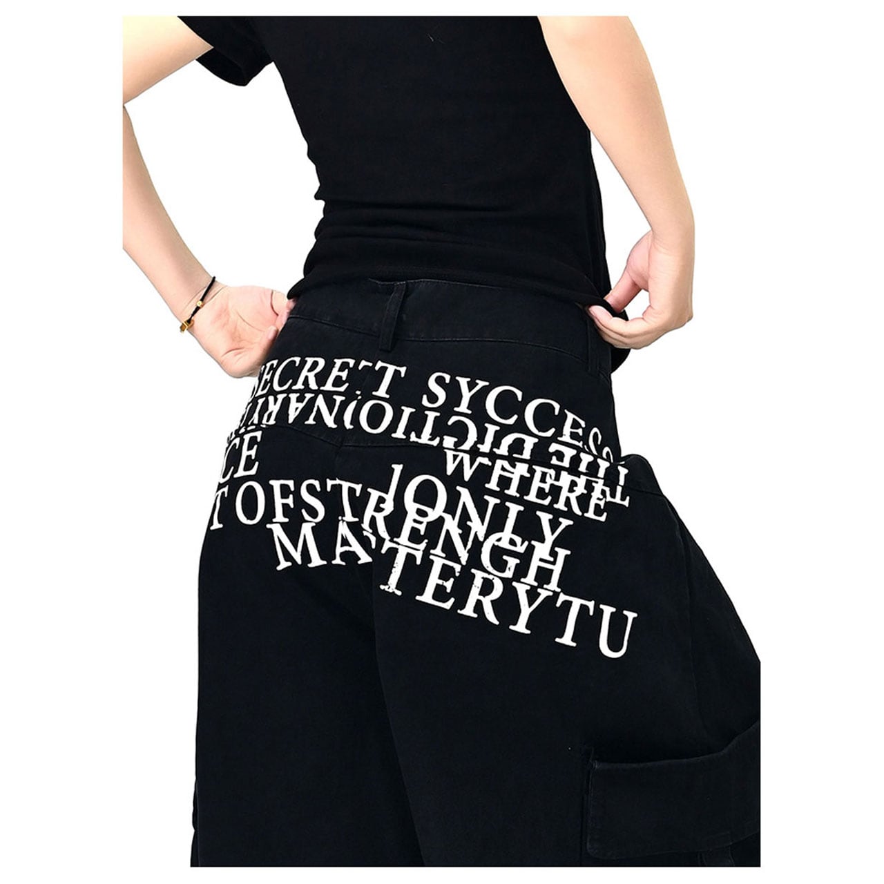 ヒップまわりのロゴプリントが目を引くカーゴパンツ。