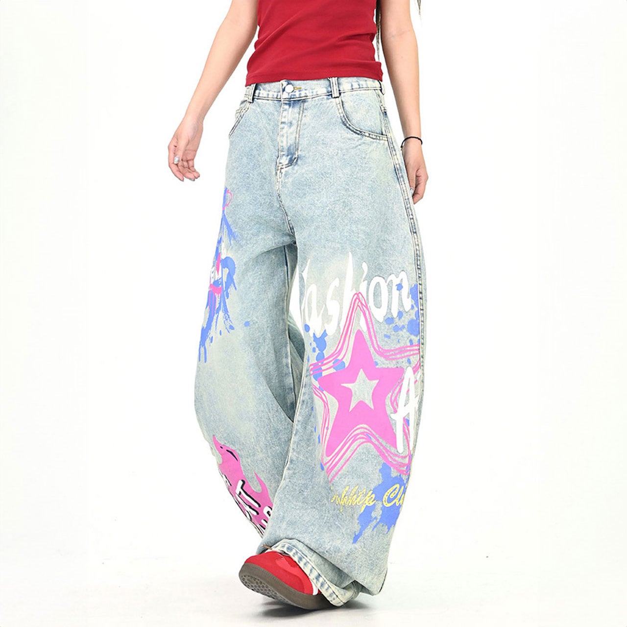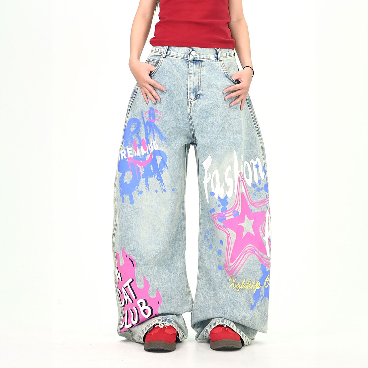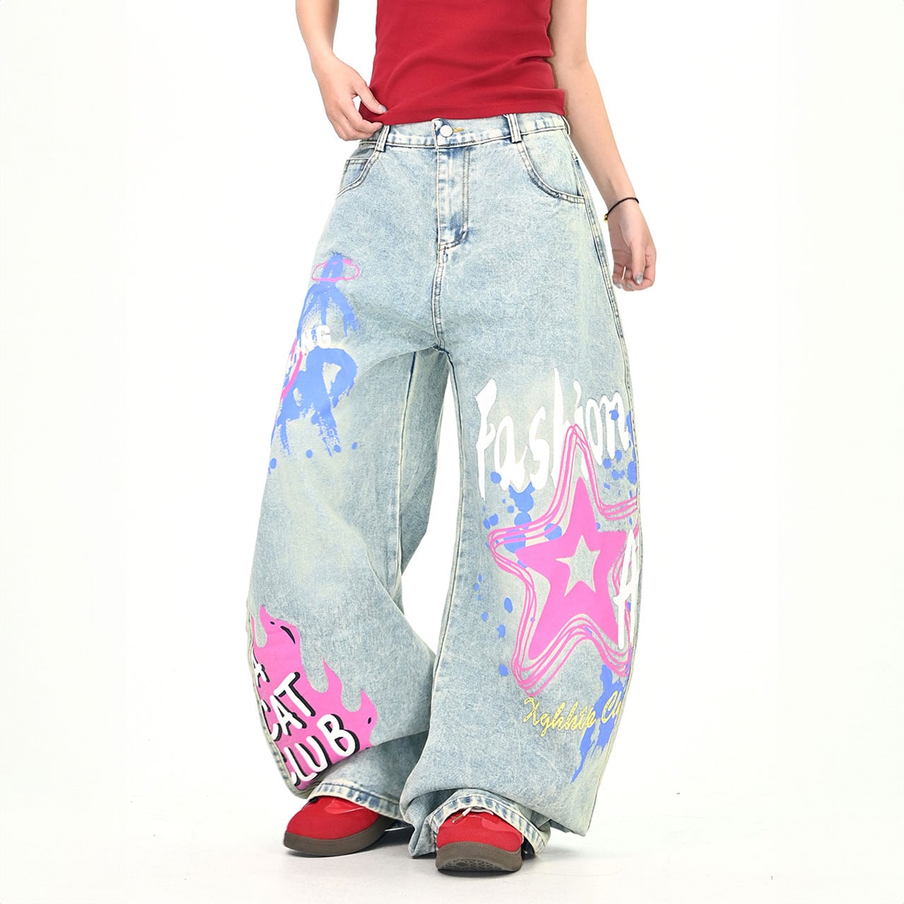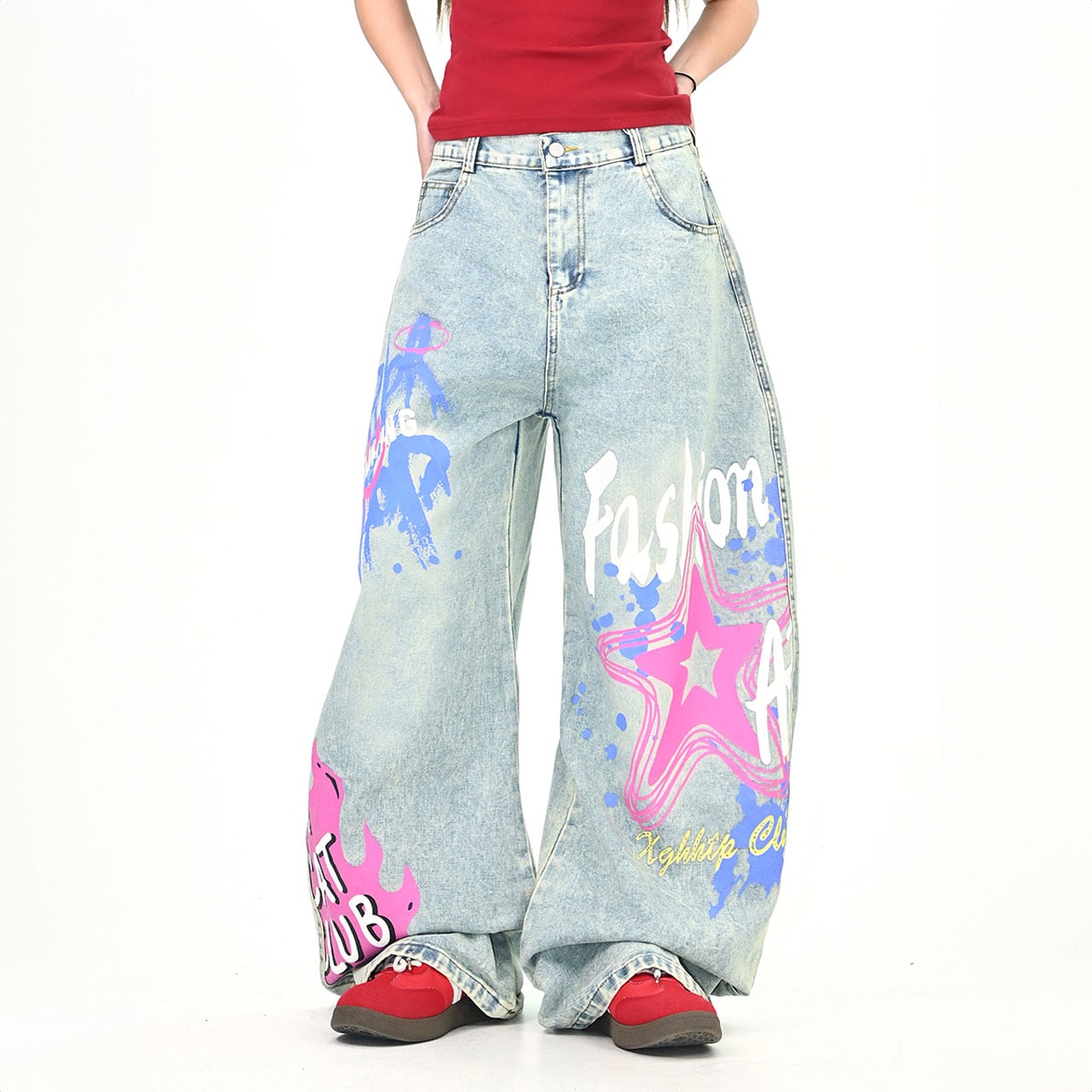 ビビッドなペイントが映えるグラフィックデニムパンツ。