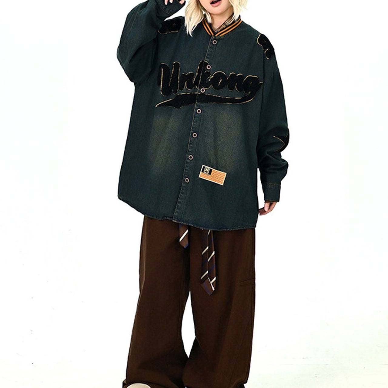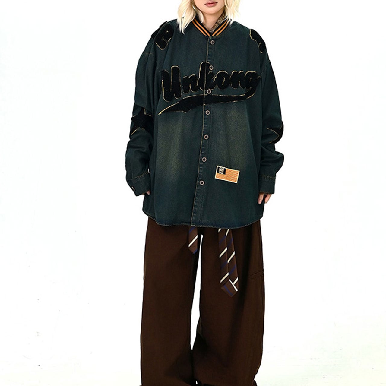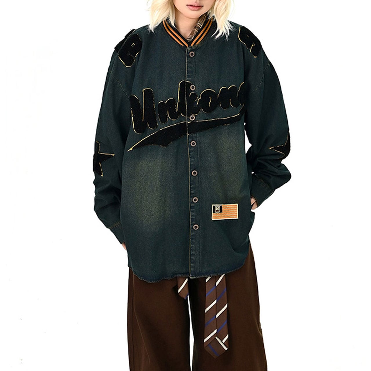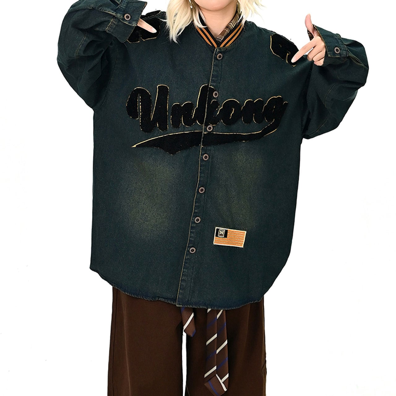 ビッグロゴ刺繍が目を引くデニムシャツジャケット。