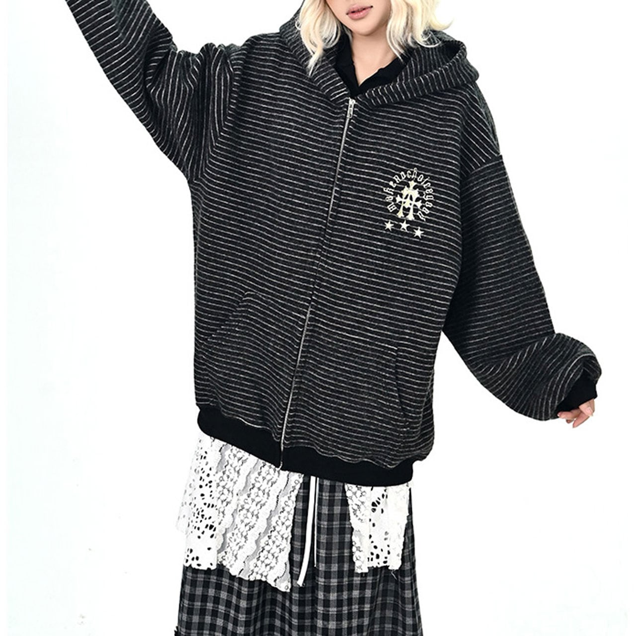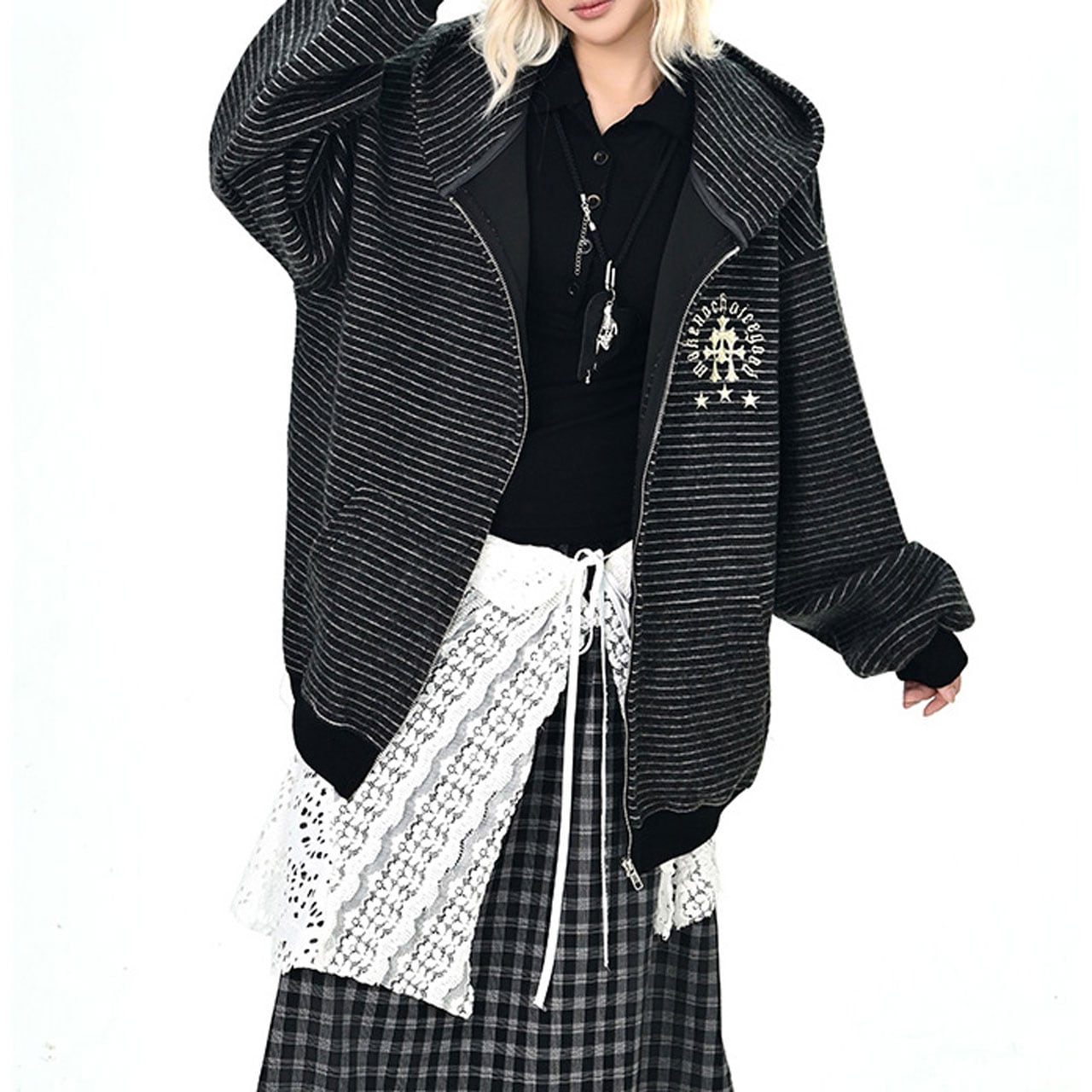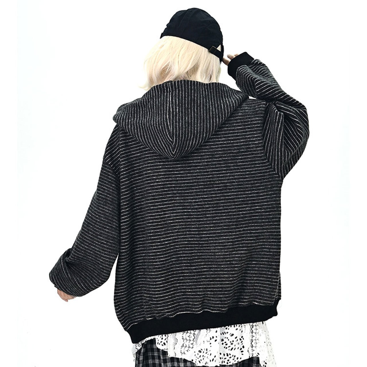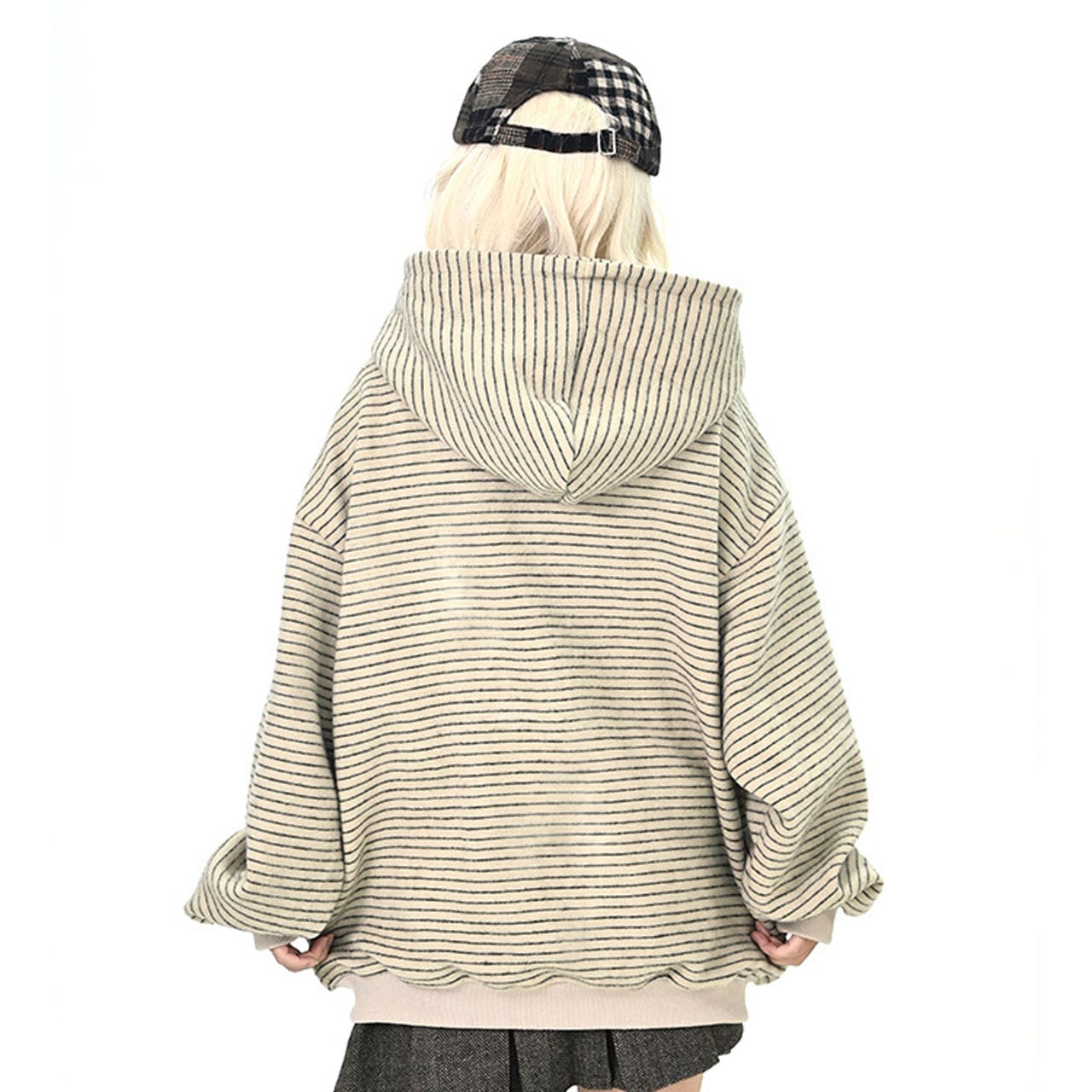 ゆるボリューム感がかわいいボーダージップパーカー。
