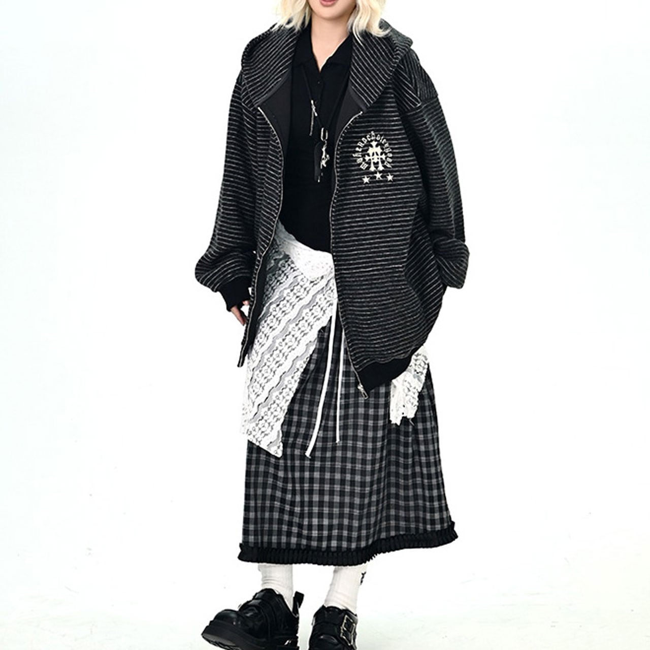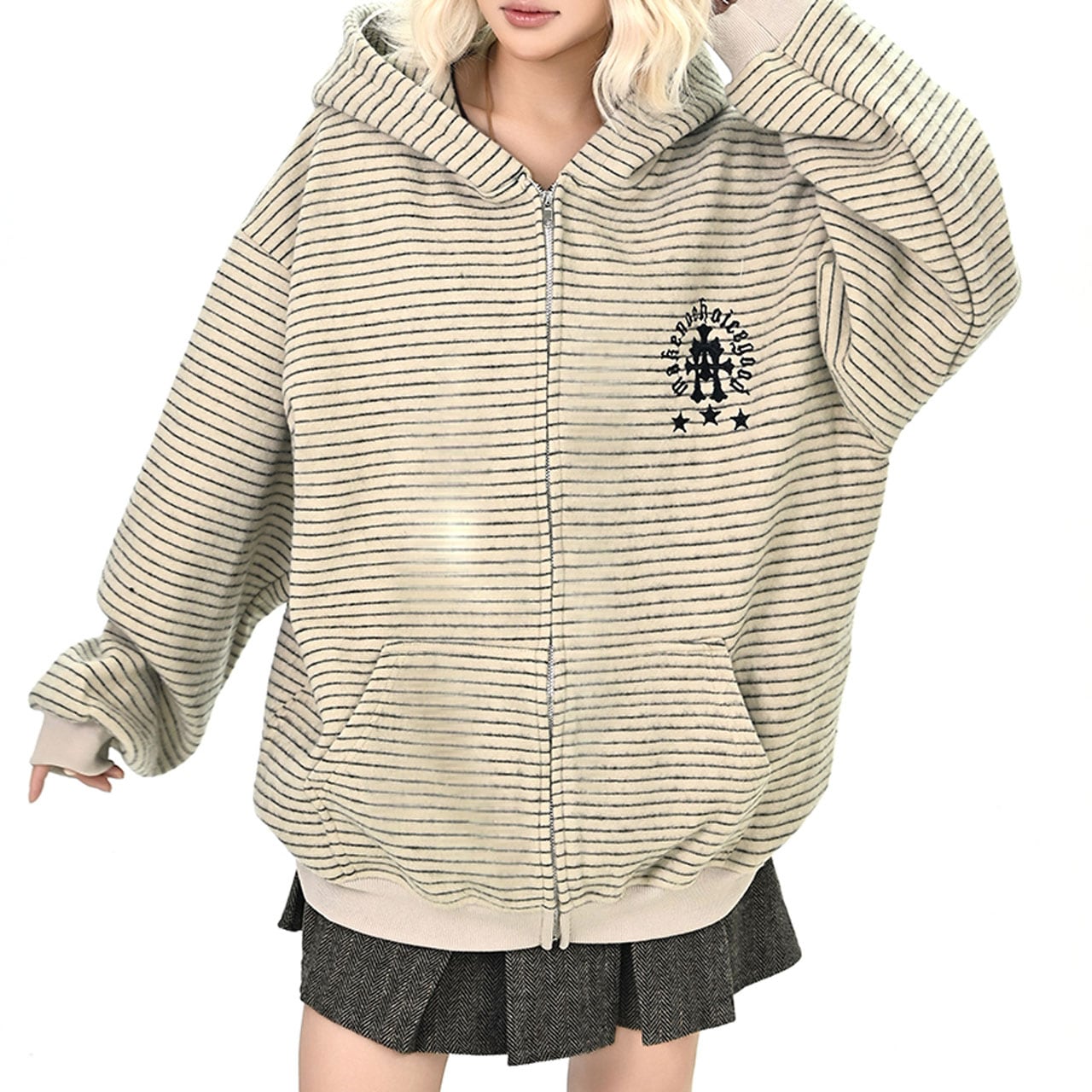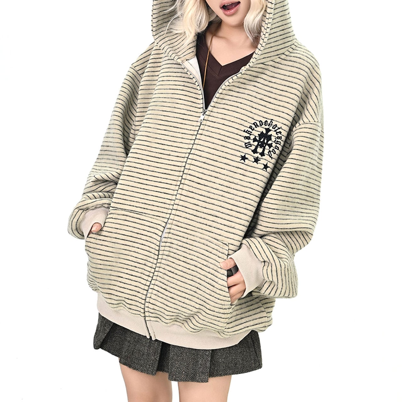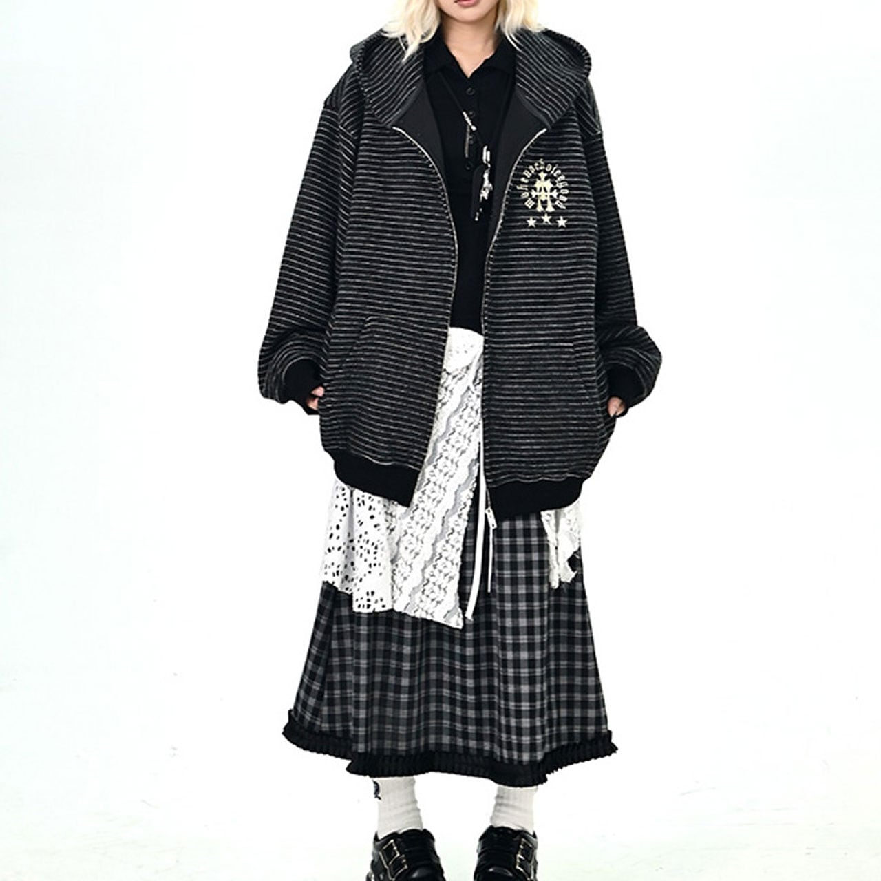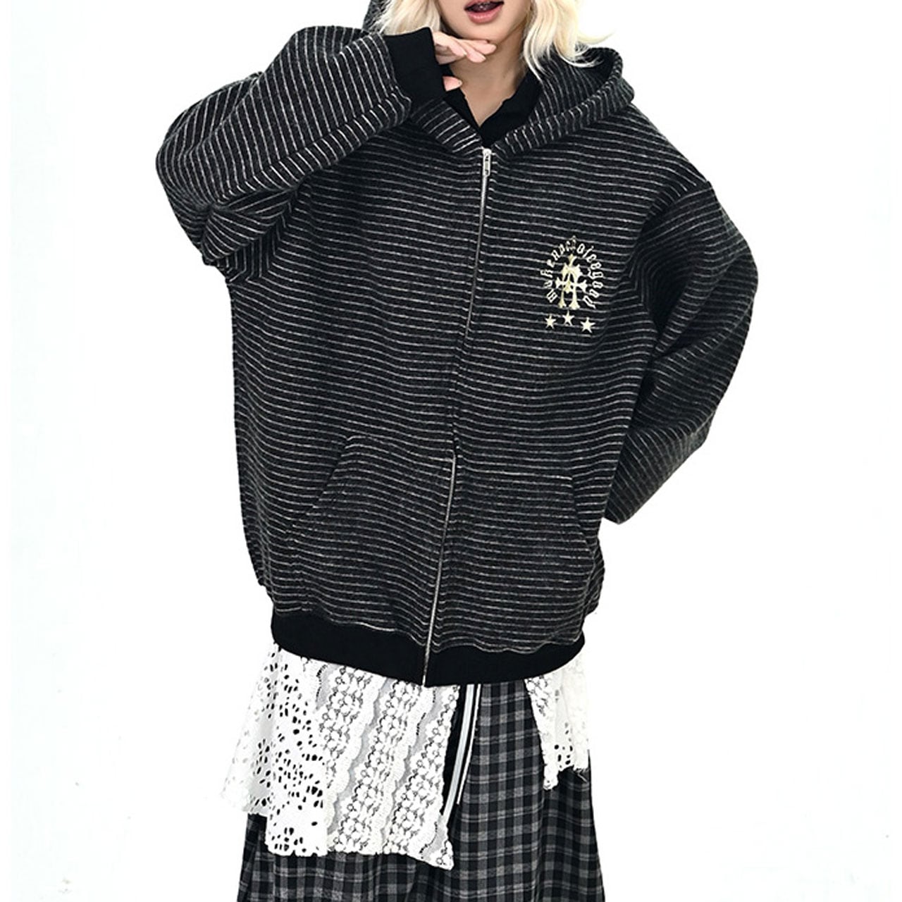 ゆるボリューム感がかわいいボーダージップパーカー。
