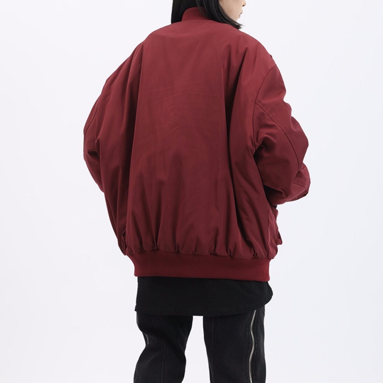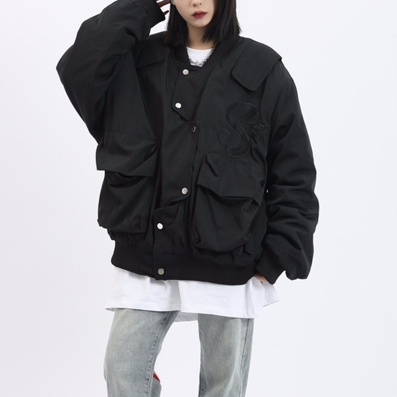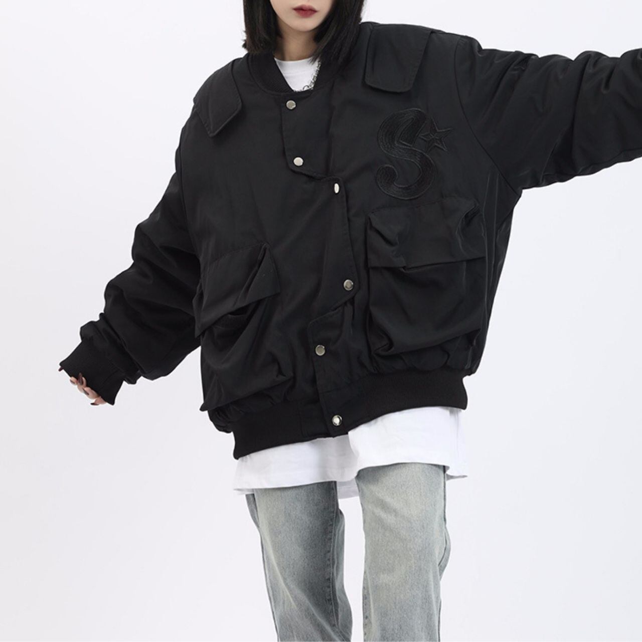 大胆なボリュームシルエットが目を引くスタジャンジャケット。