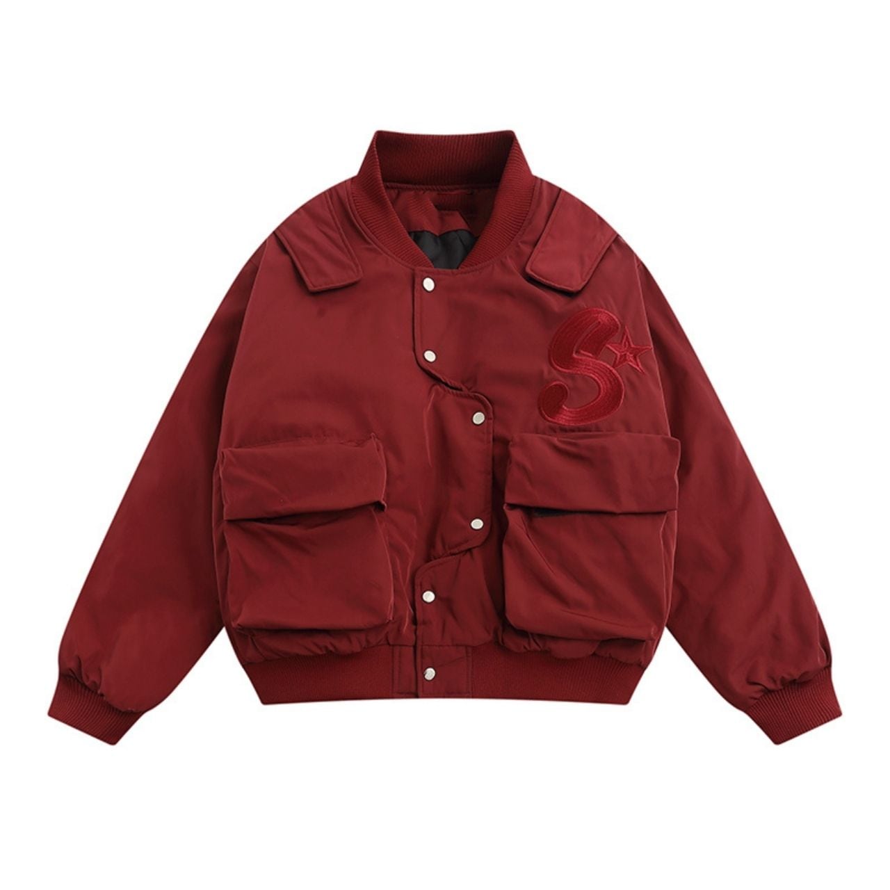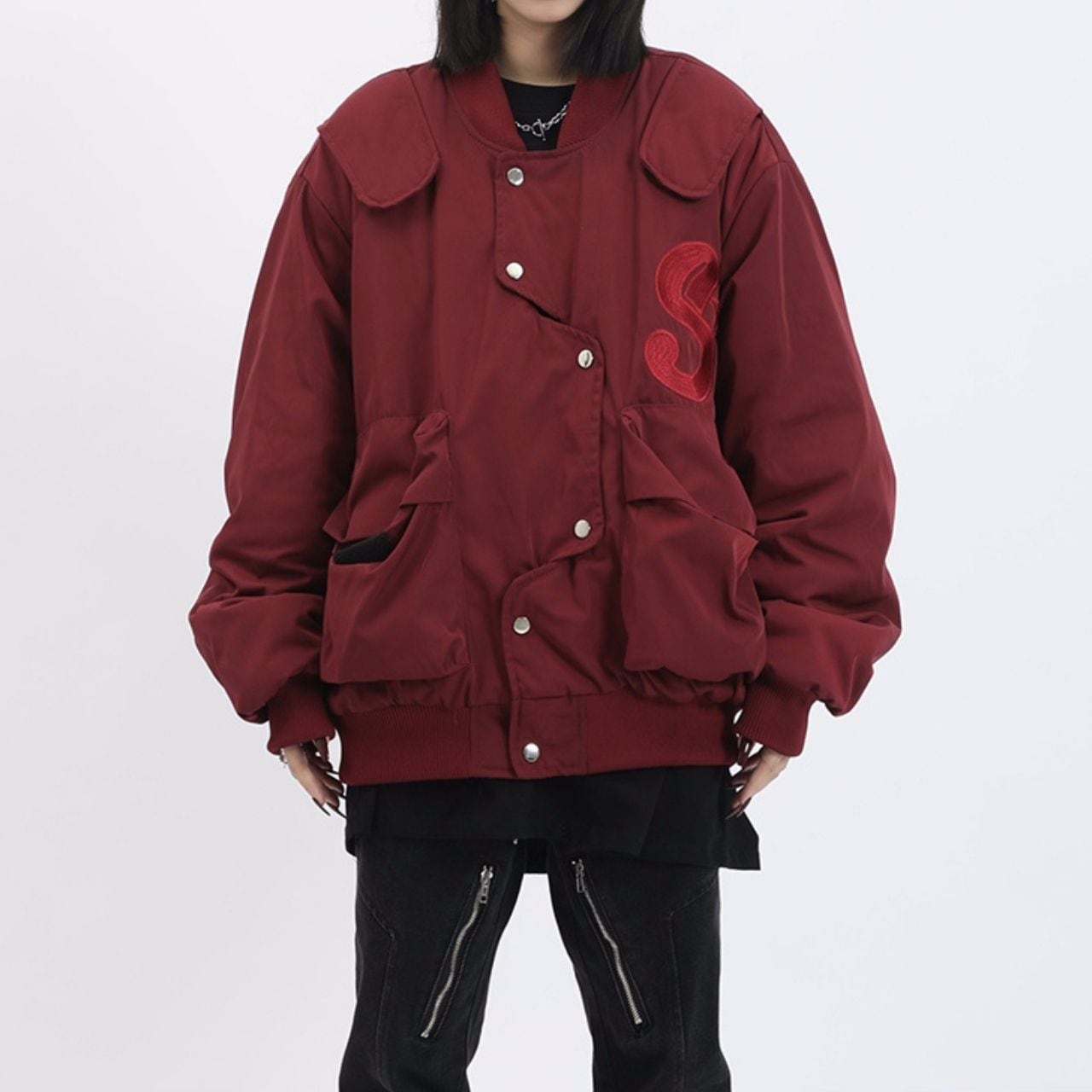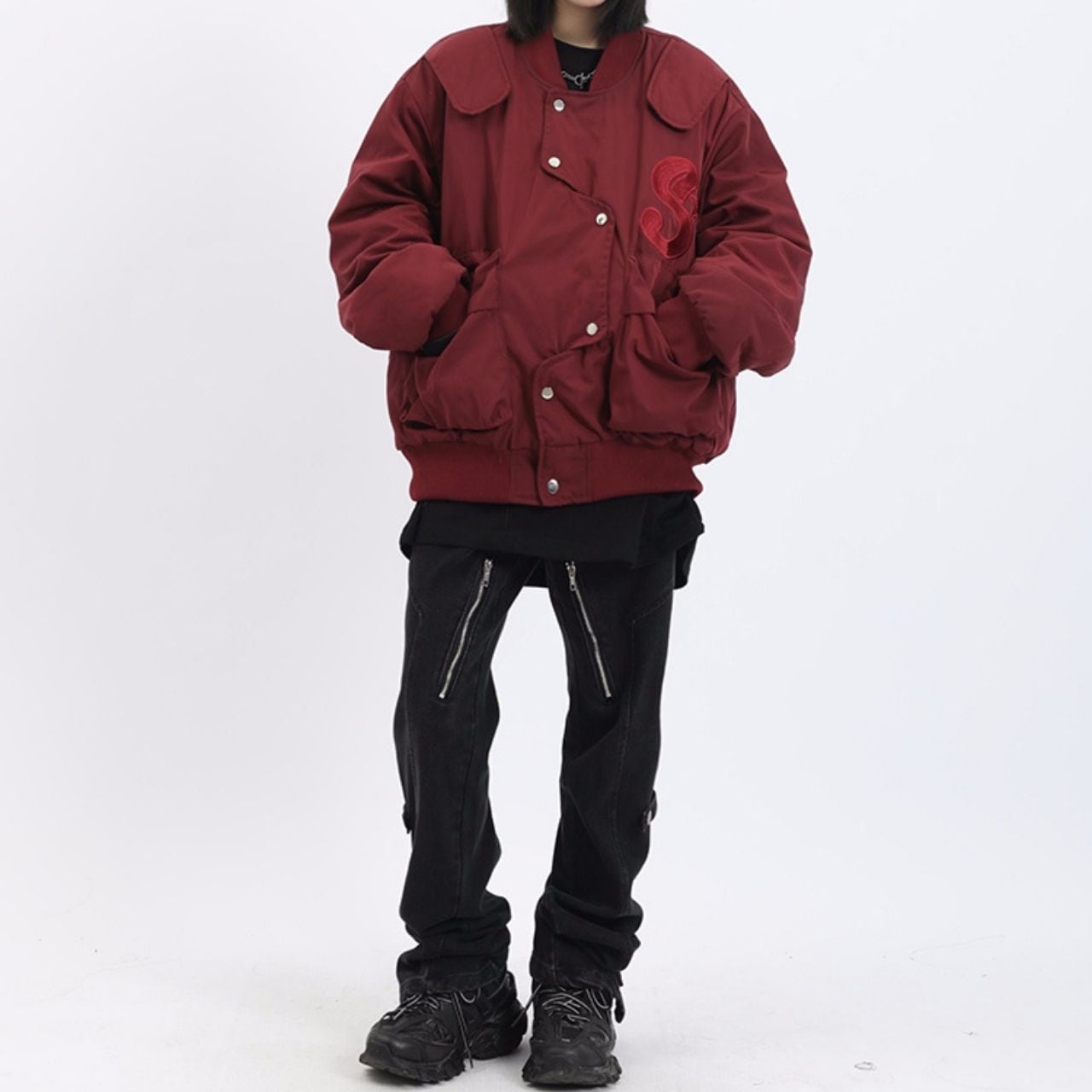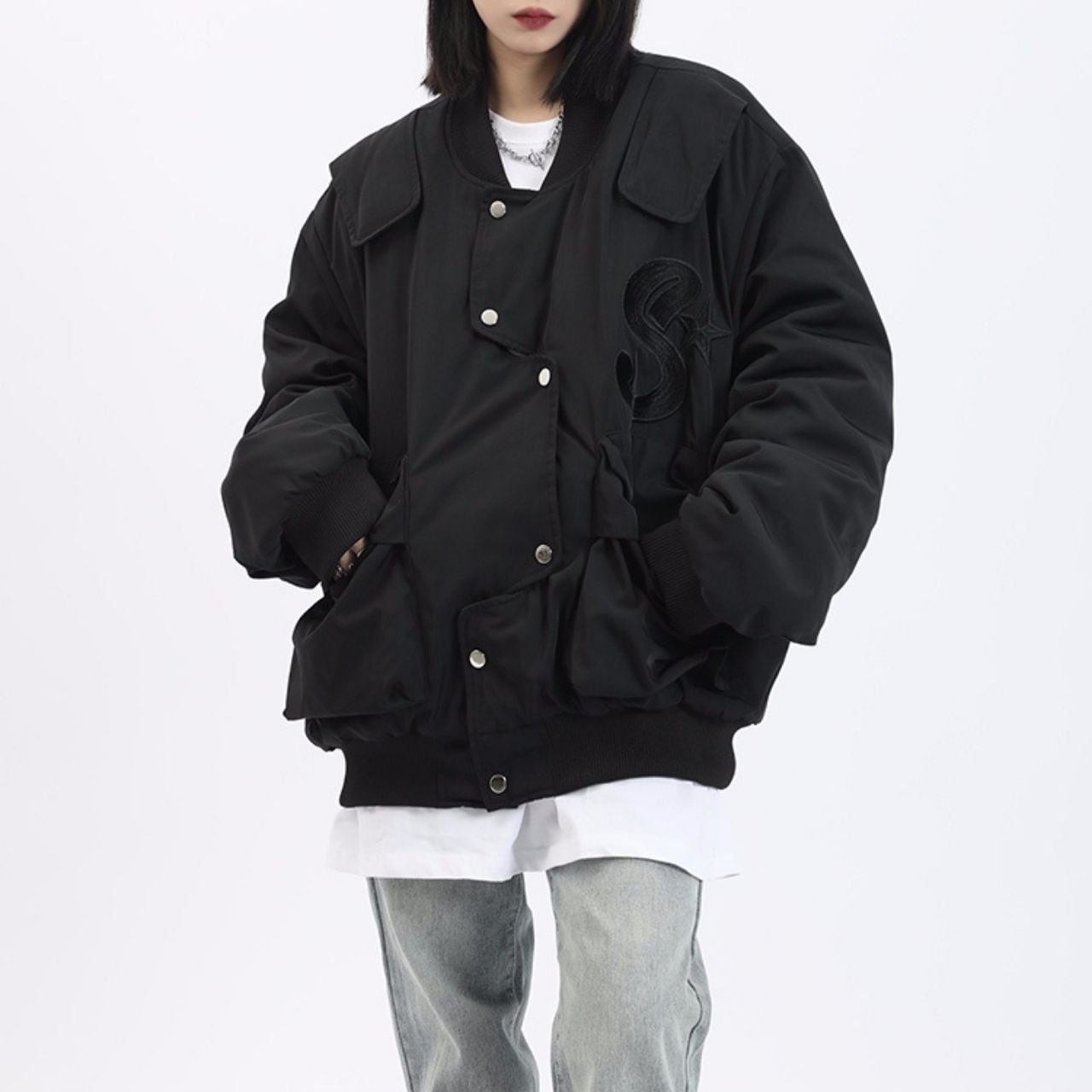 大胆なボリュームシルエットが目を引くスタジャンジャケット。