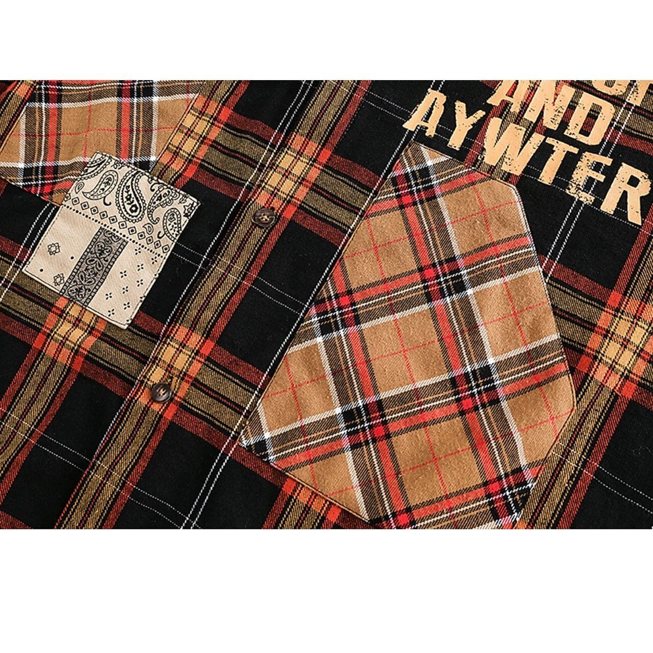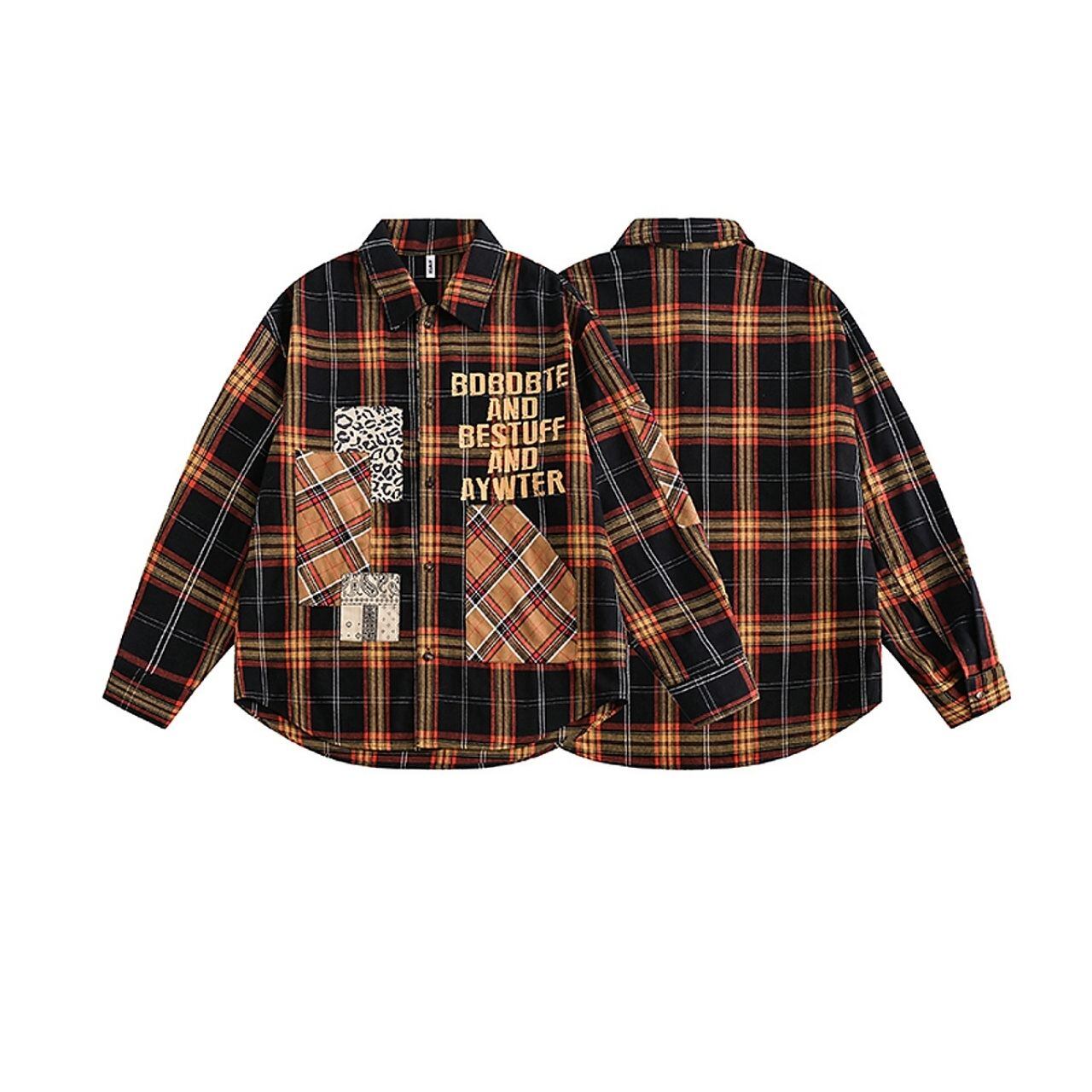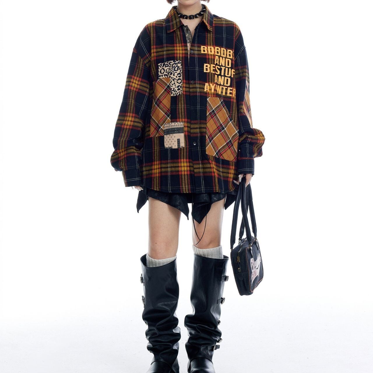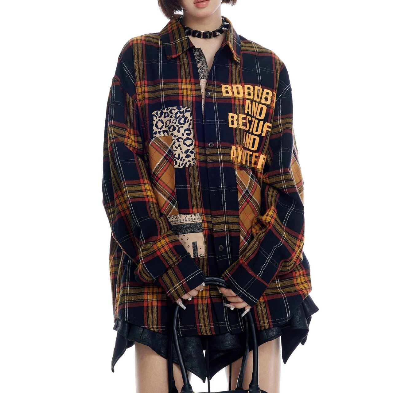 ユニークな切り替えデザインが魅力のパッチワークシャツ。