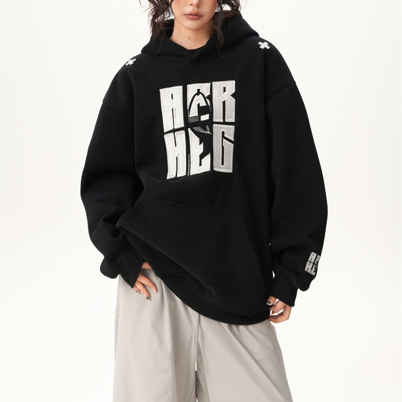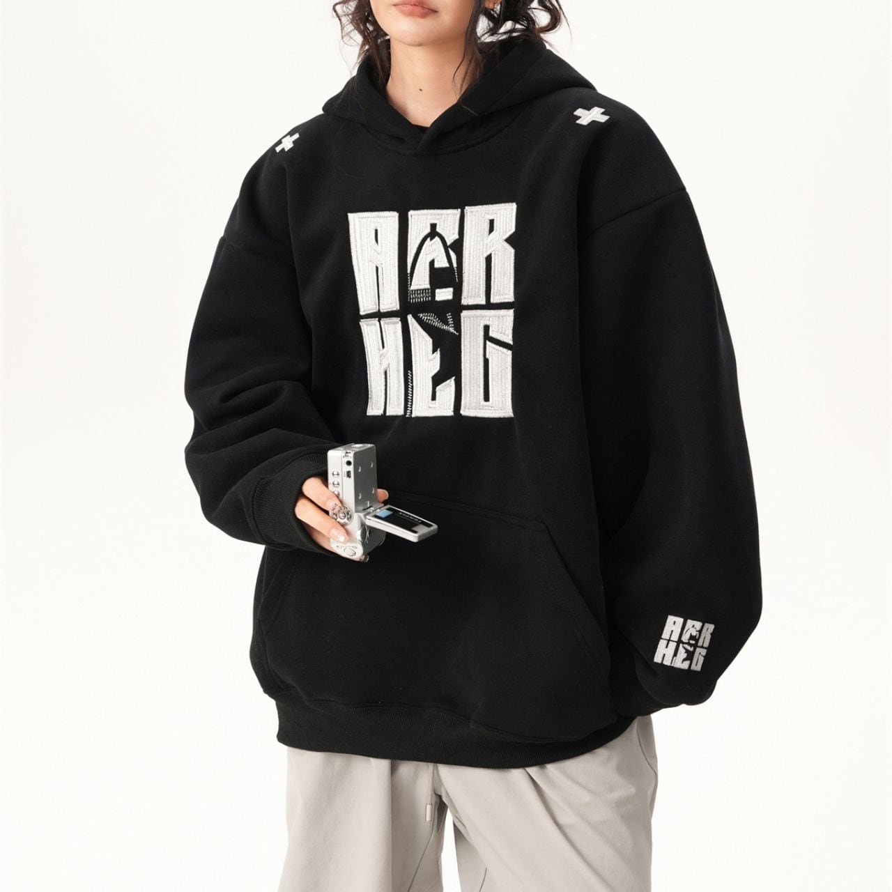 ボールドレタリングルーズパーカー 2col R01103