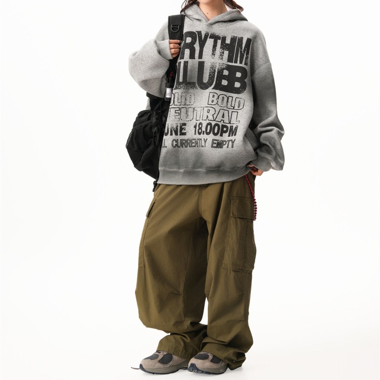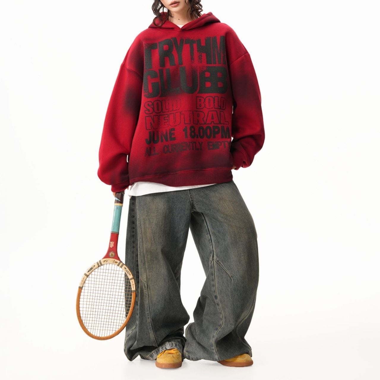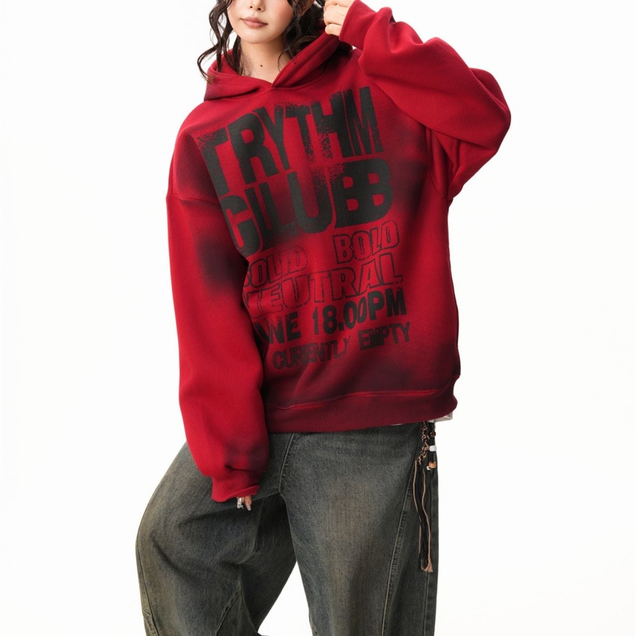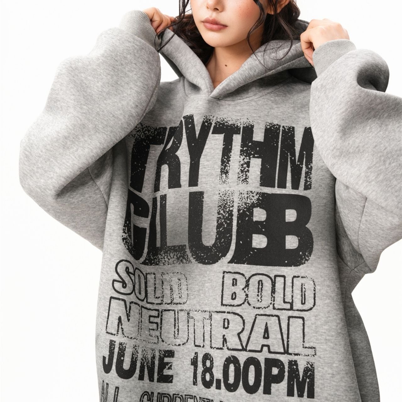 大胆なロゴプリントが目を引くインパクトパーカー。