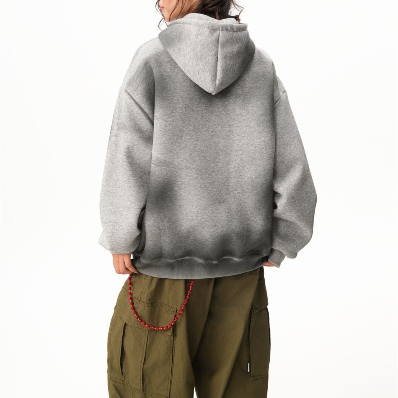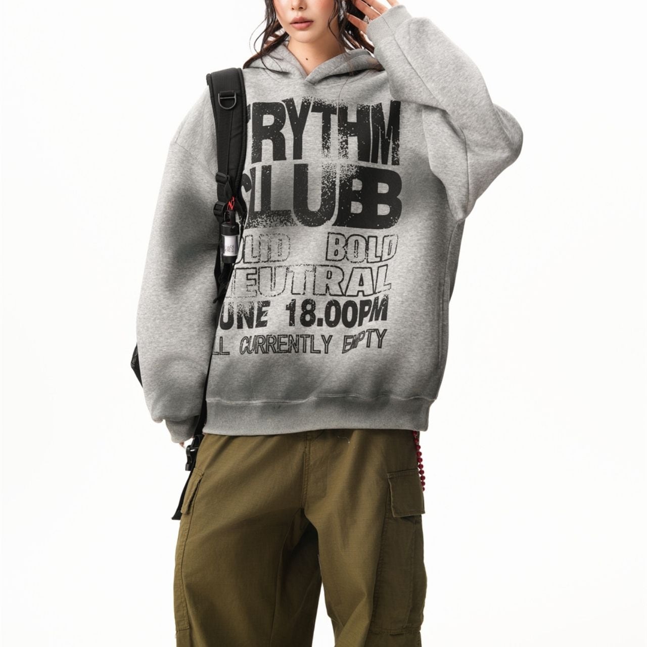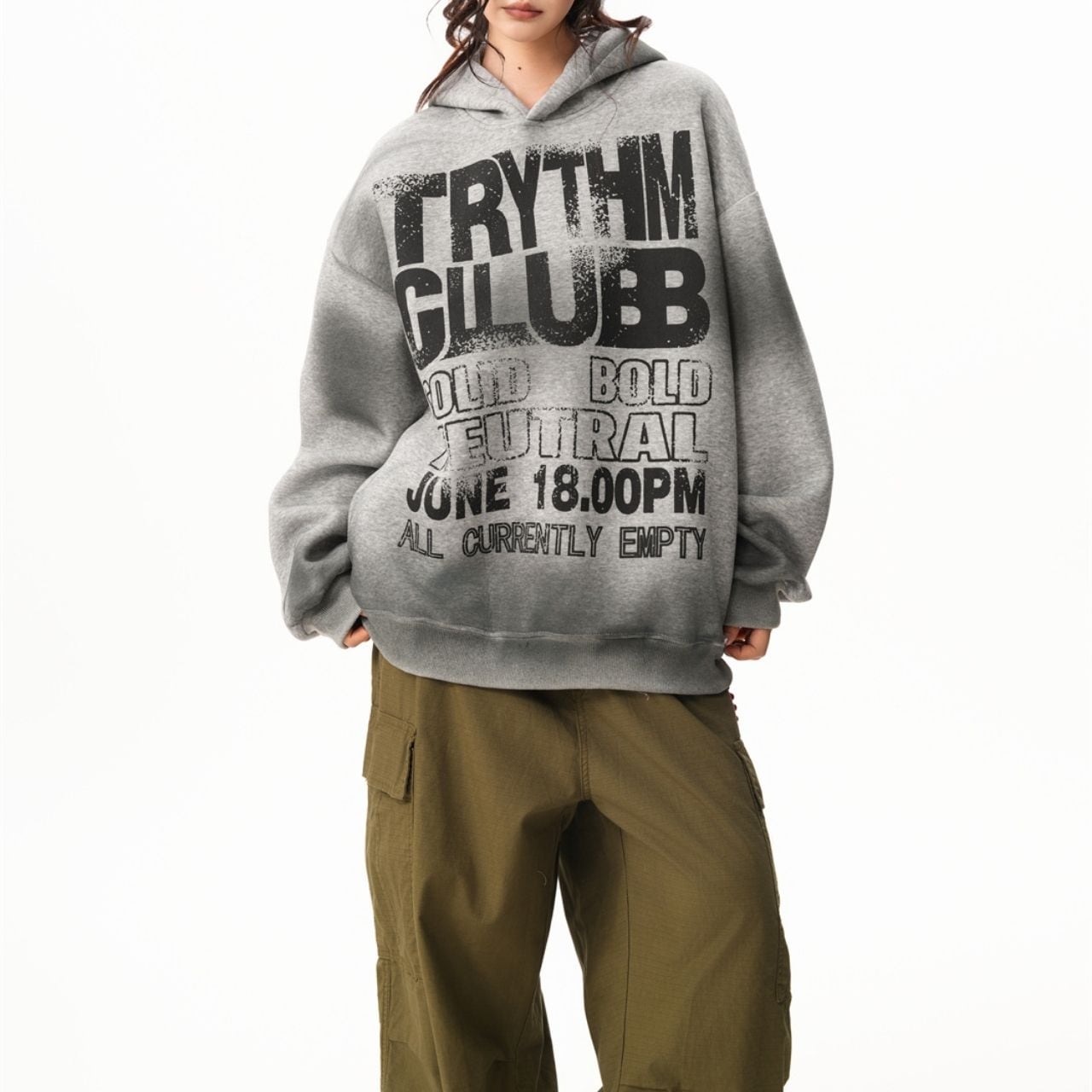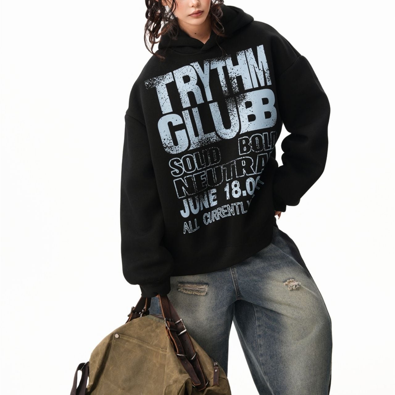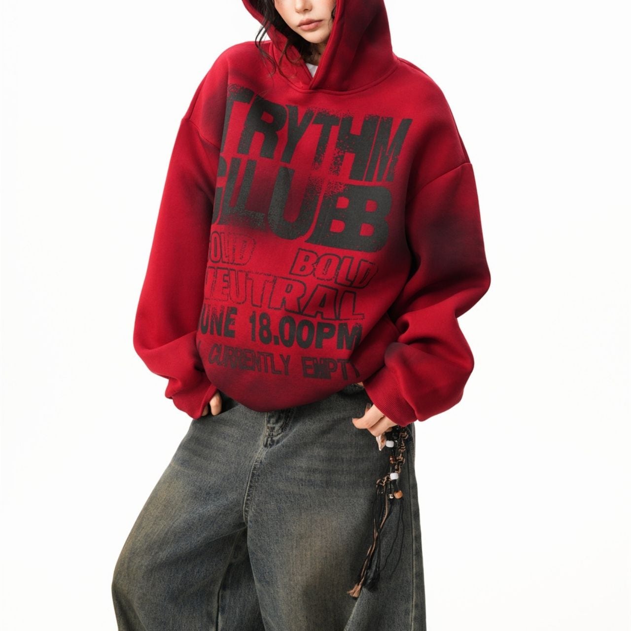 大胆なロゴプリントが目を引くインパクトパーカー。