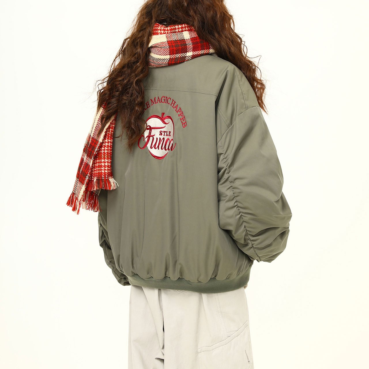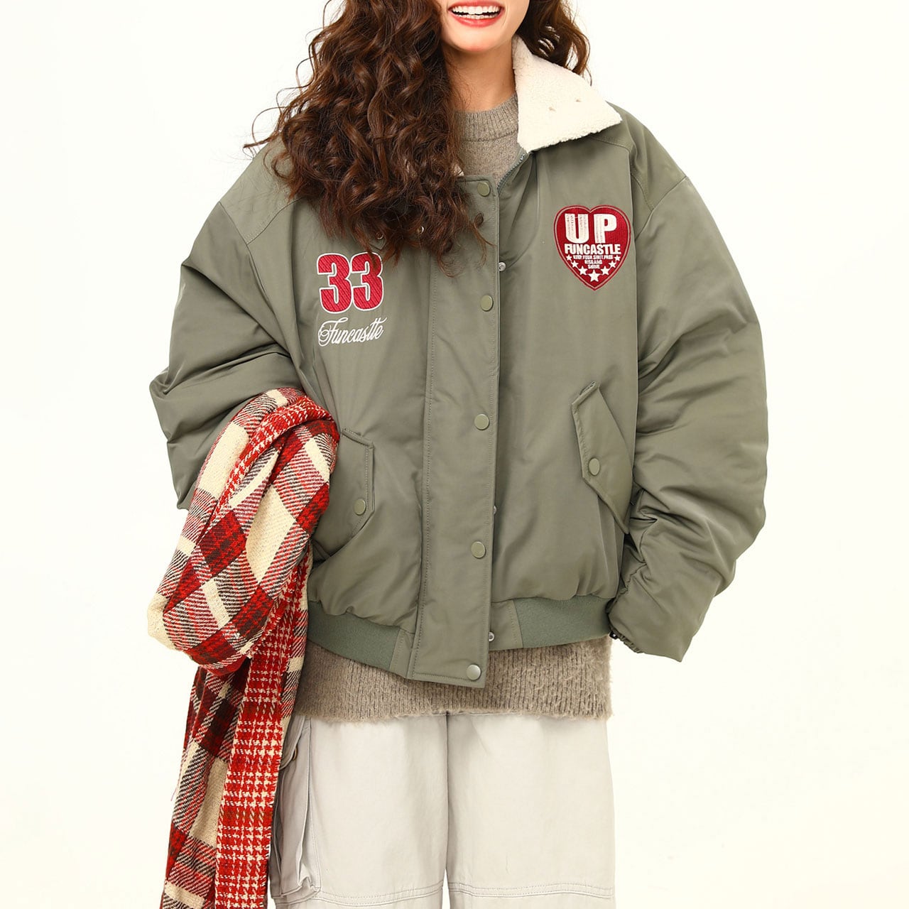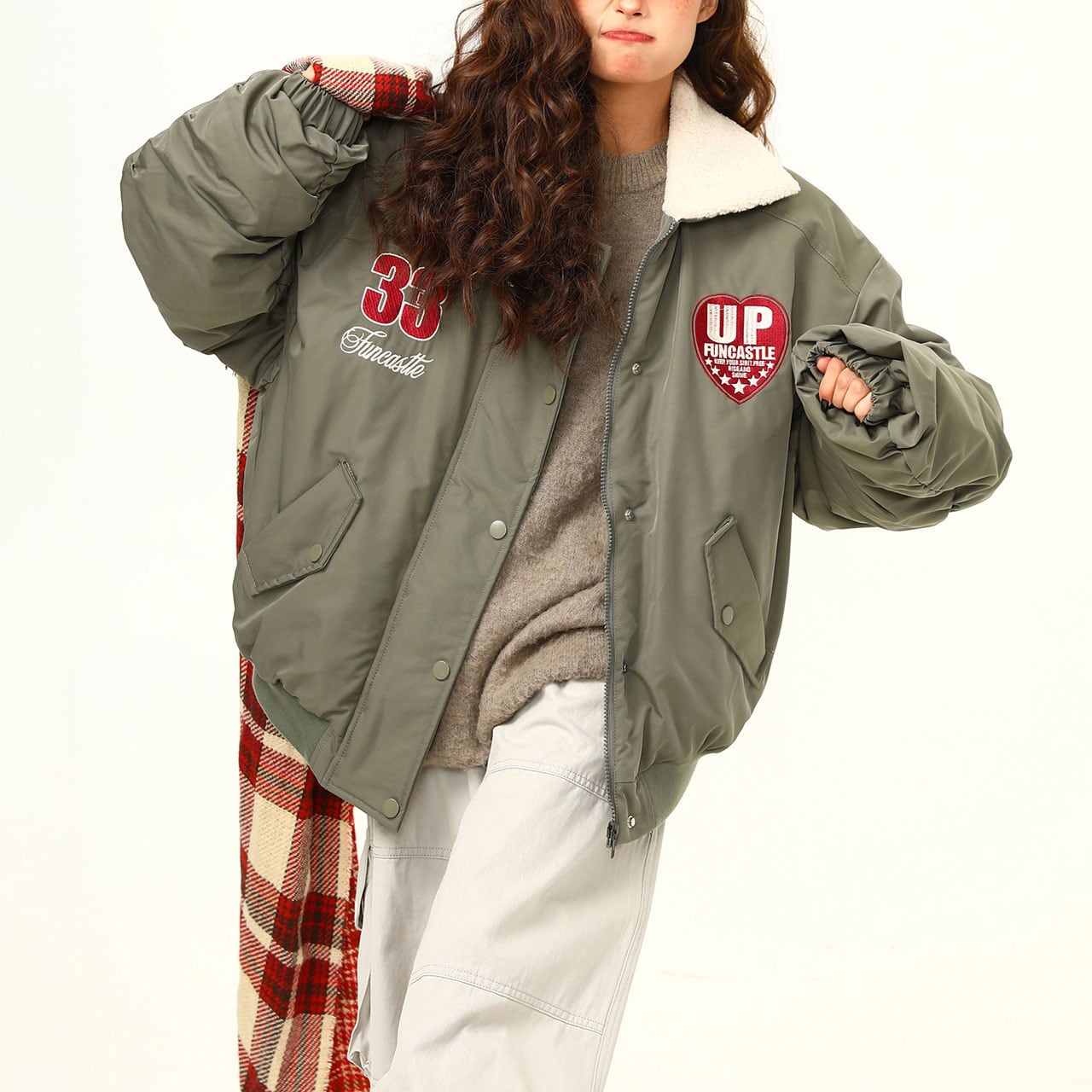 ボリューム感のあるフォルムが可愛いカレッジ風ブルゾン。