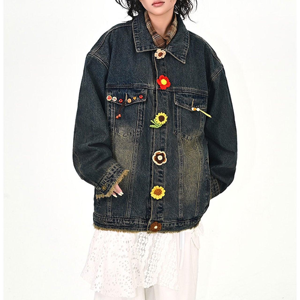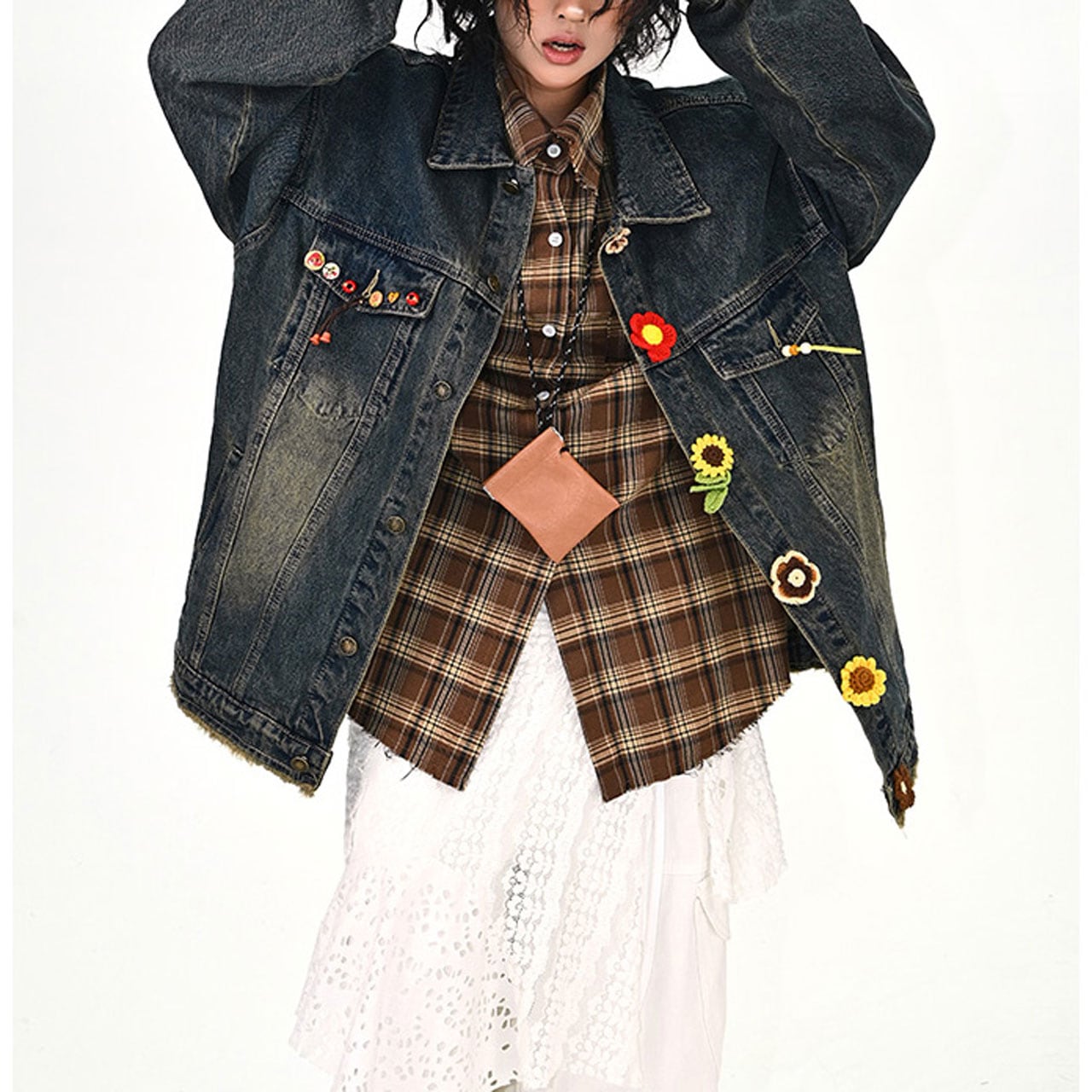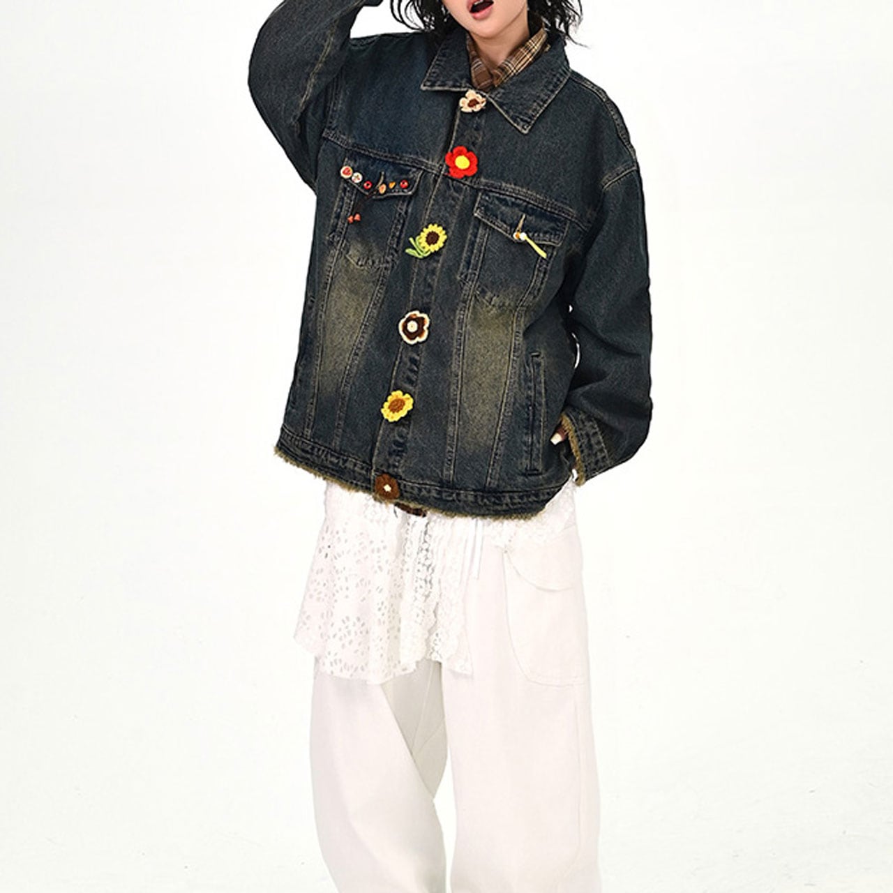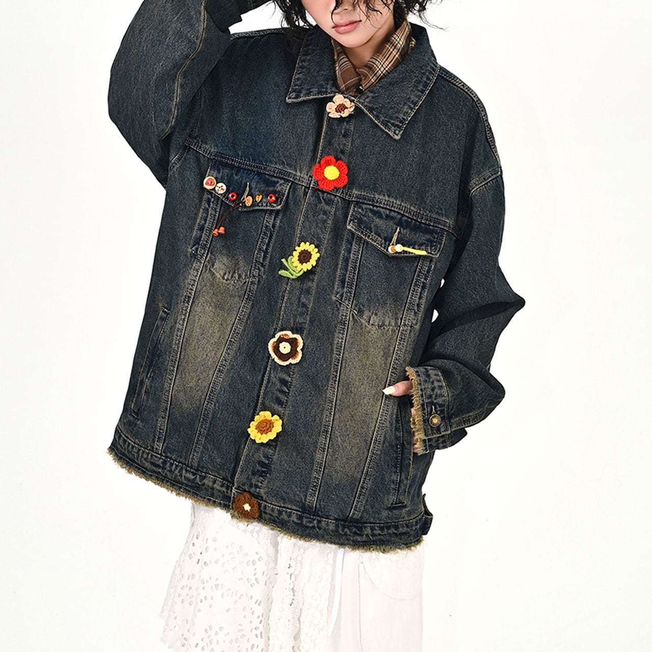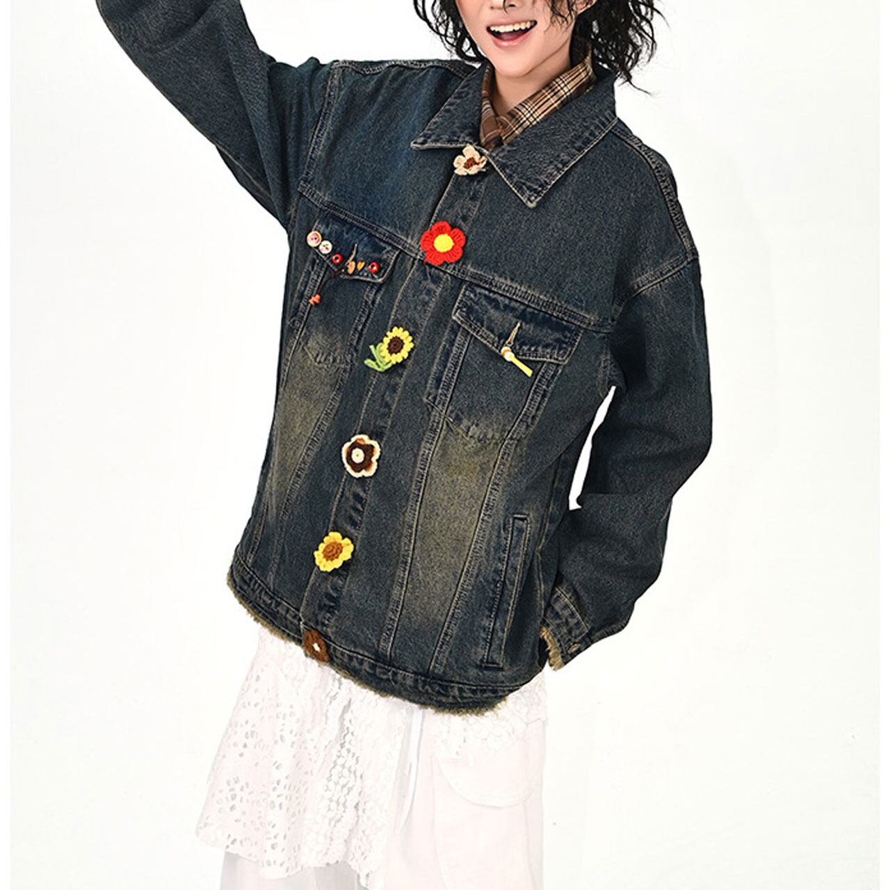 レトロフラワーの刺繍が目を惹くデニムジャケット。