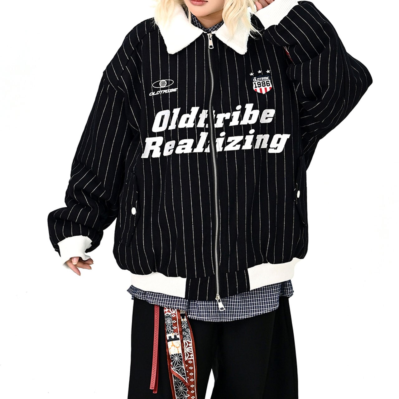 ピンストライプレトロカレッジブルゾン 2col R01131