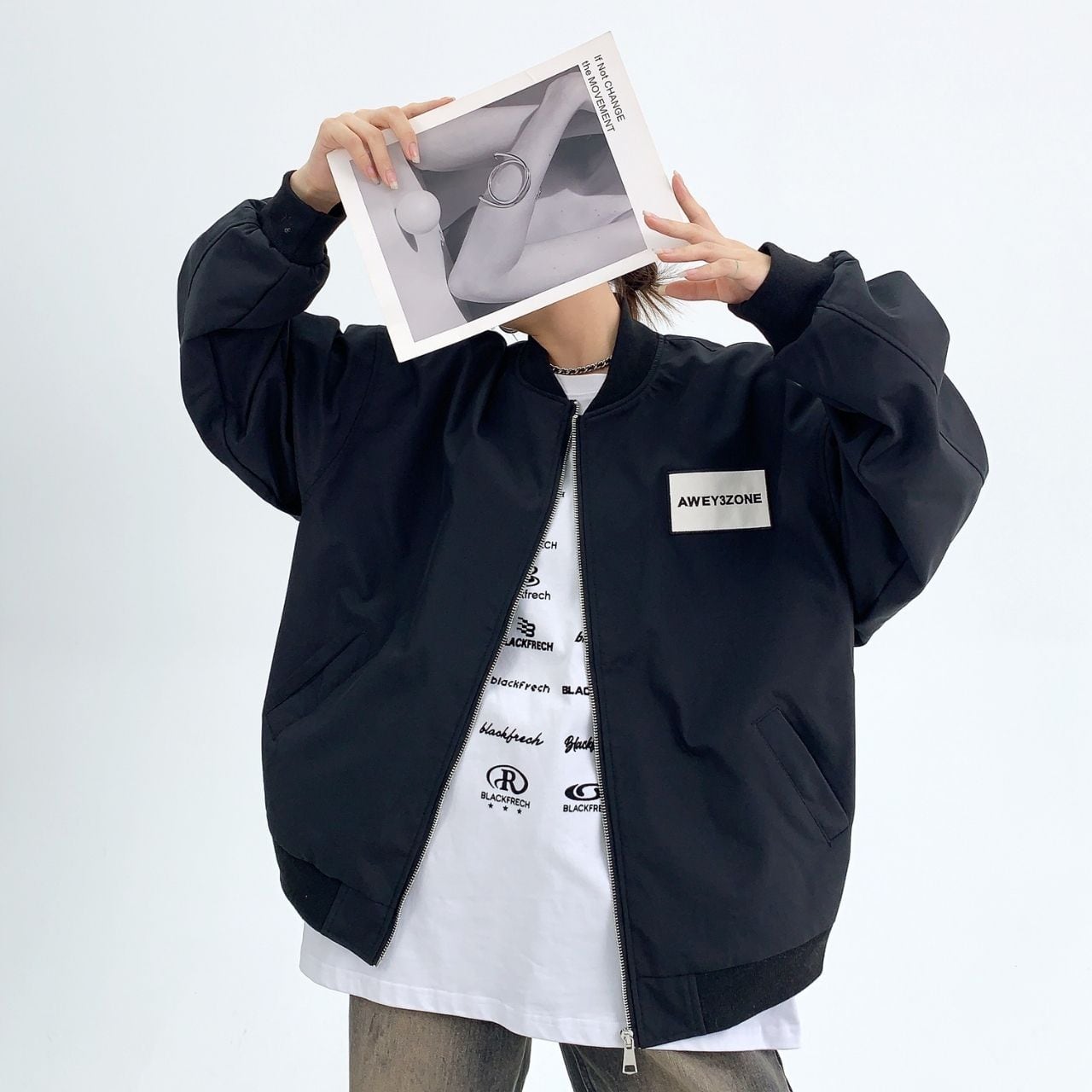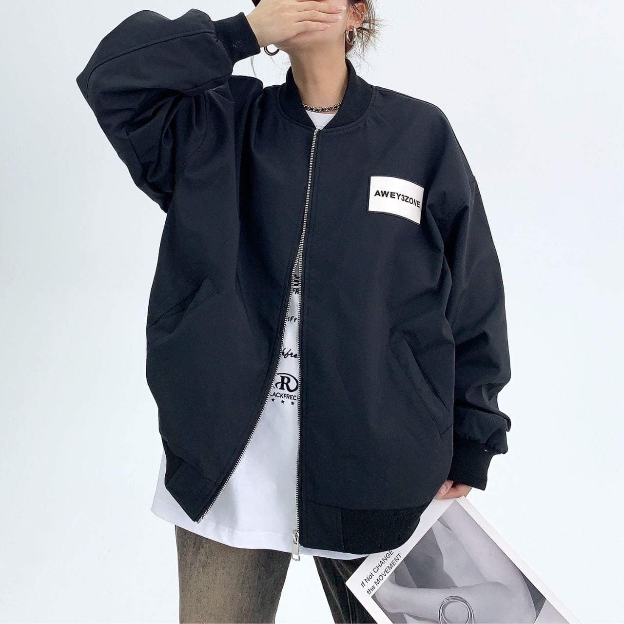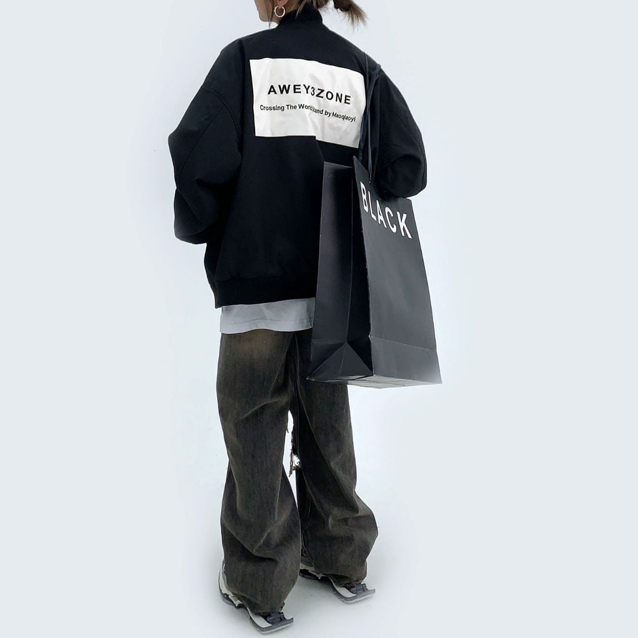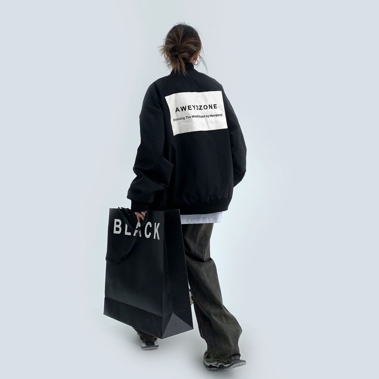 シンプルながら印象的なロゴが映えるモノクロブルゾン。