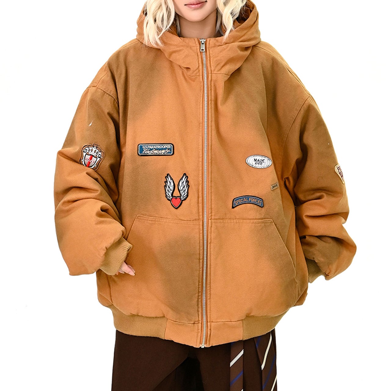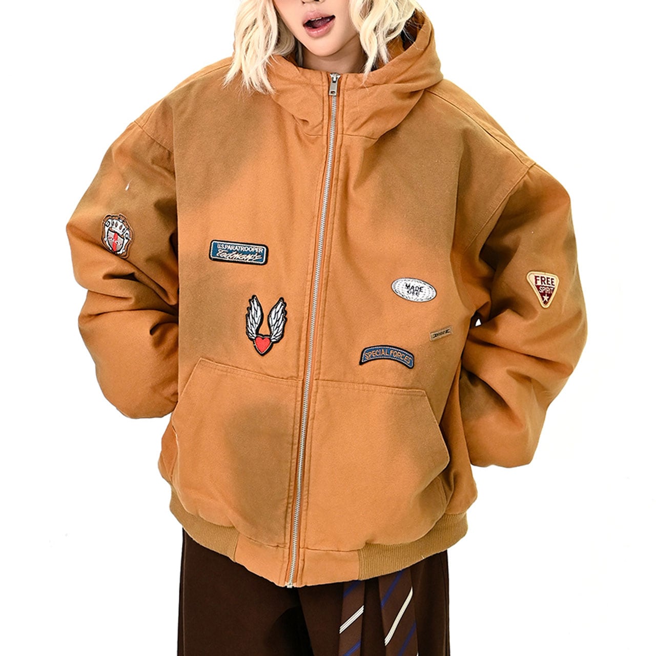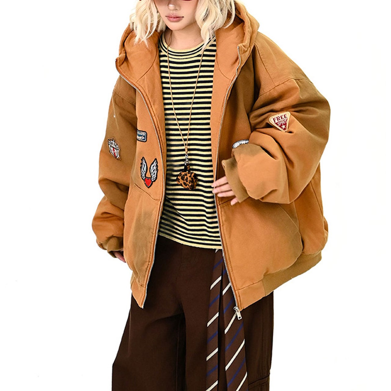 ミリタリーライクなワッペンがアクセントのボリュームアウター。