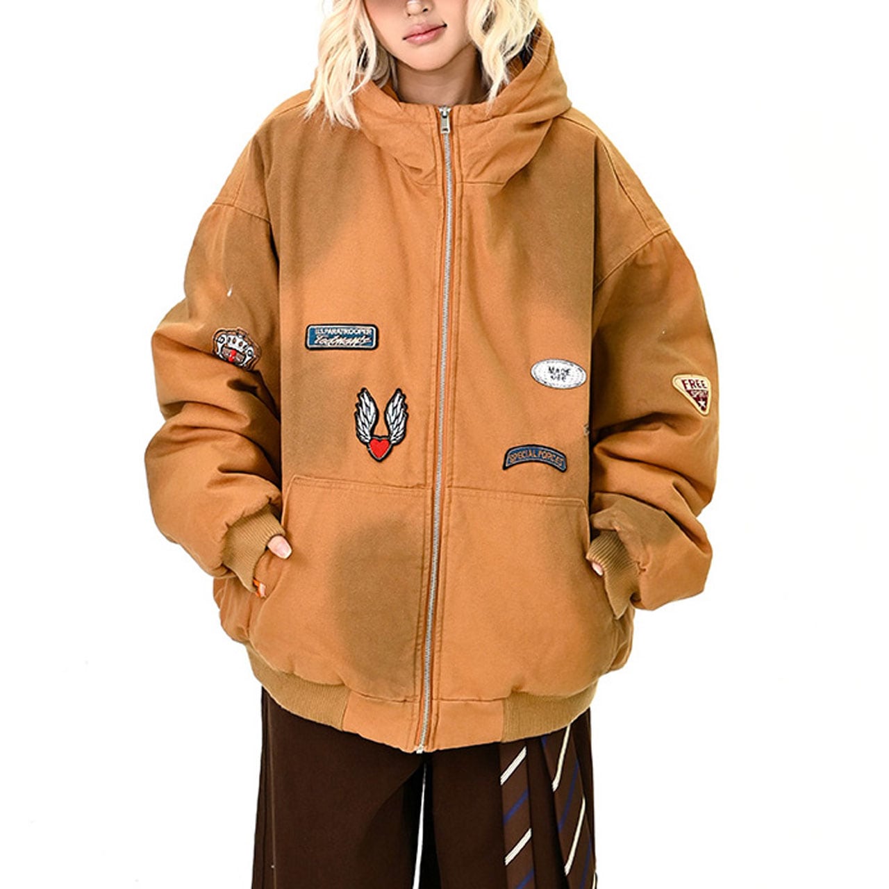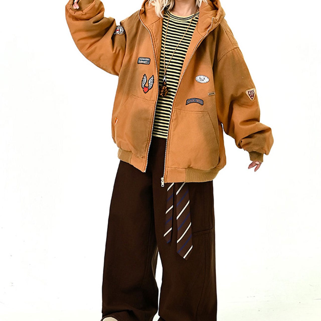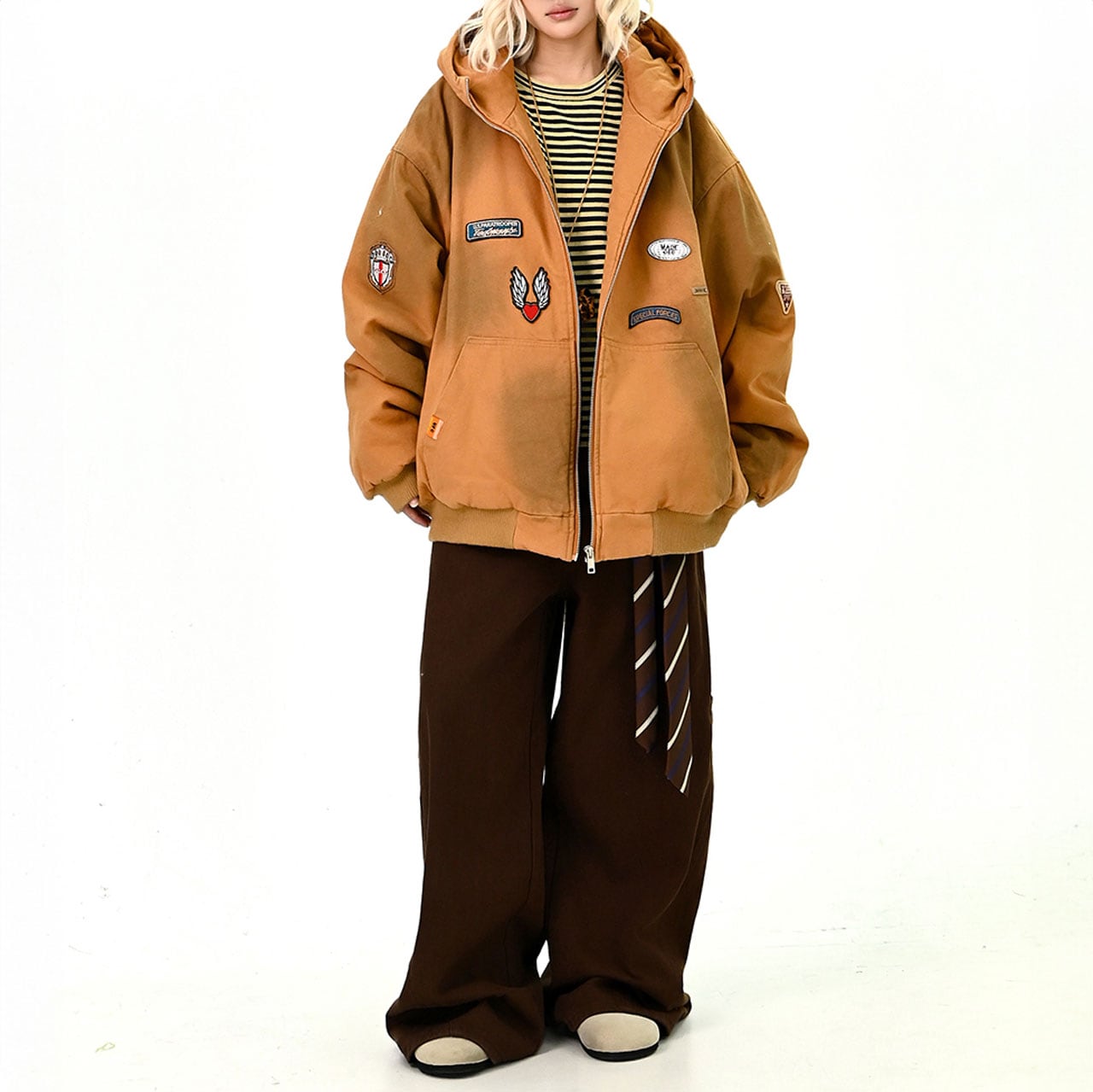 ミリタリーライクなワッペンがアクセントのボリュームアウター。