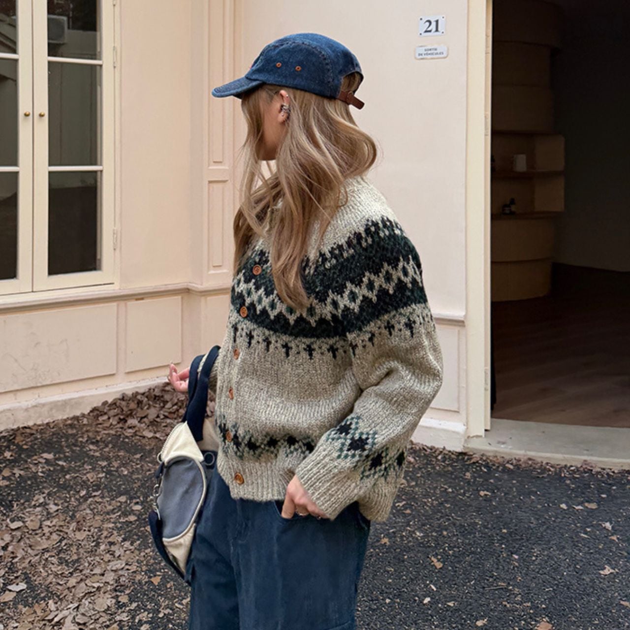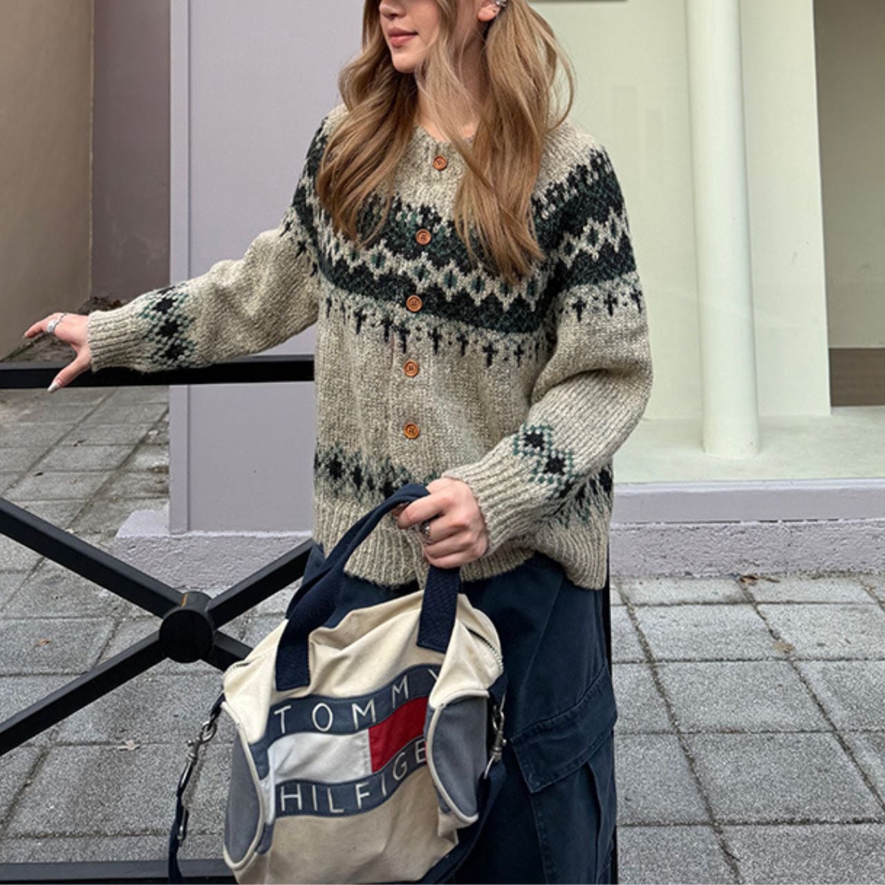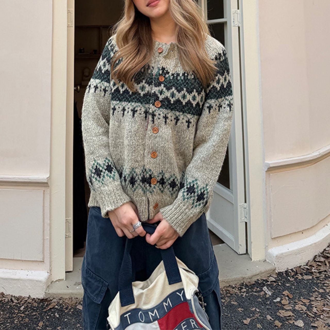 冬ムードを高めるフェアアイル柄ニットカーディガン。