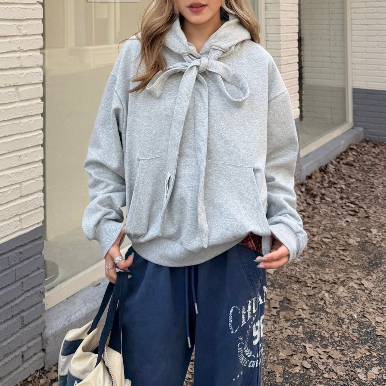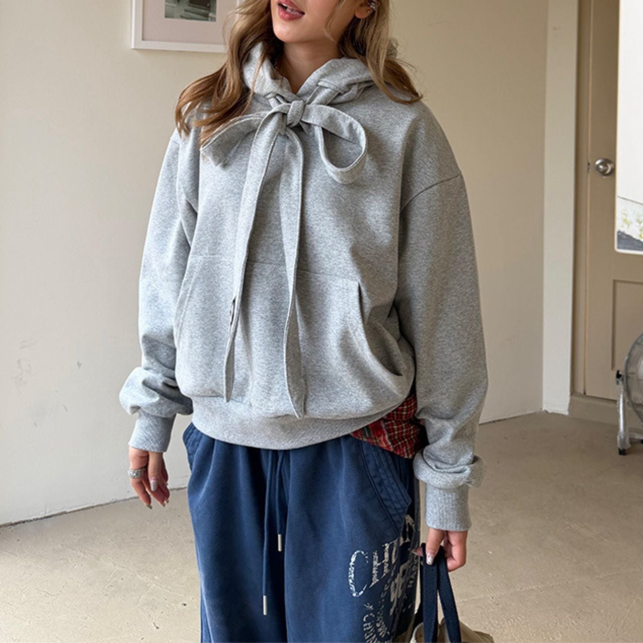 リボンネックカジュアルフーディ R01150