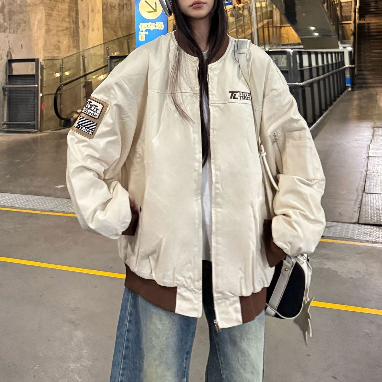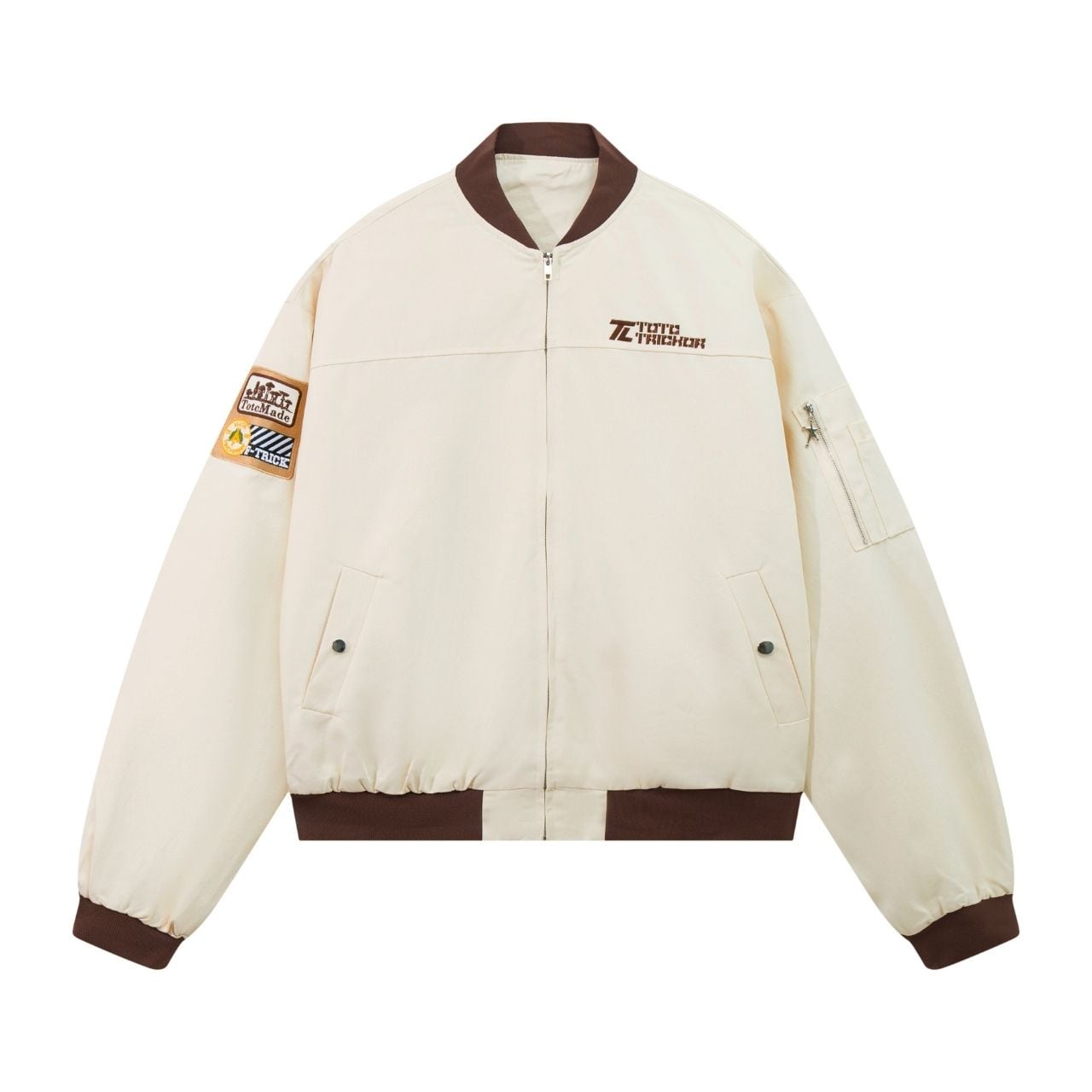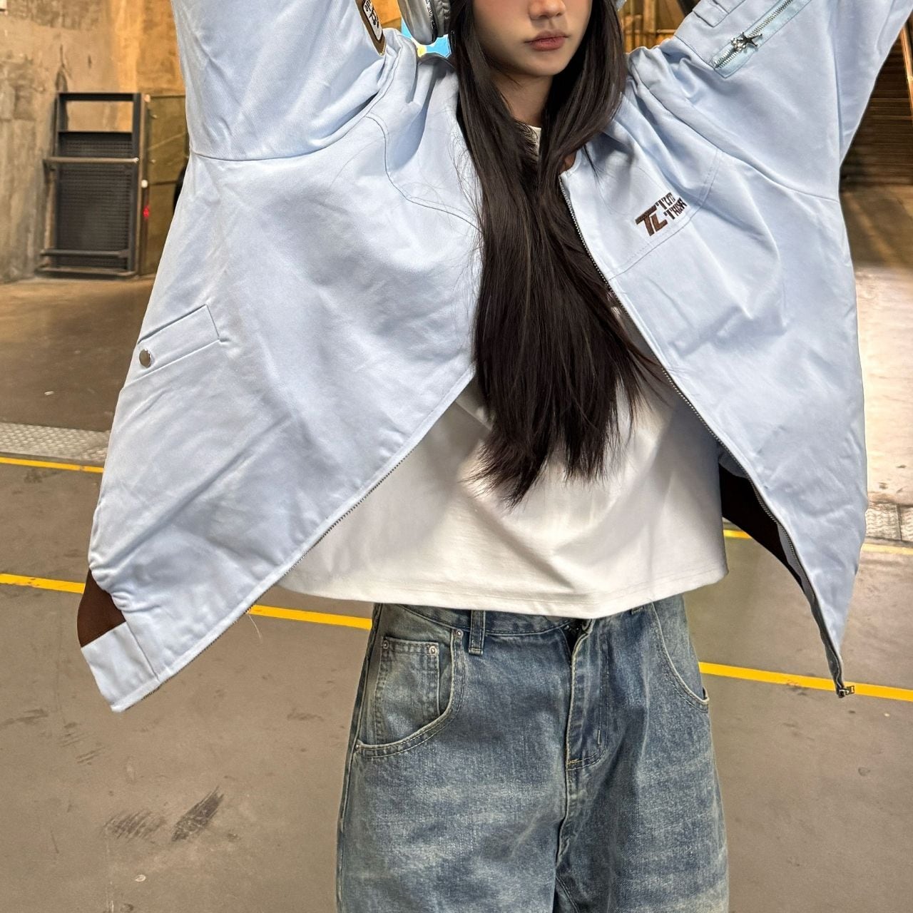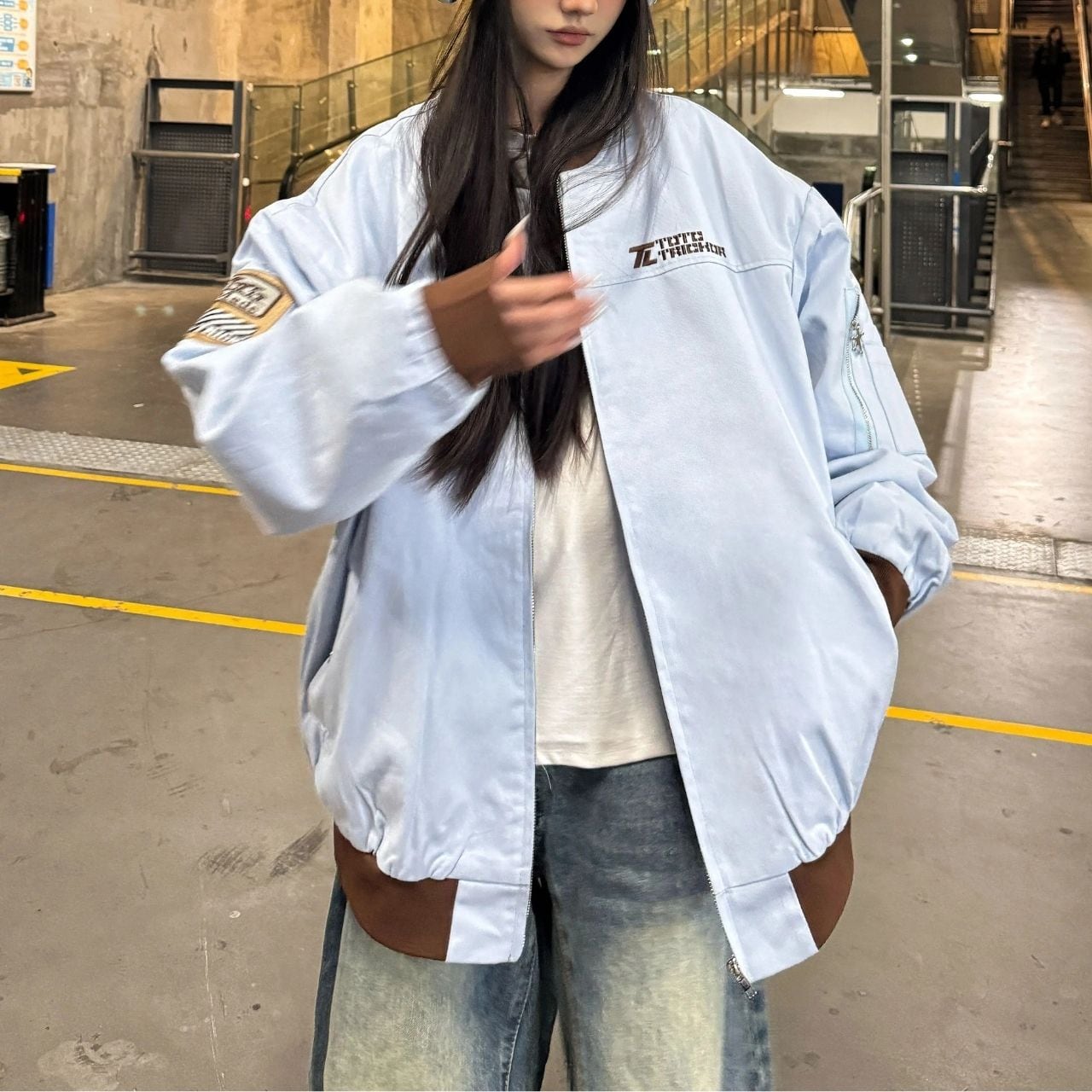 ワッペンデザインツートンライトブルゾン 2col R01152