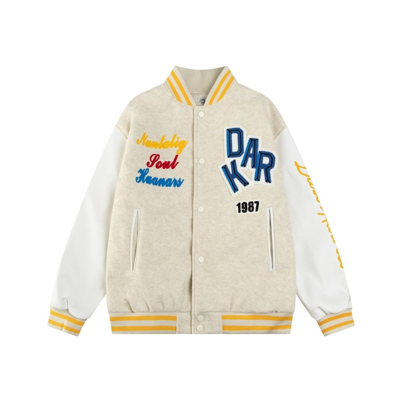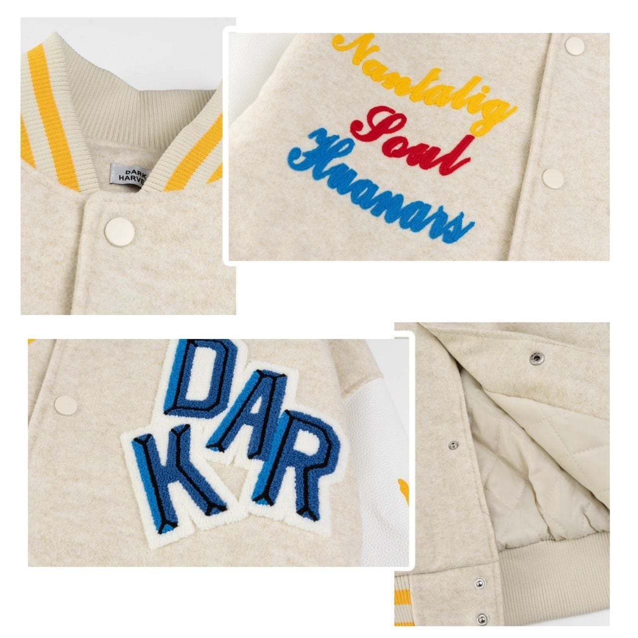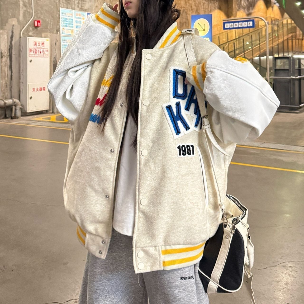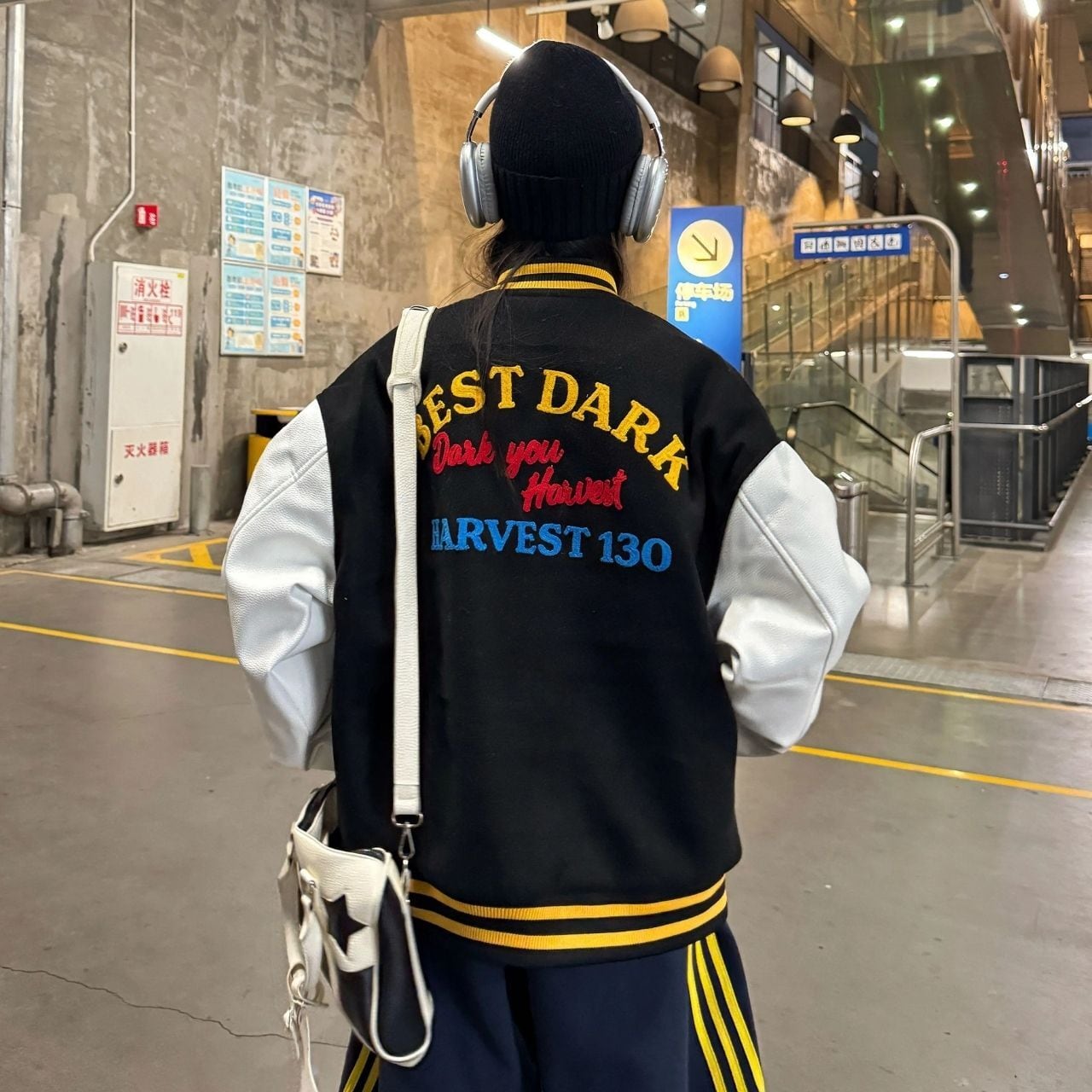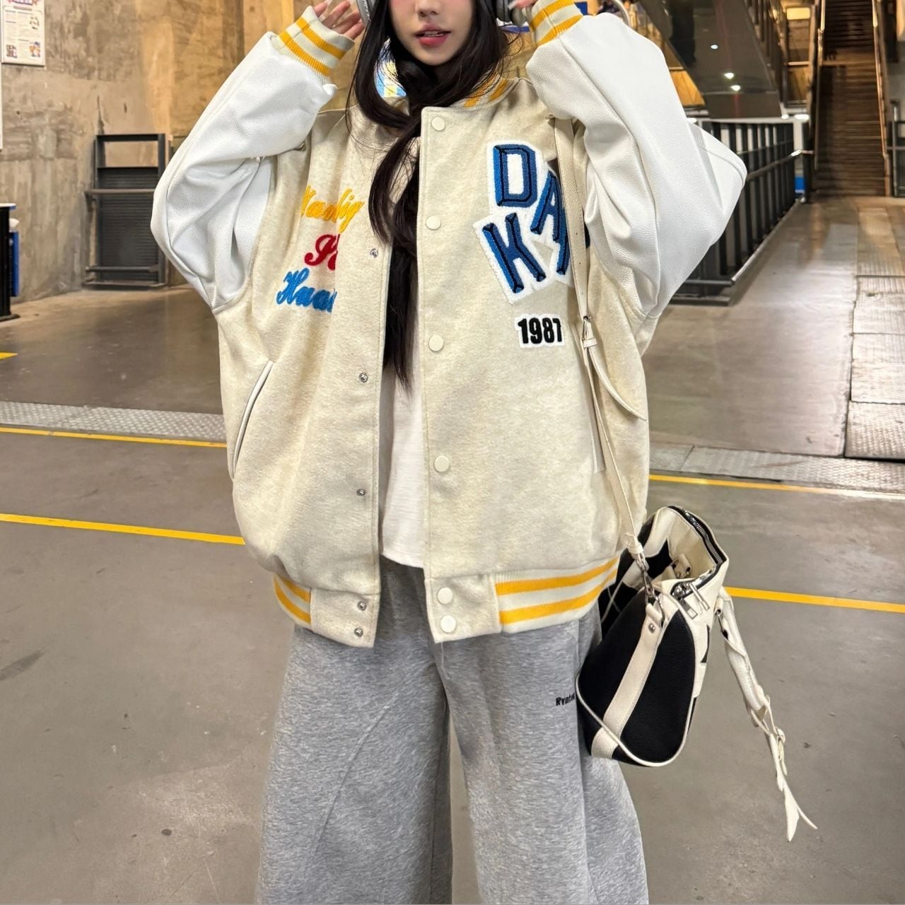 ゆるめのシルエットでユニセックスに着こなせるバーシティジャケット。
