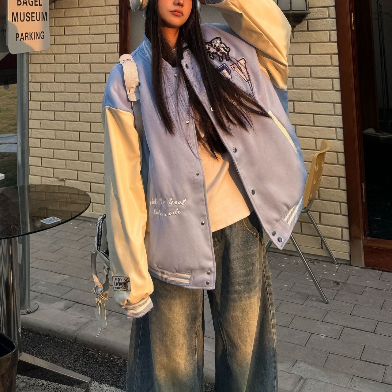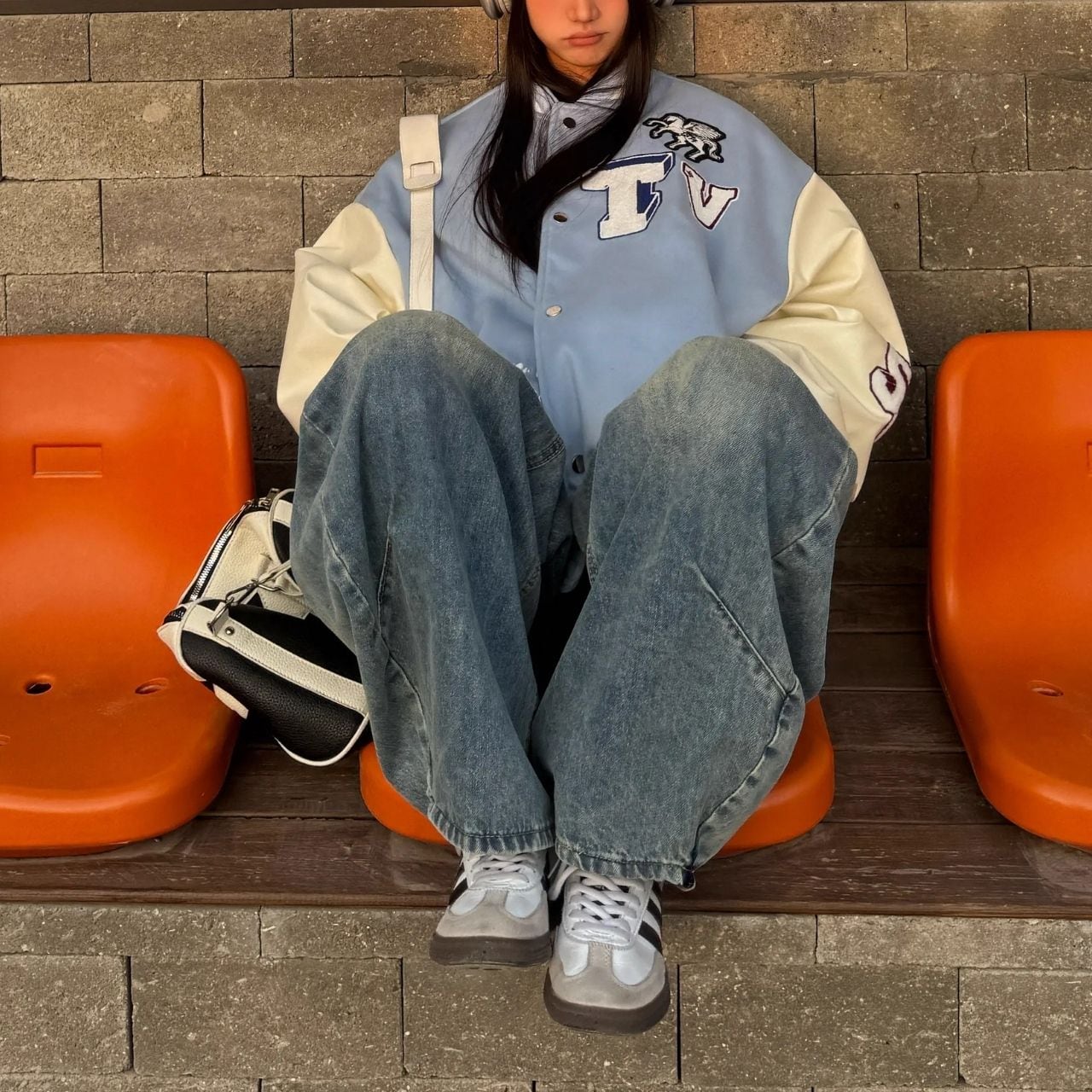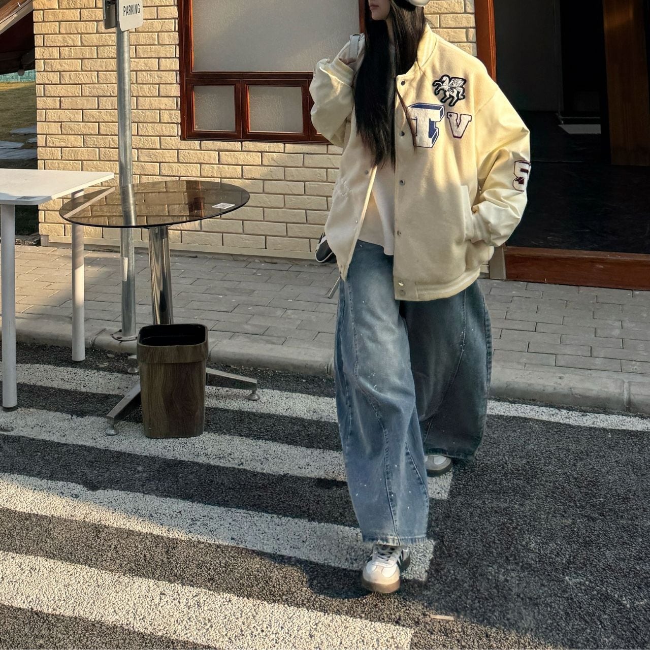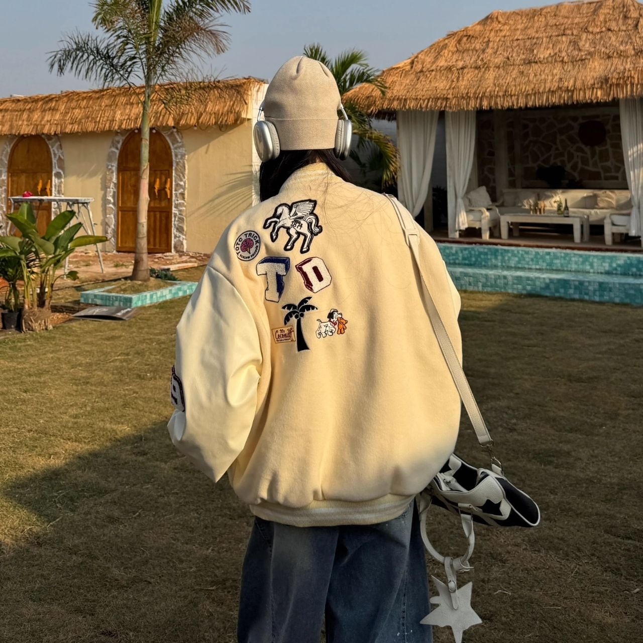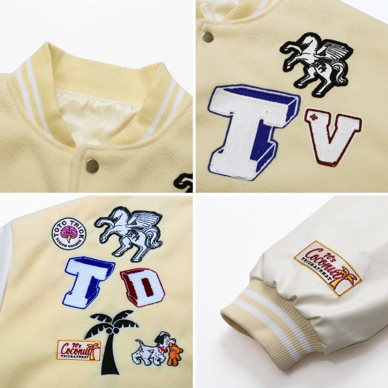 レトロムード漂うカレッジロゴがポイントのスタジャン。