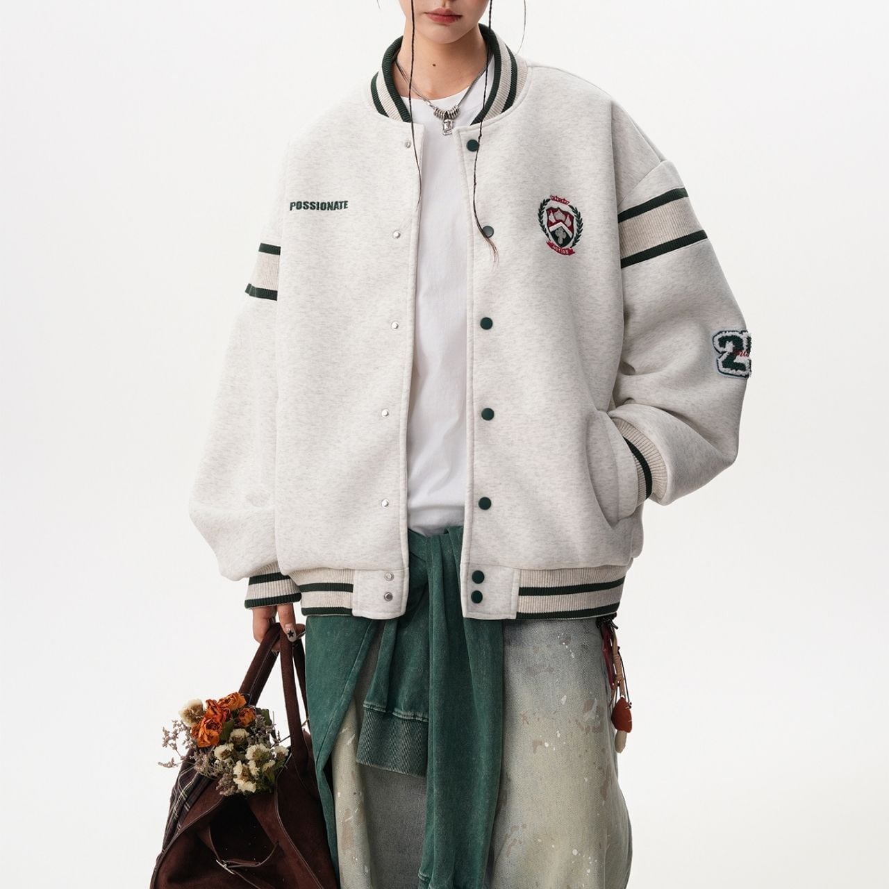 カレッジエンブレムとライン使いがポイント。