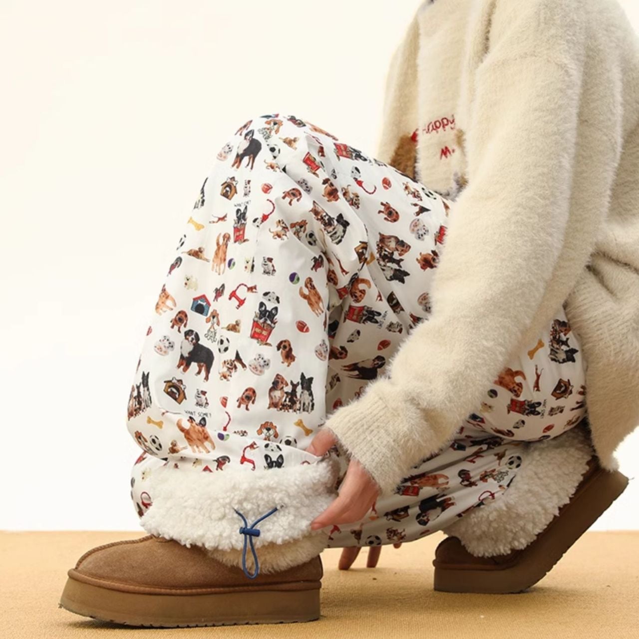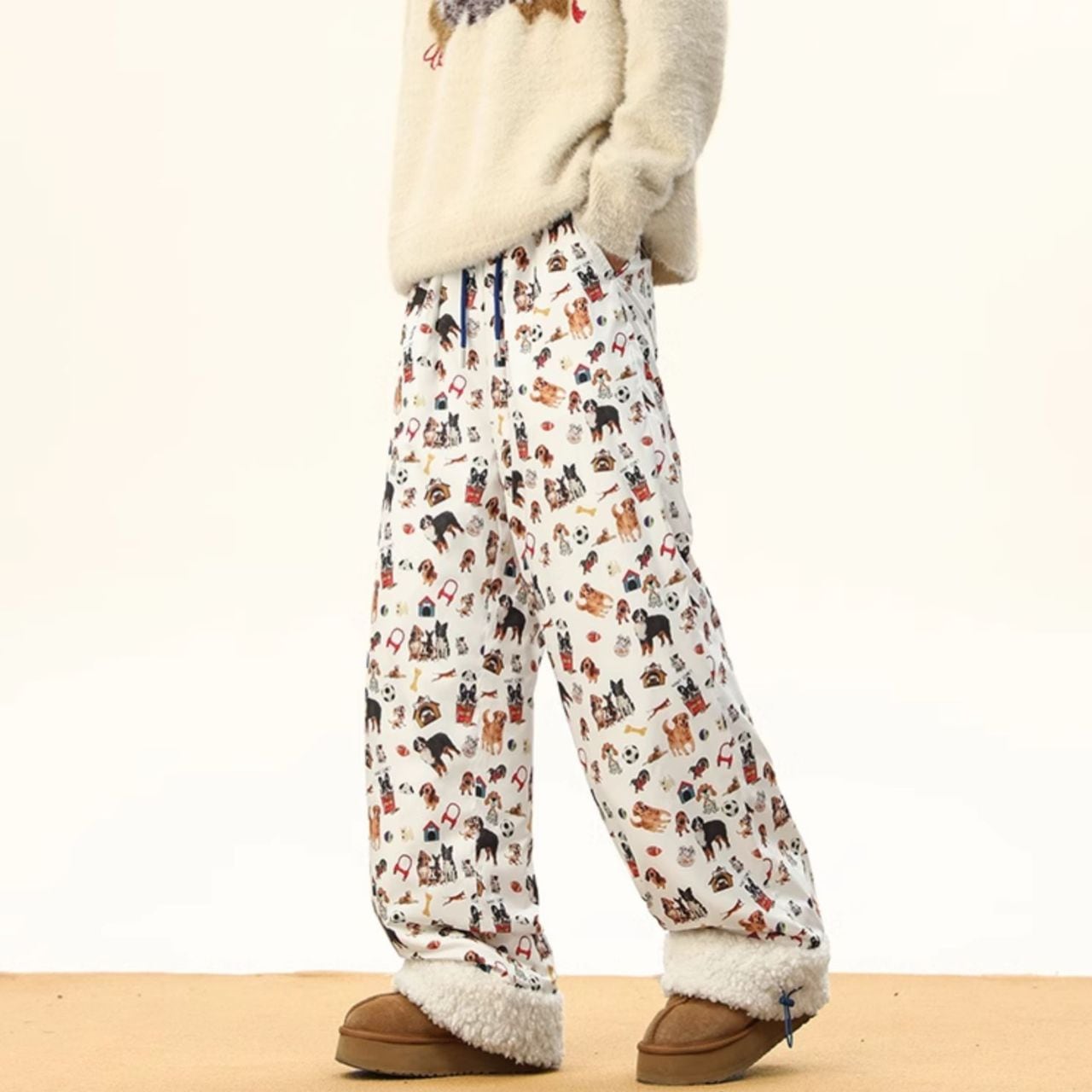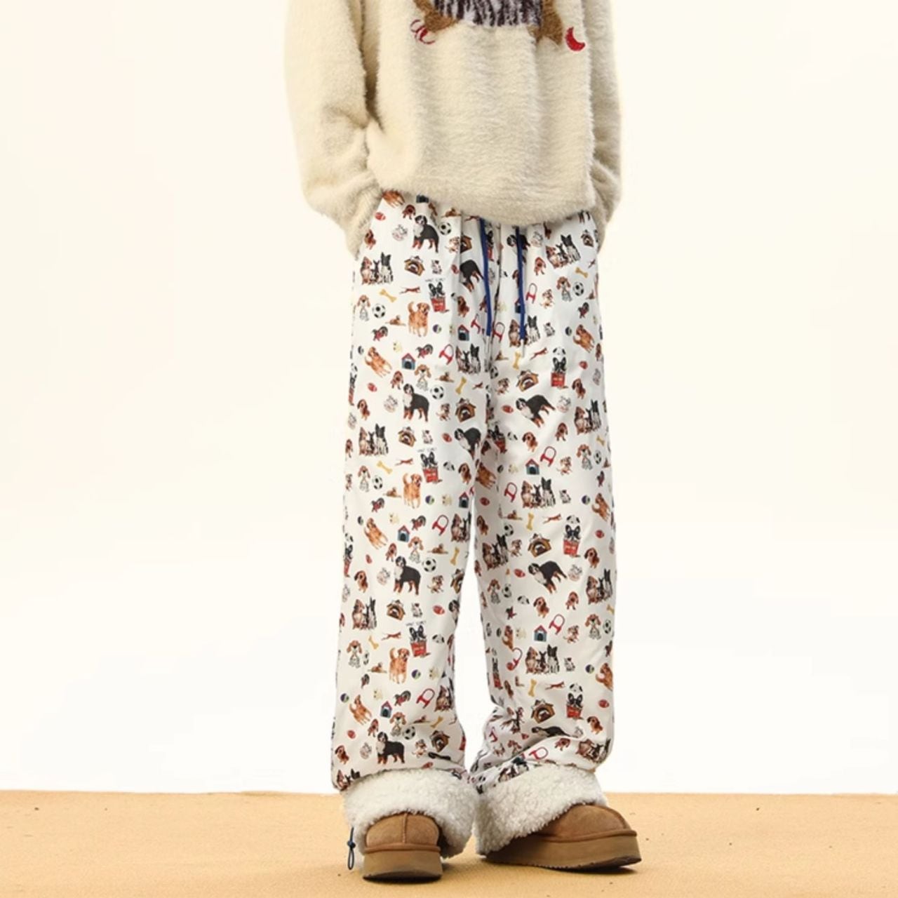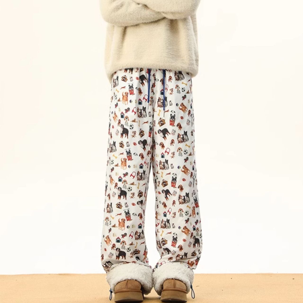 総柄のドッグプリントがインパクト抜群のリラックスパンツ。
