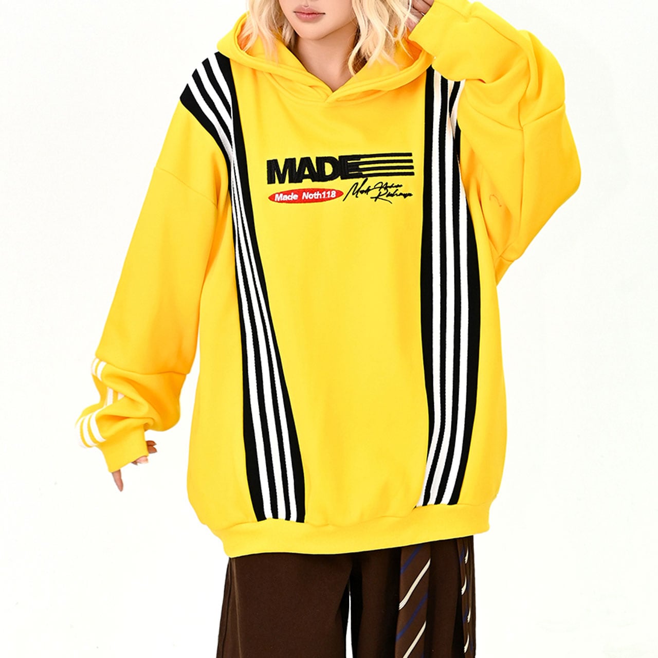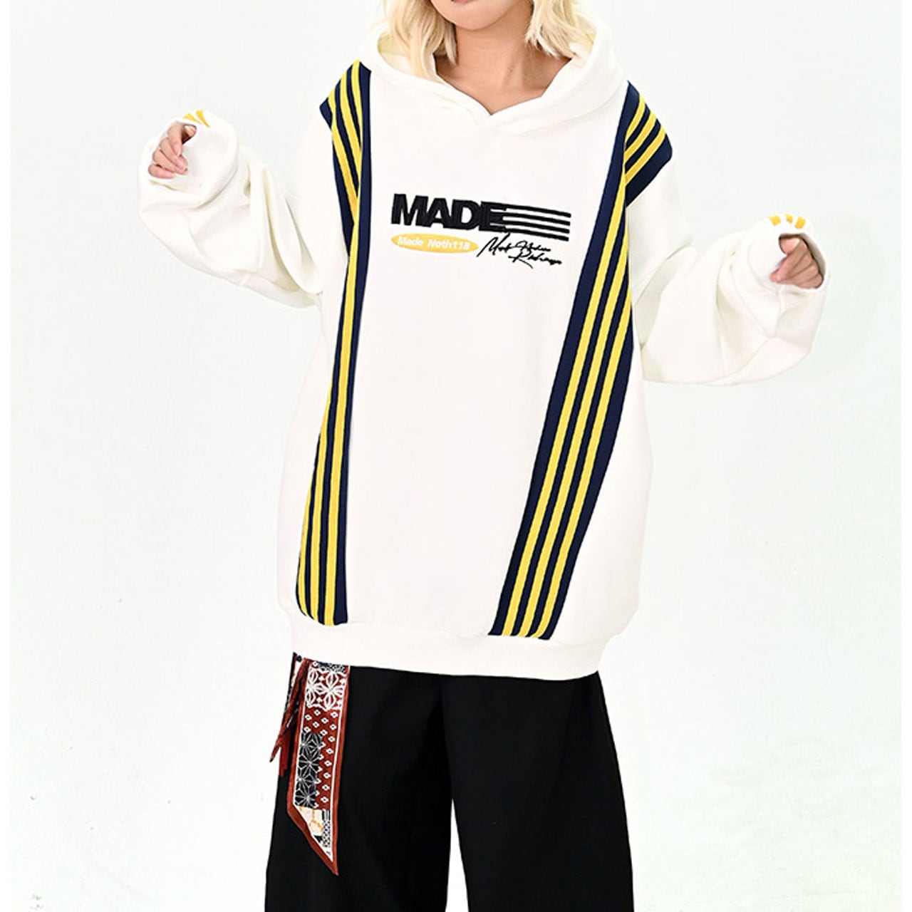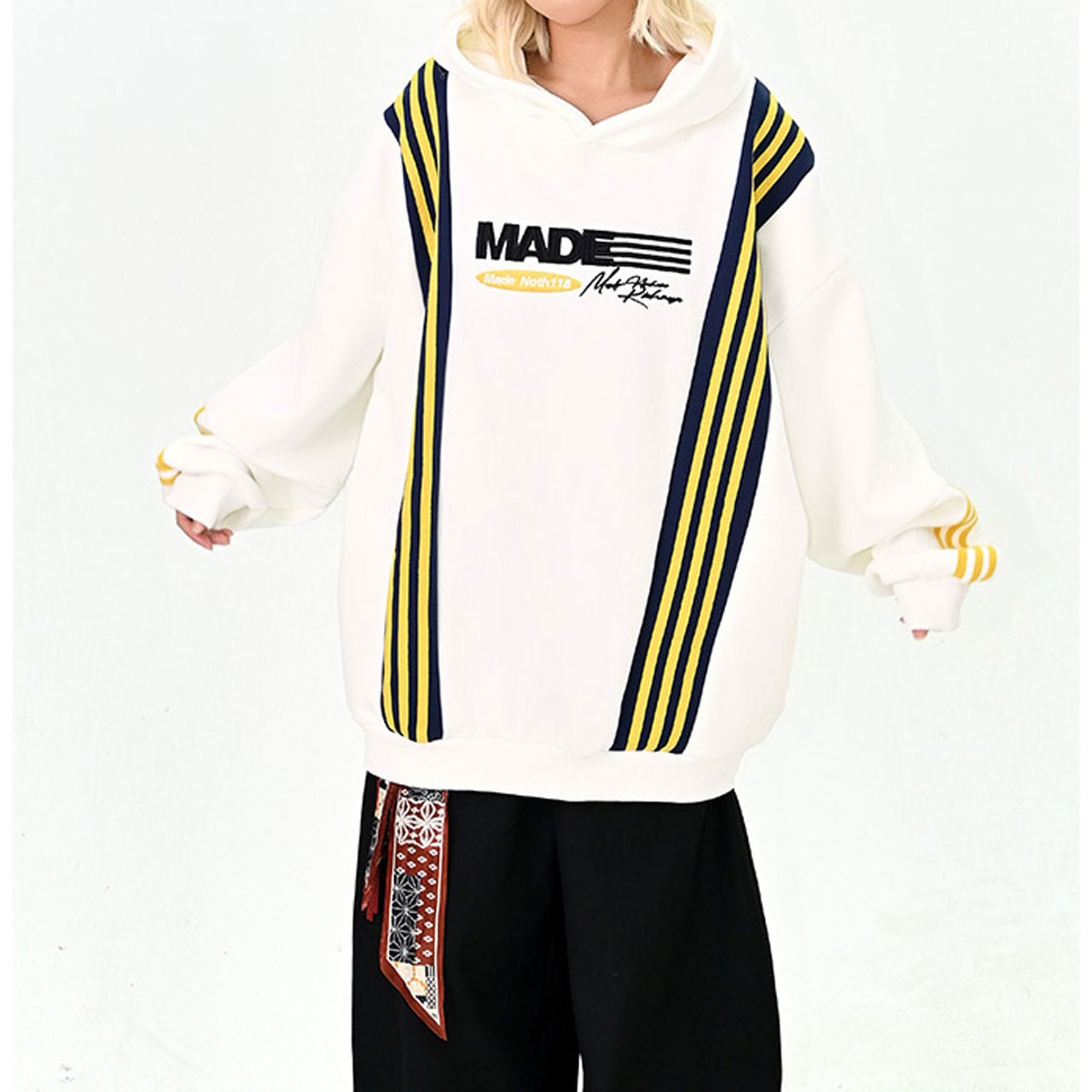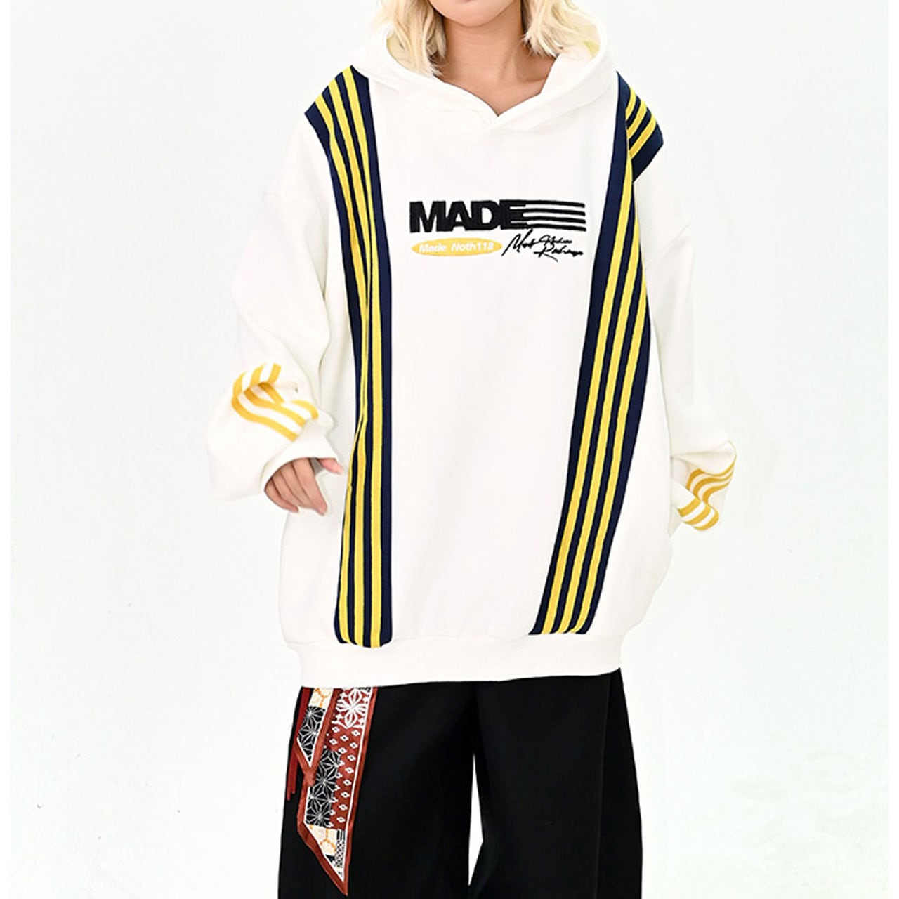 ポップなカラーとライン切替が印象的なビッグパーカー。