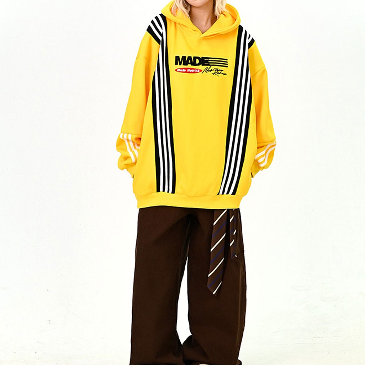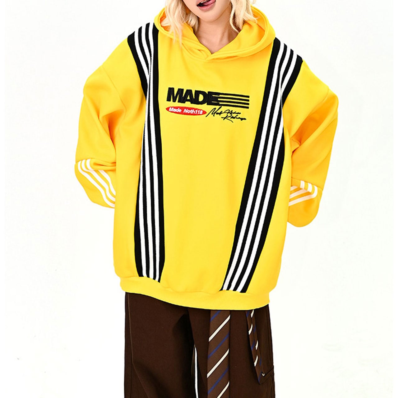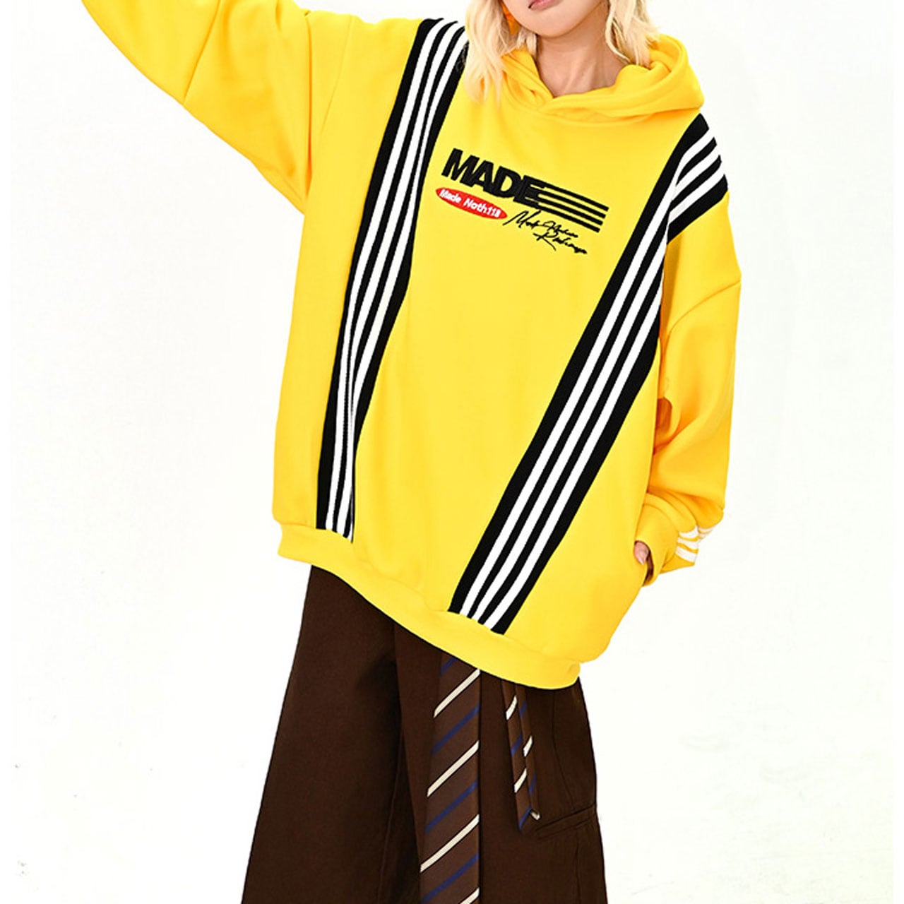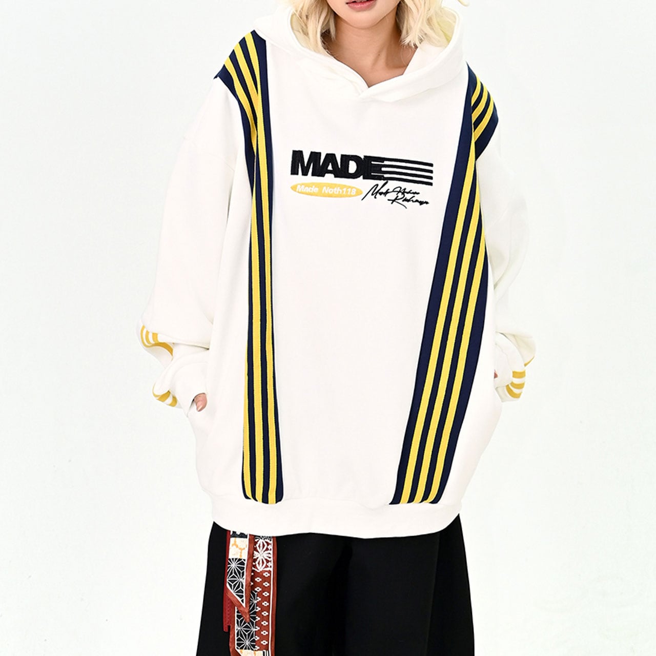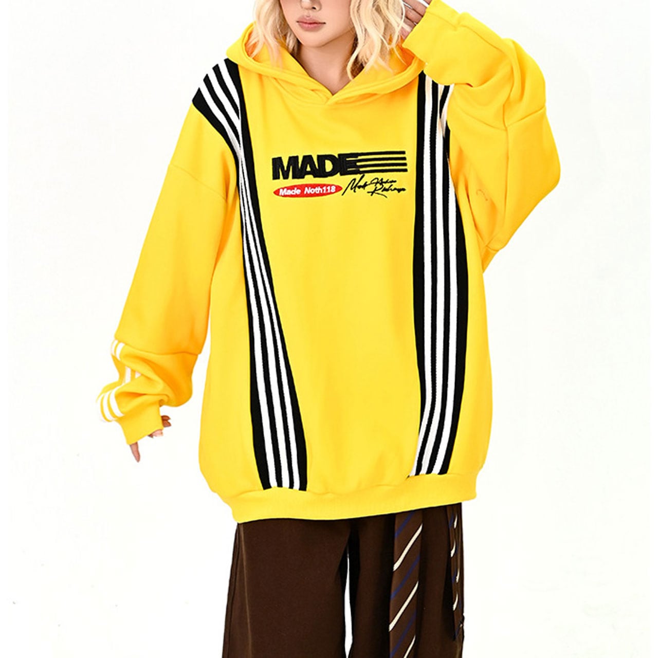 ポップなカラーとライン切替が印象的なビッグパーカー。