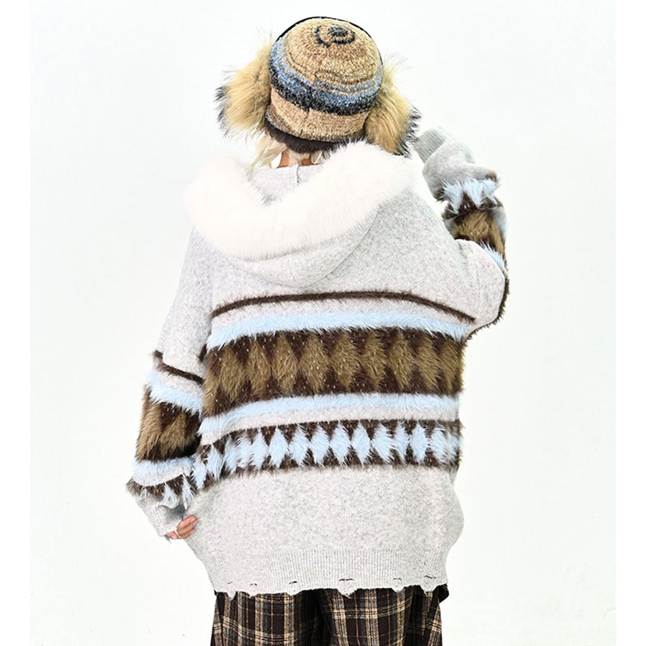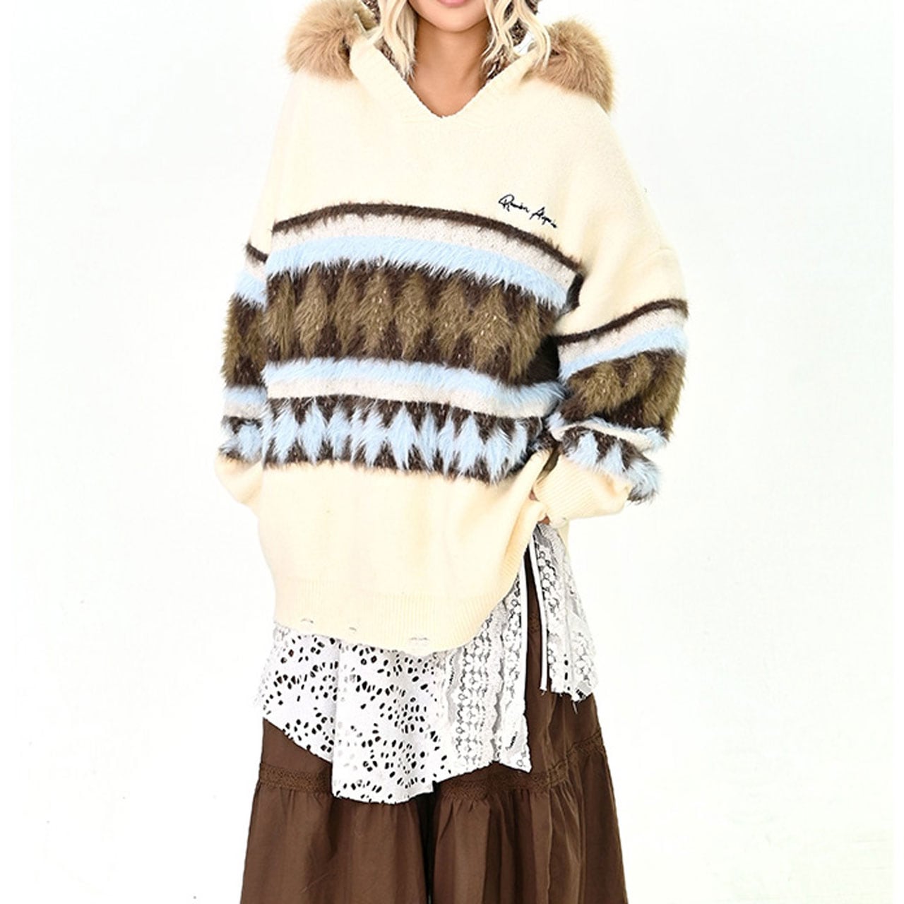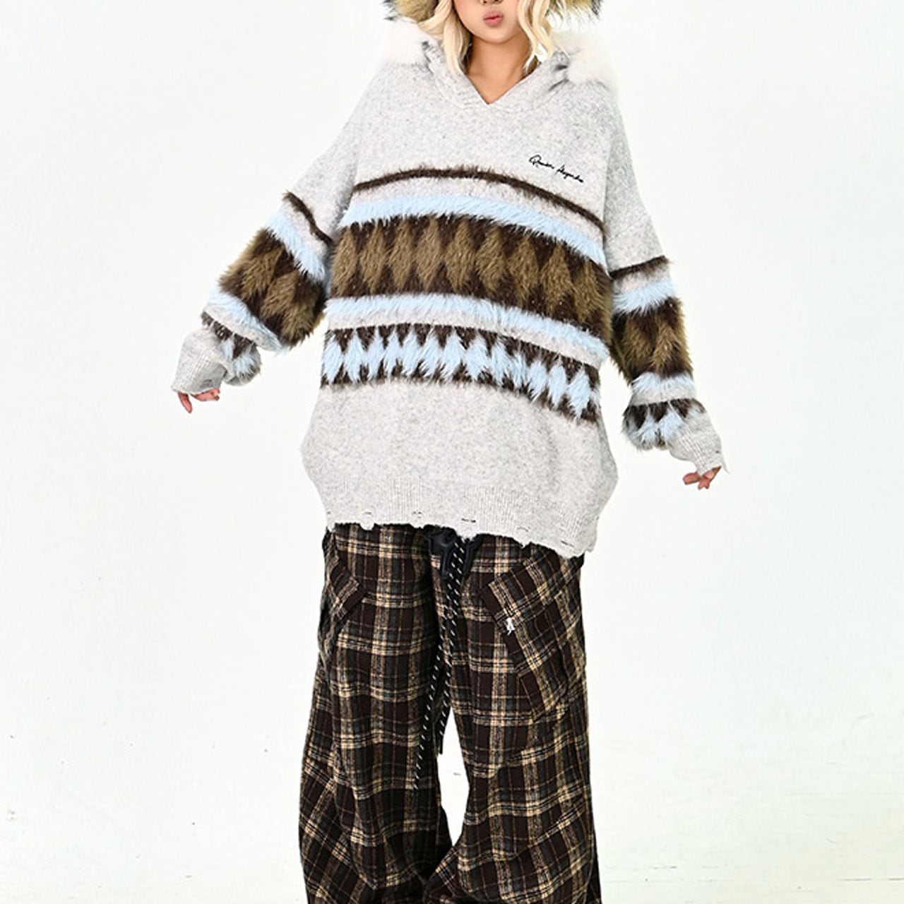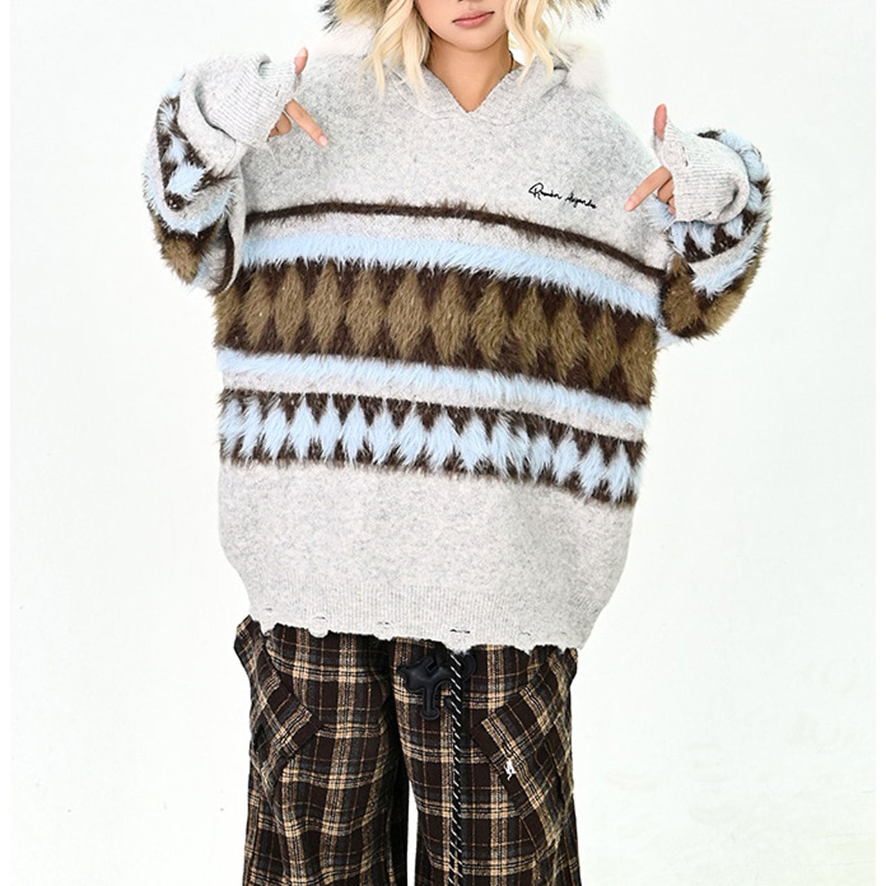 ふわっとした毛足とダイヤ柄が可愛いルーズニット。