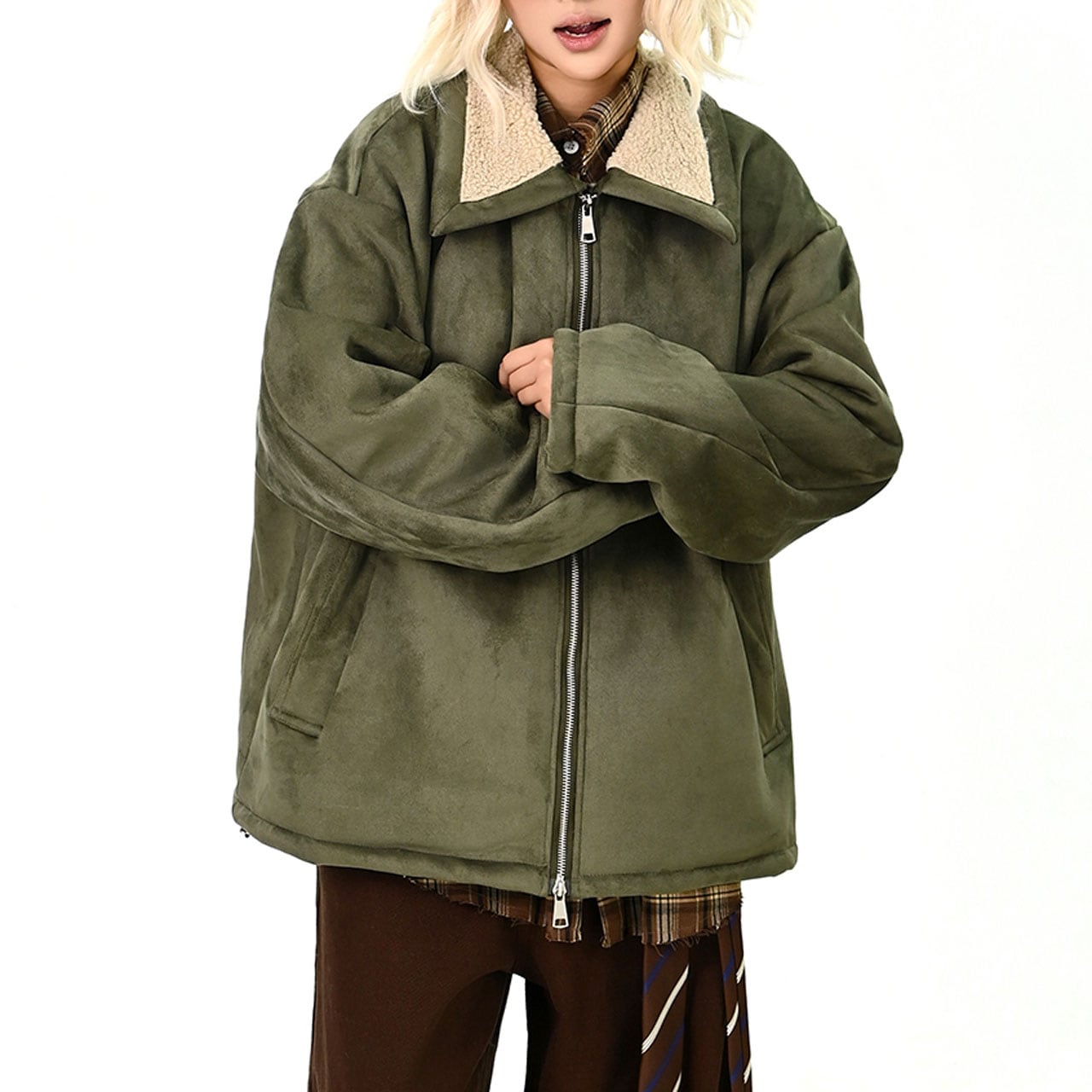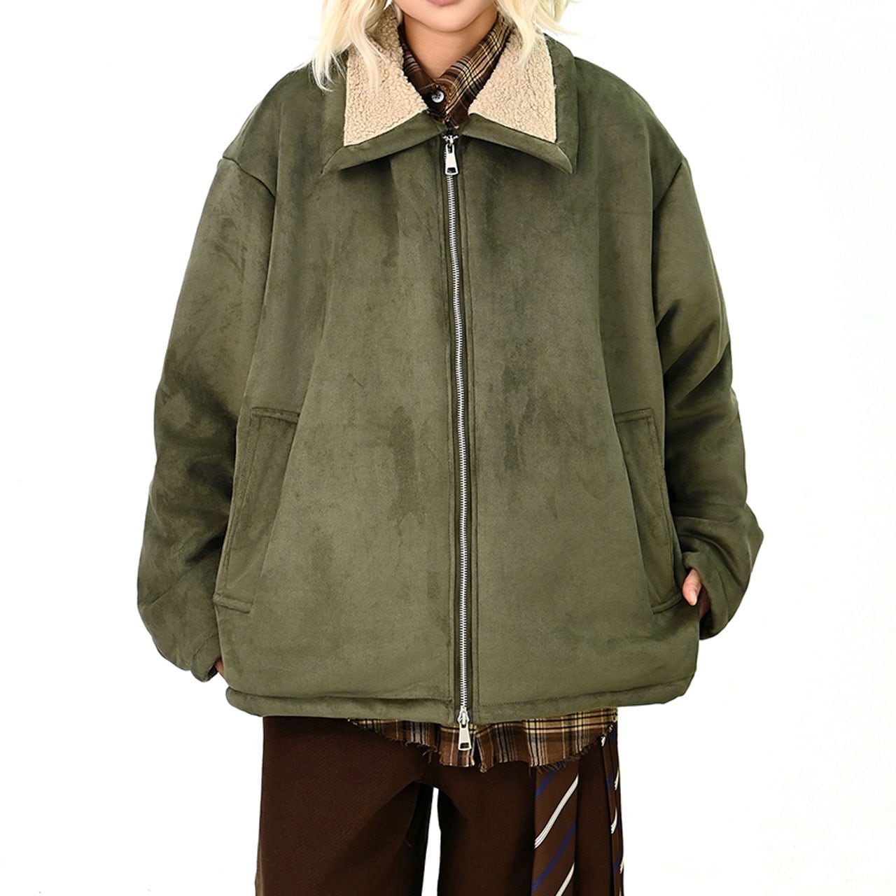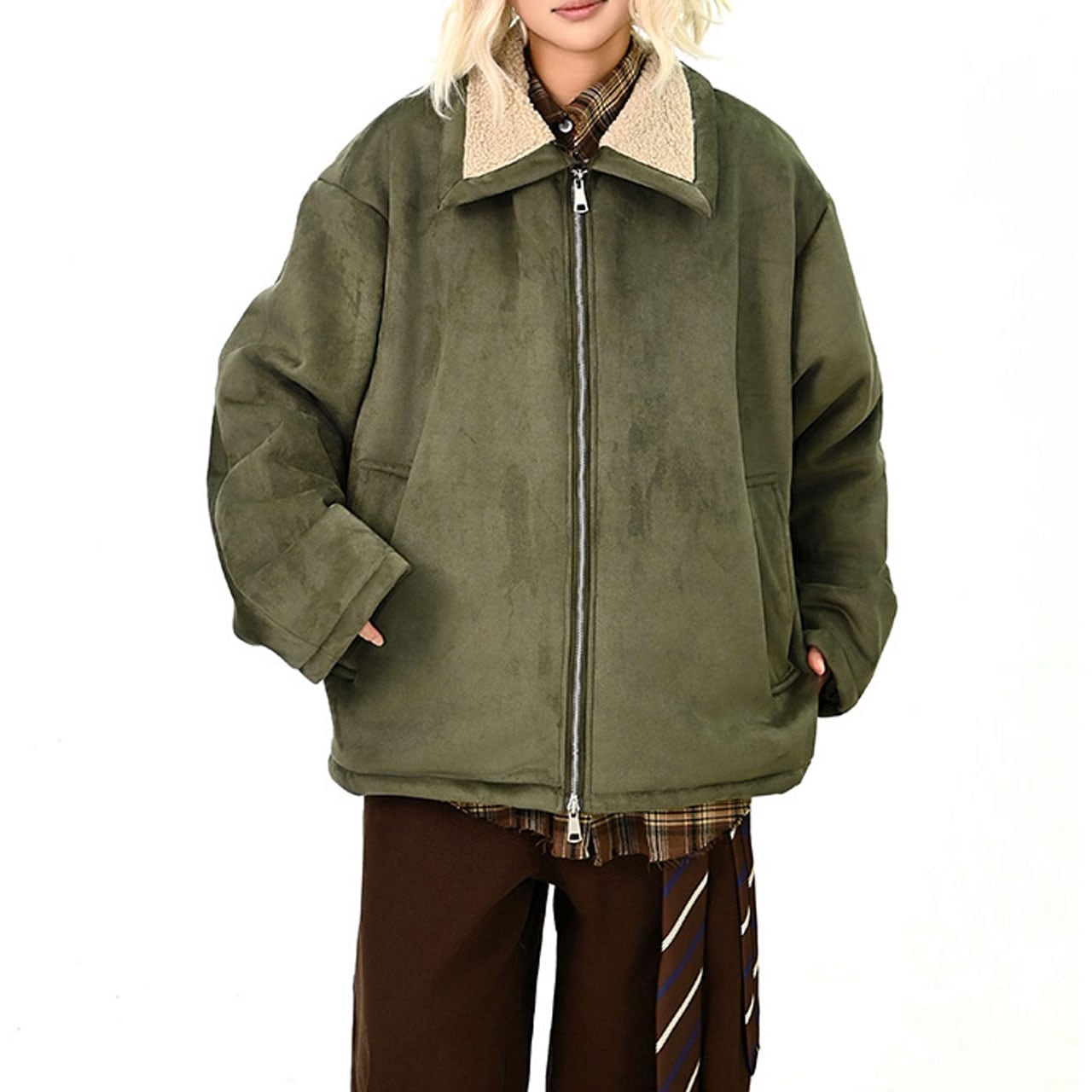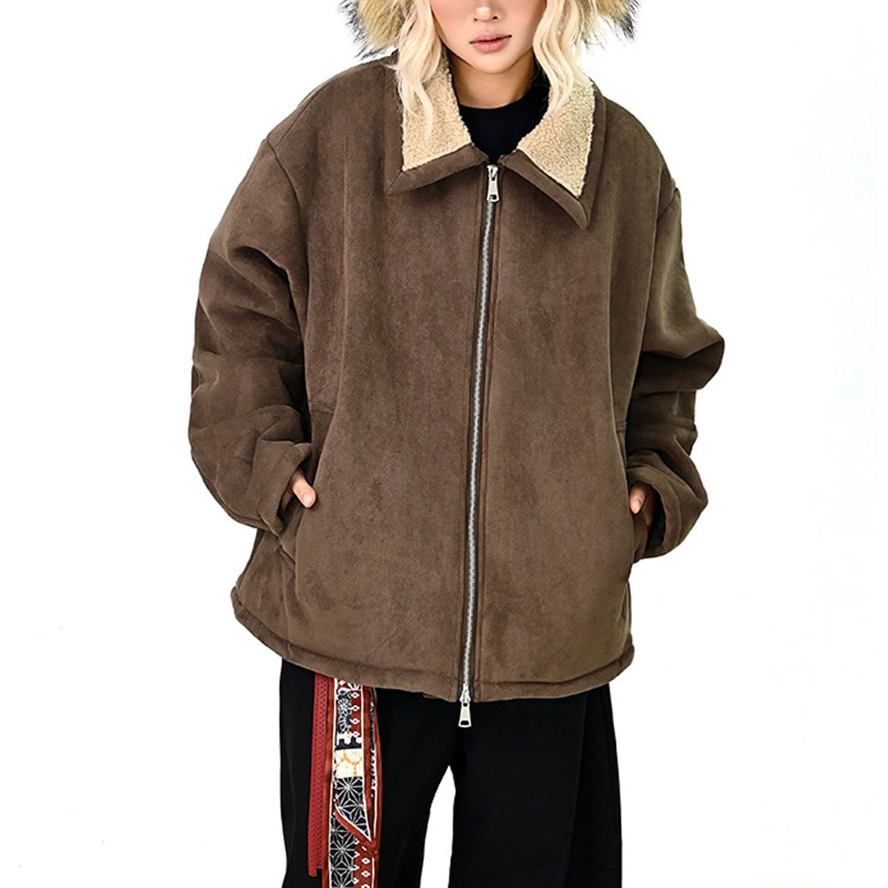 無駄のないシンプルデザインにボア襟が映える一枚。