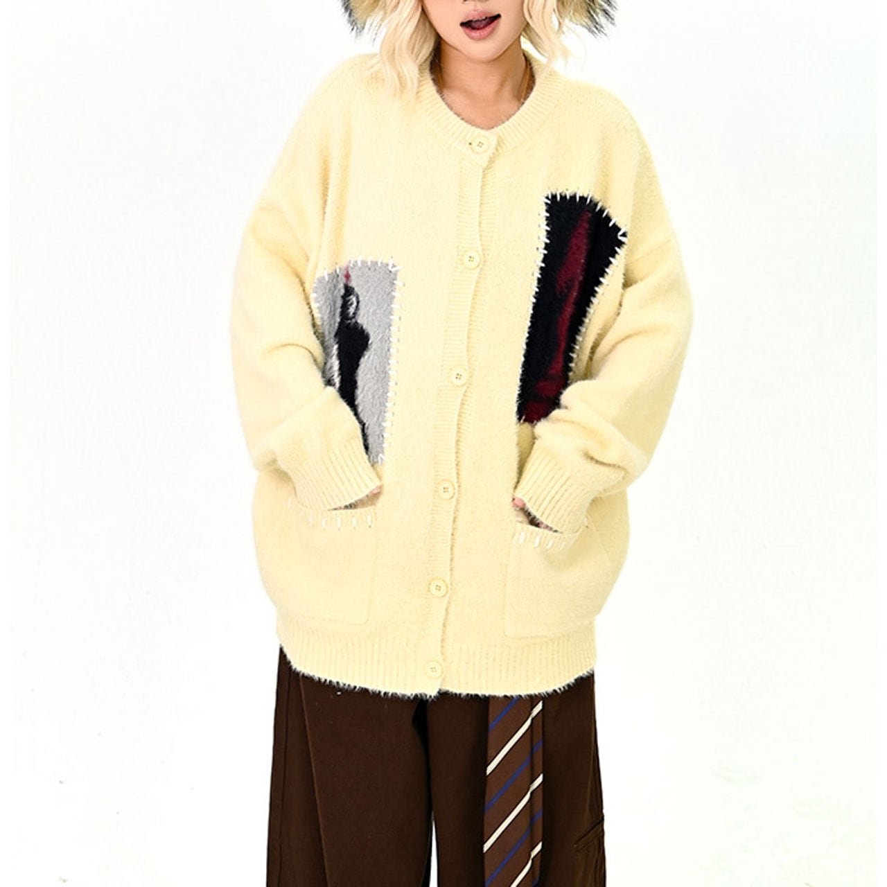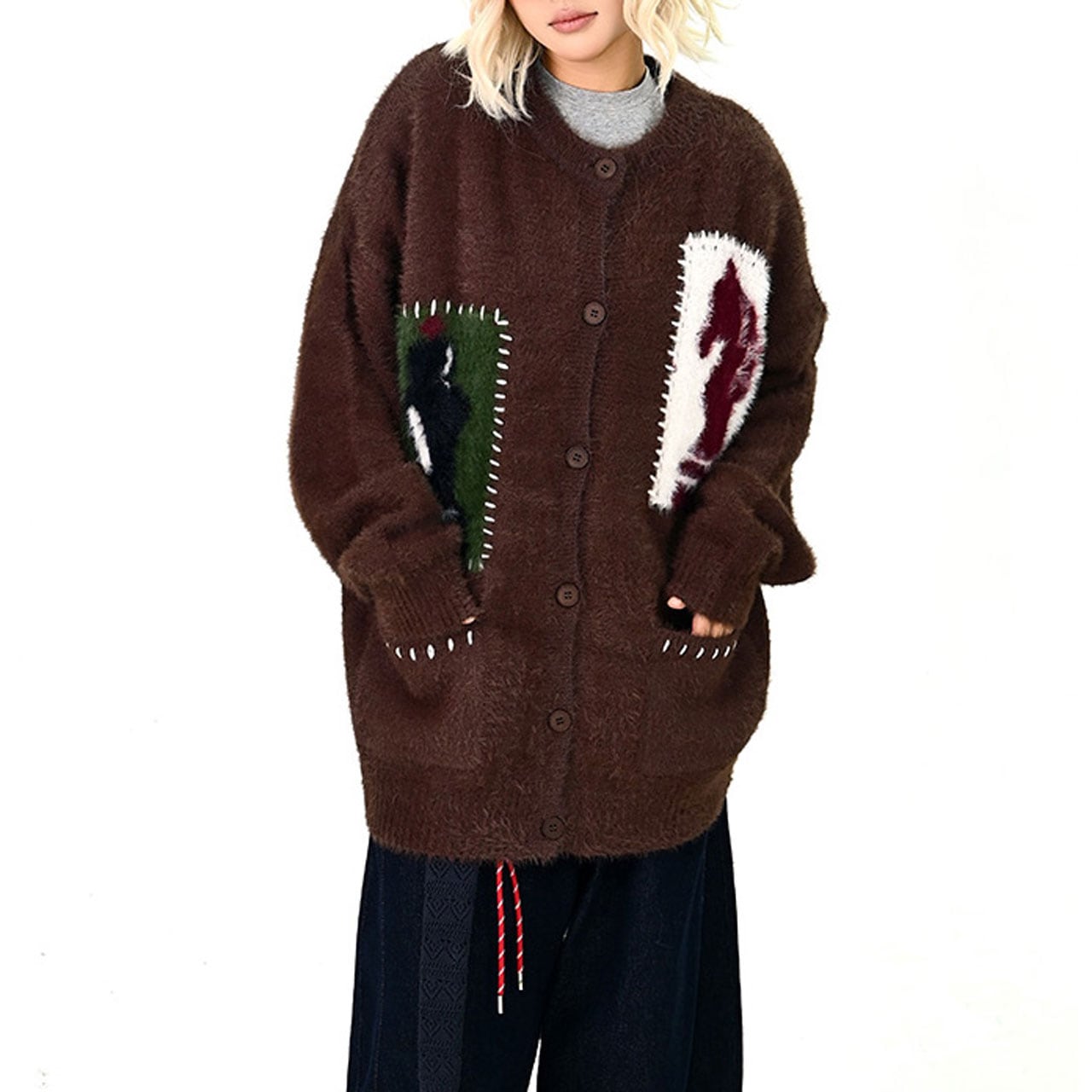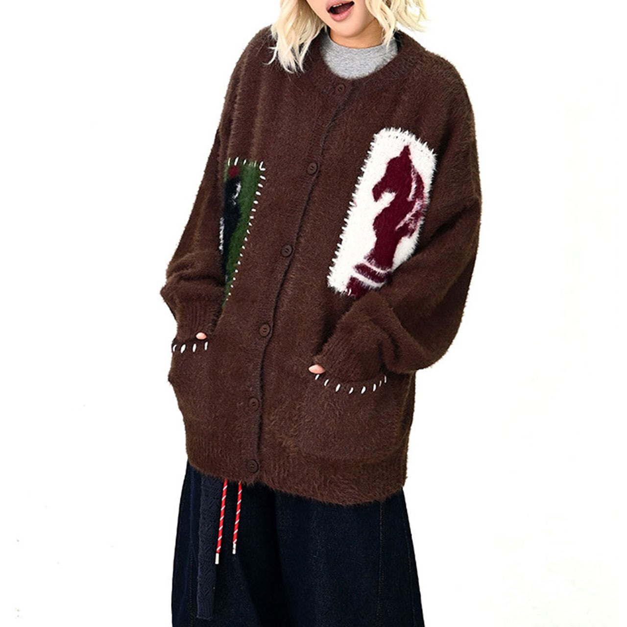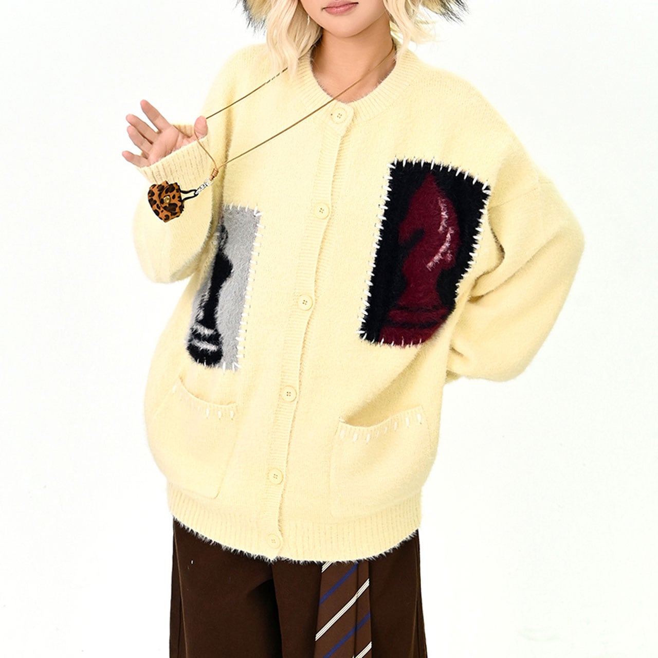 チェス駒モチーフのポケットデザインが印象的なカーディガン。
