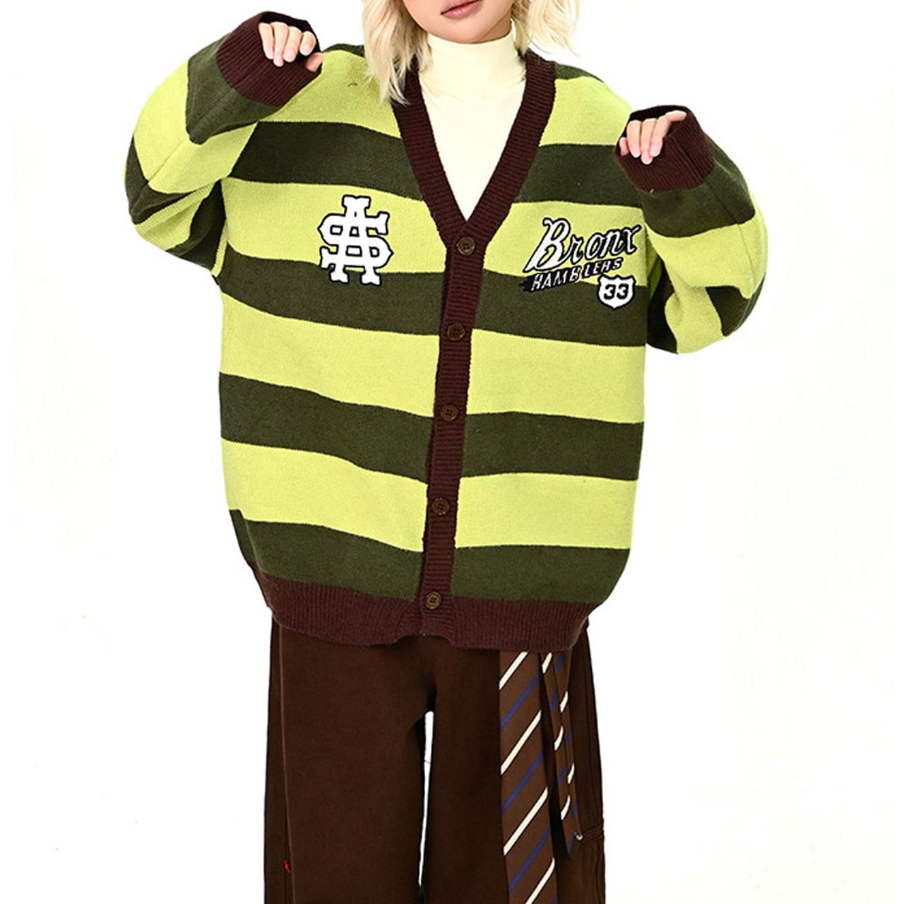 ボーダーカレッジロゴカーディガン R01184