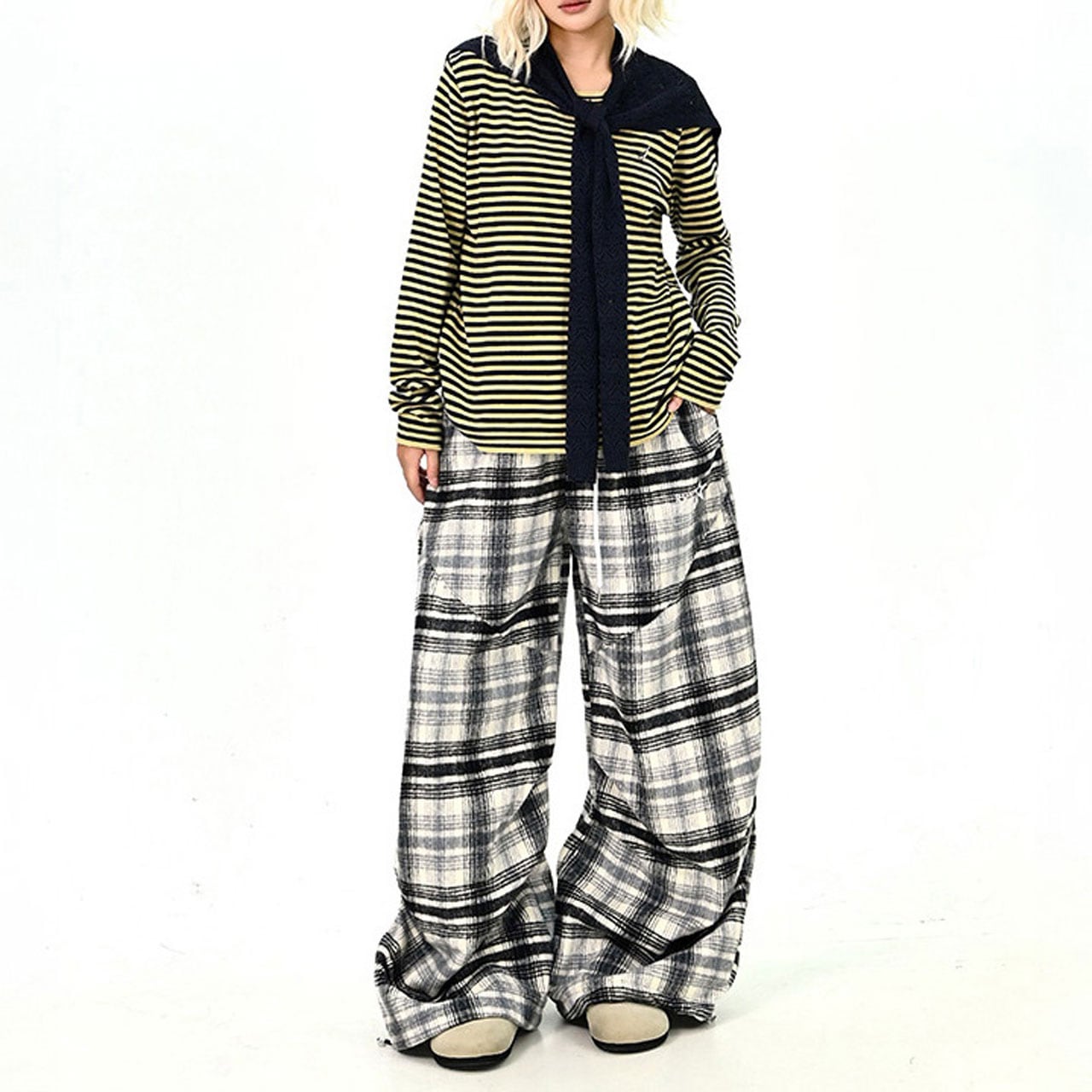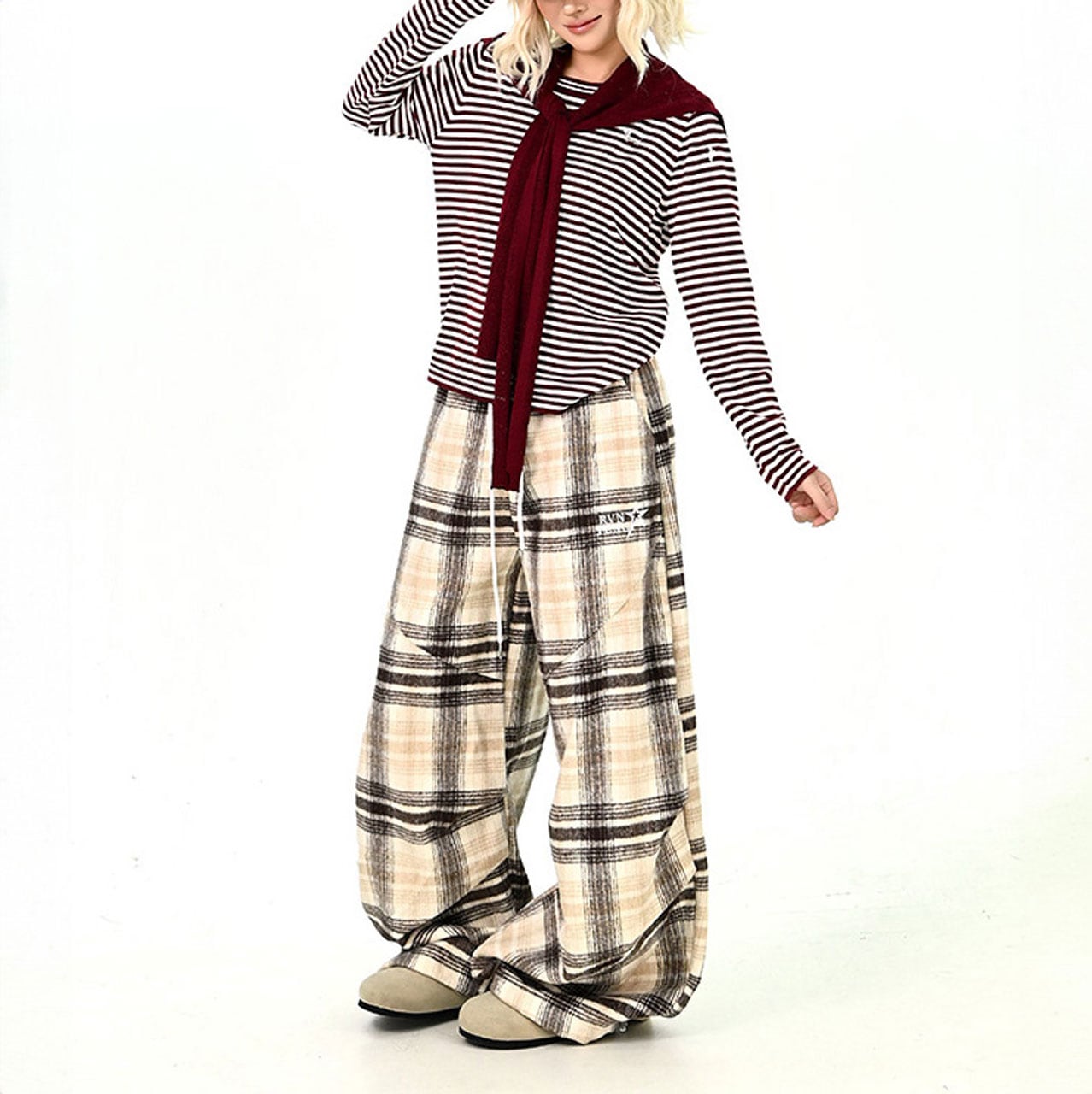 ゆるっとしたシルエットがかわいいチェックワイドパンツ。