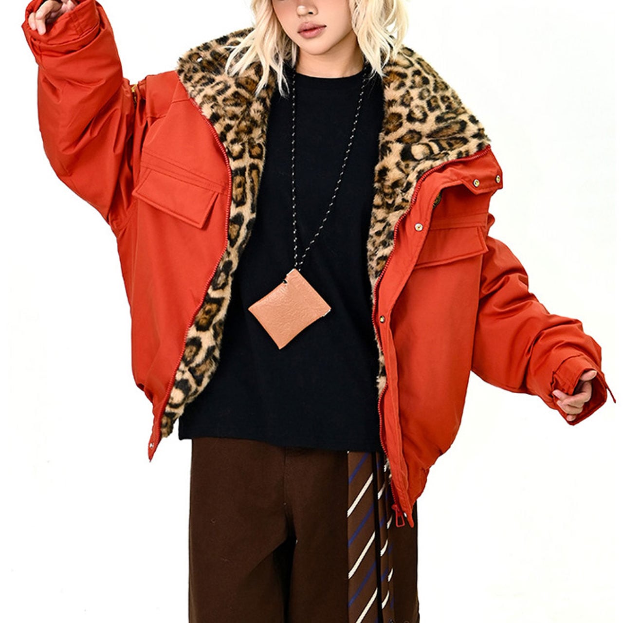 ボリュームシルエットにレオパードの襟を効かせた存在感抜群のアウター。