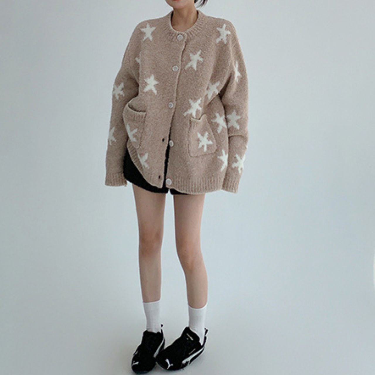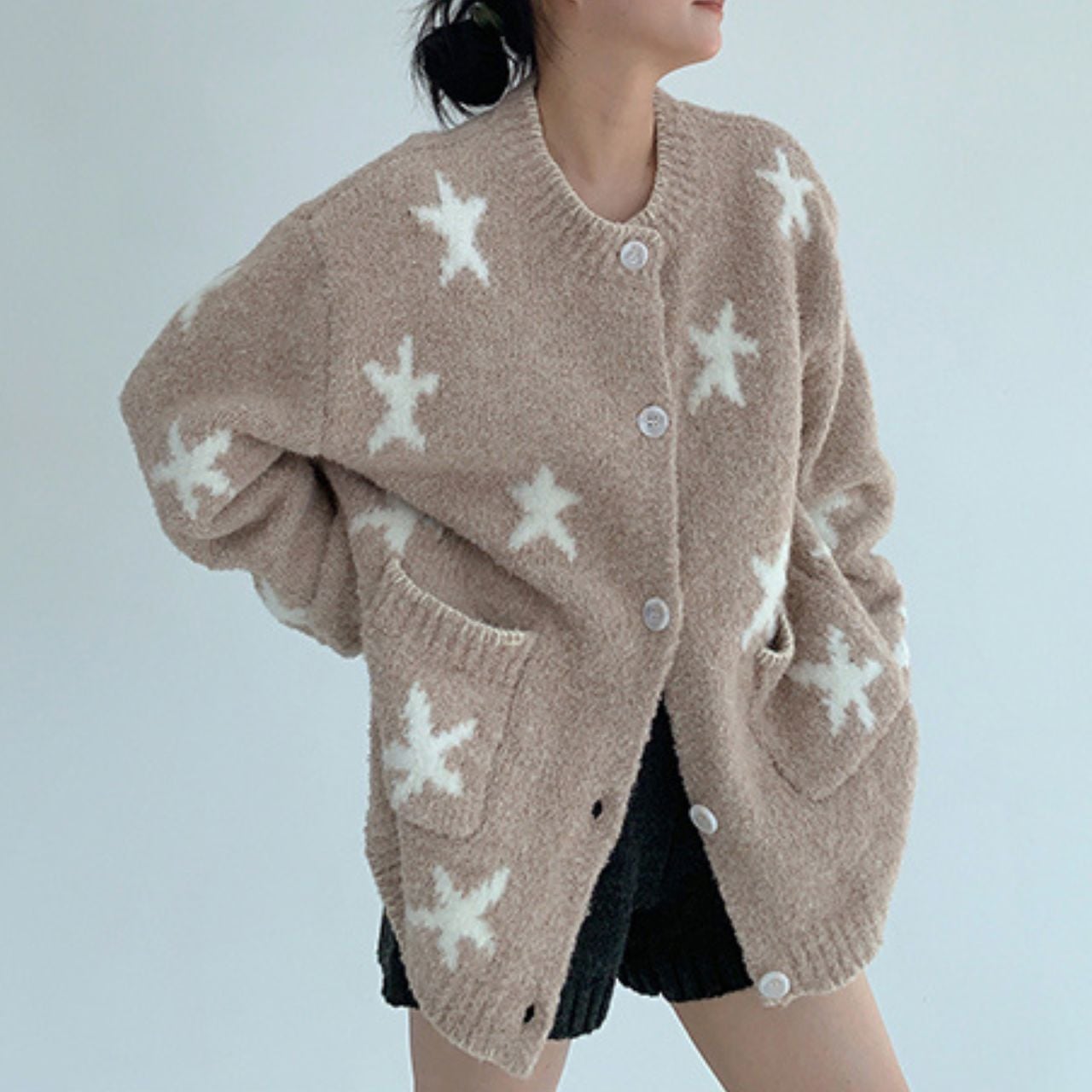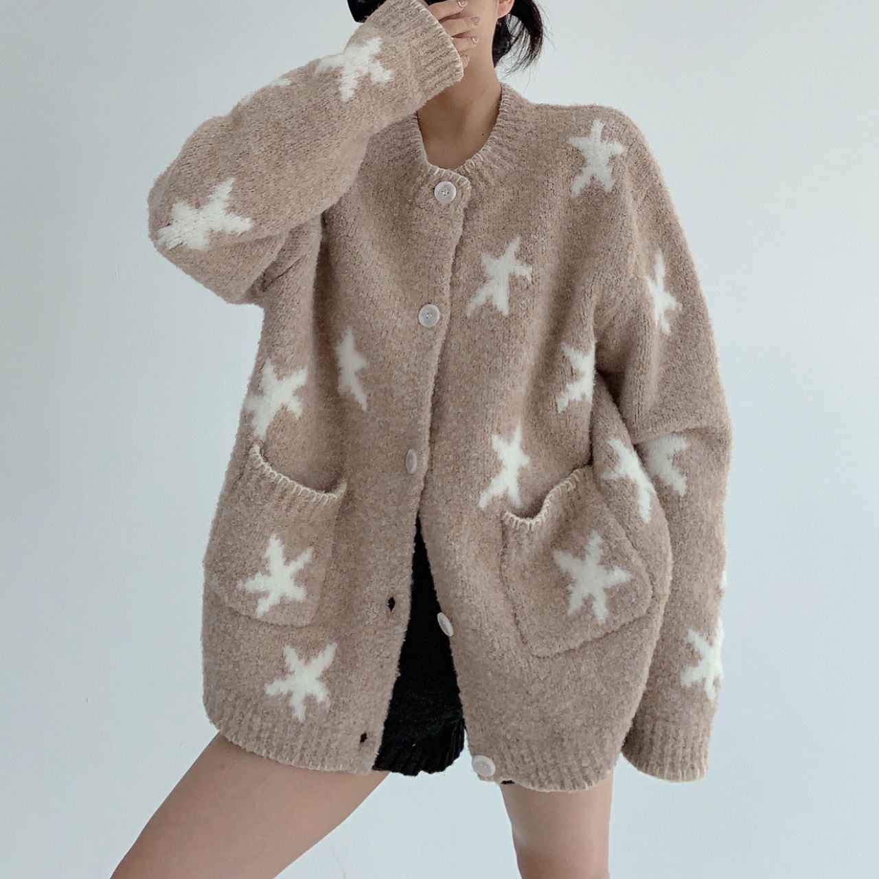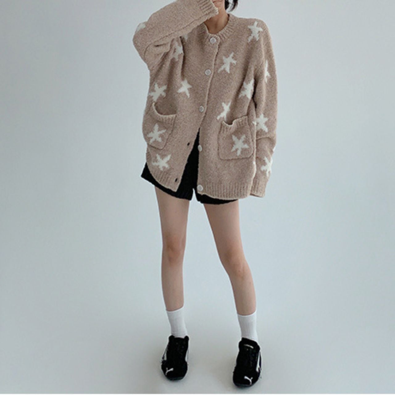 星柄が全体に散りばめられた遊び心あるカーディガン。