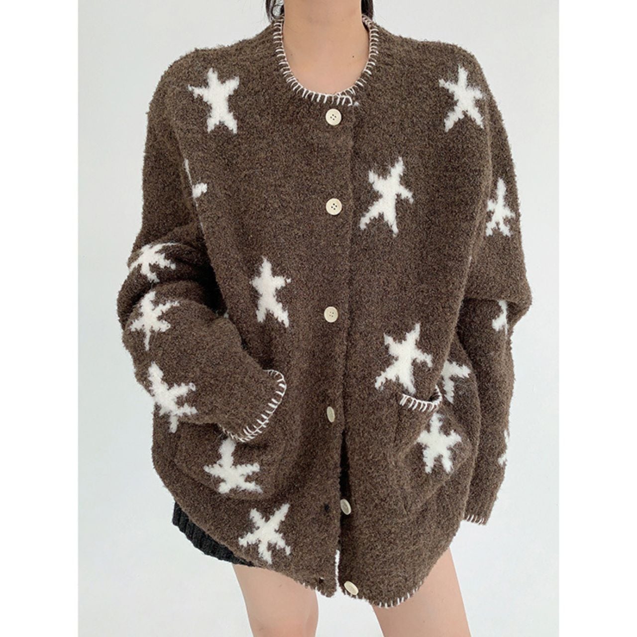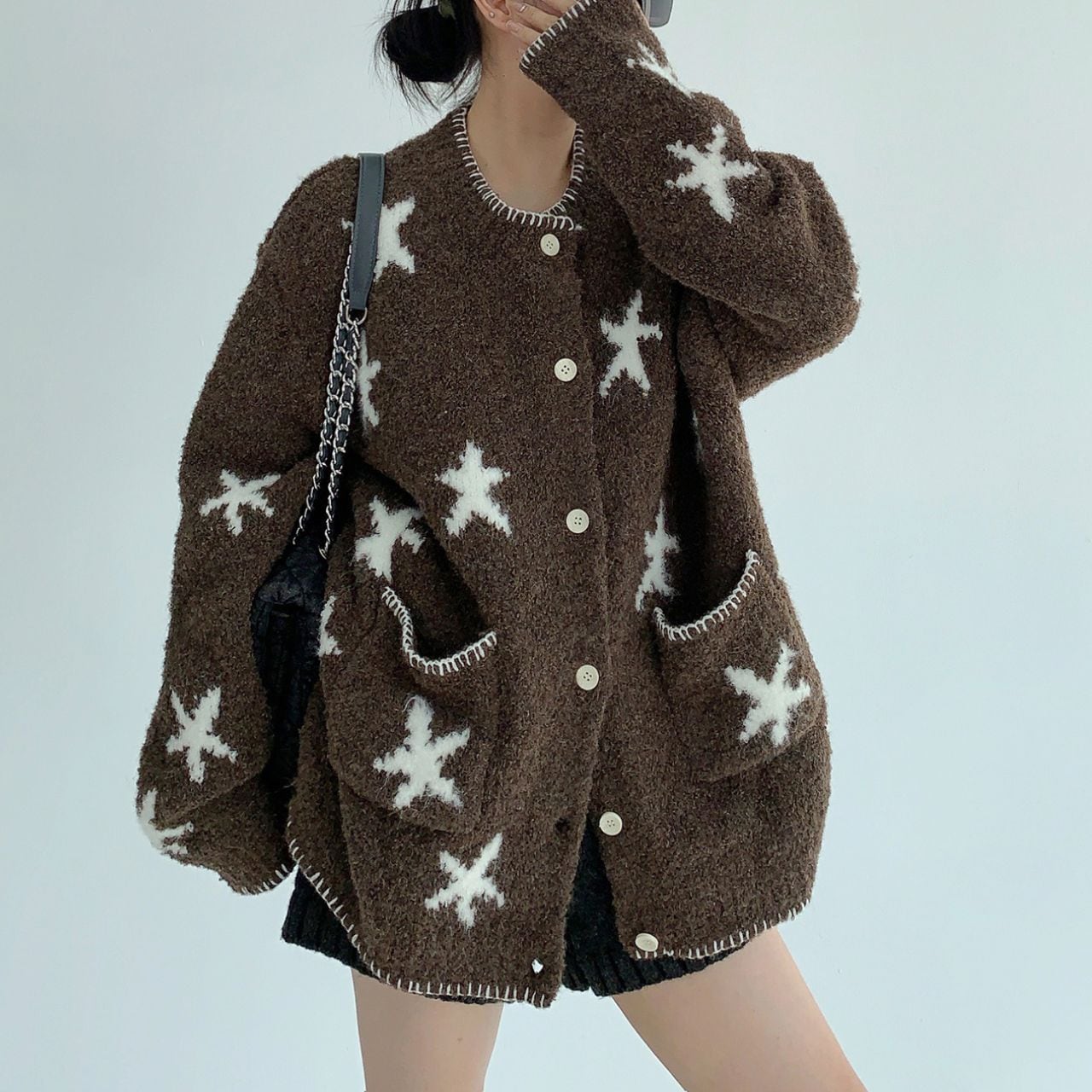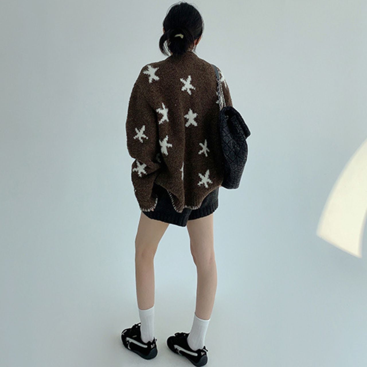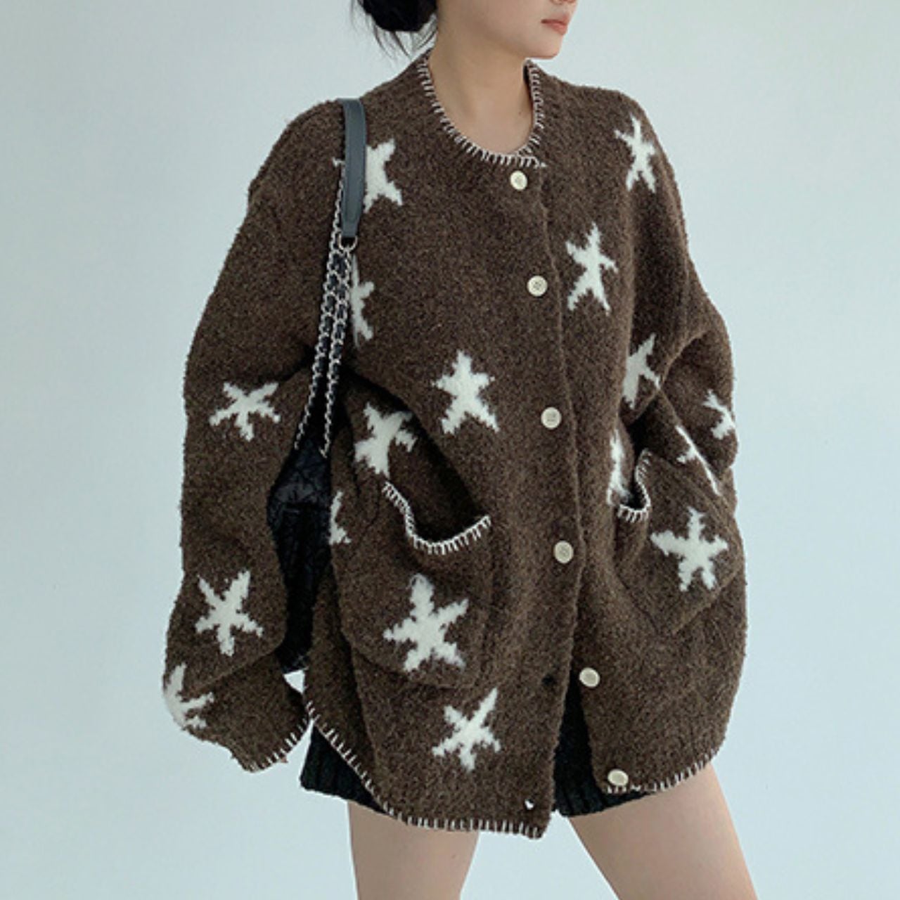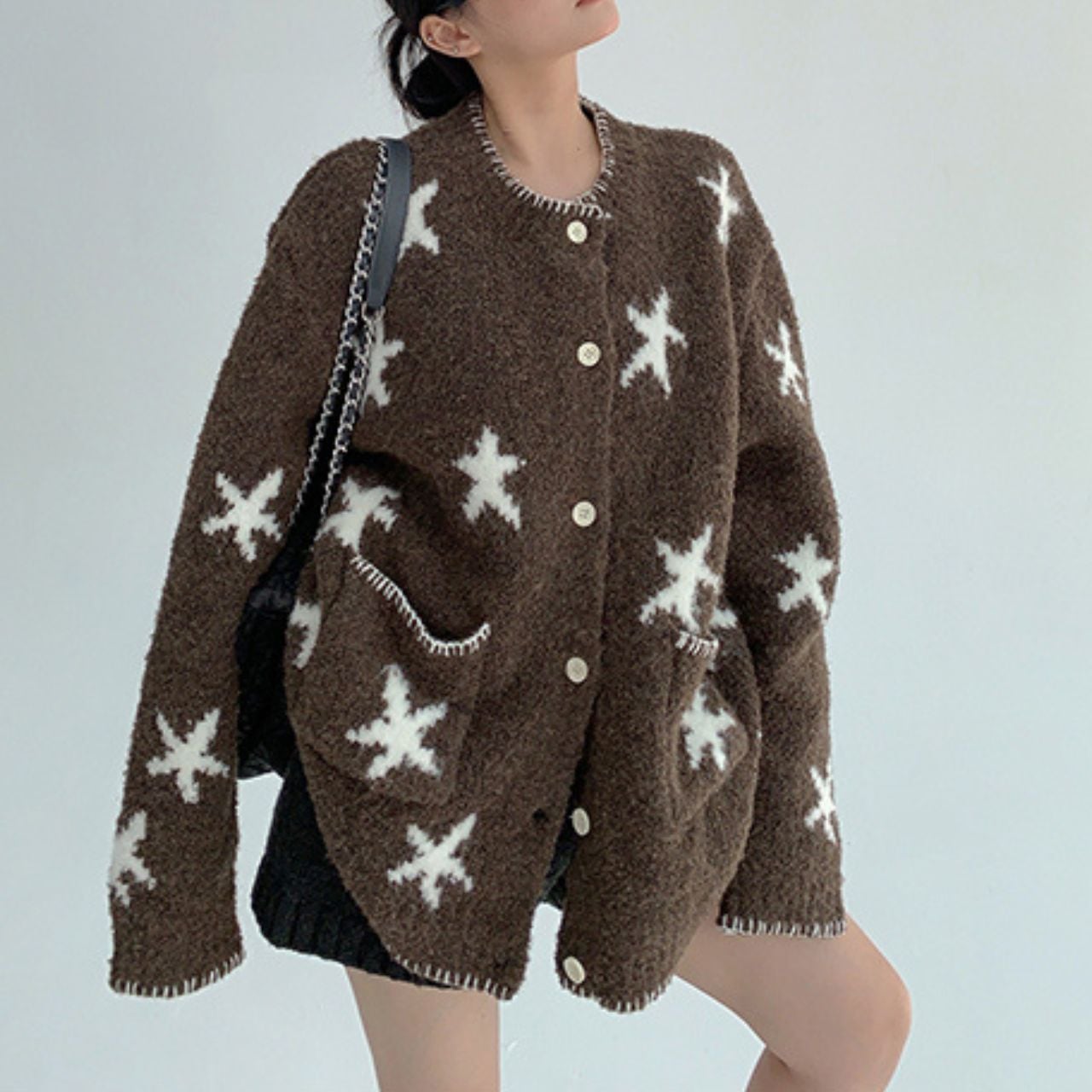 星柄が全体に散りばめられた遊び心あるカーディガン。