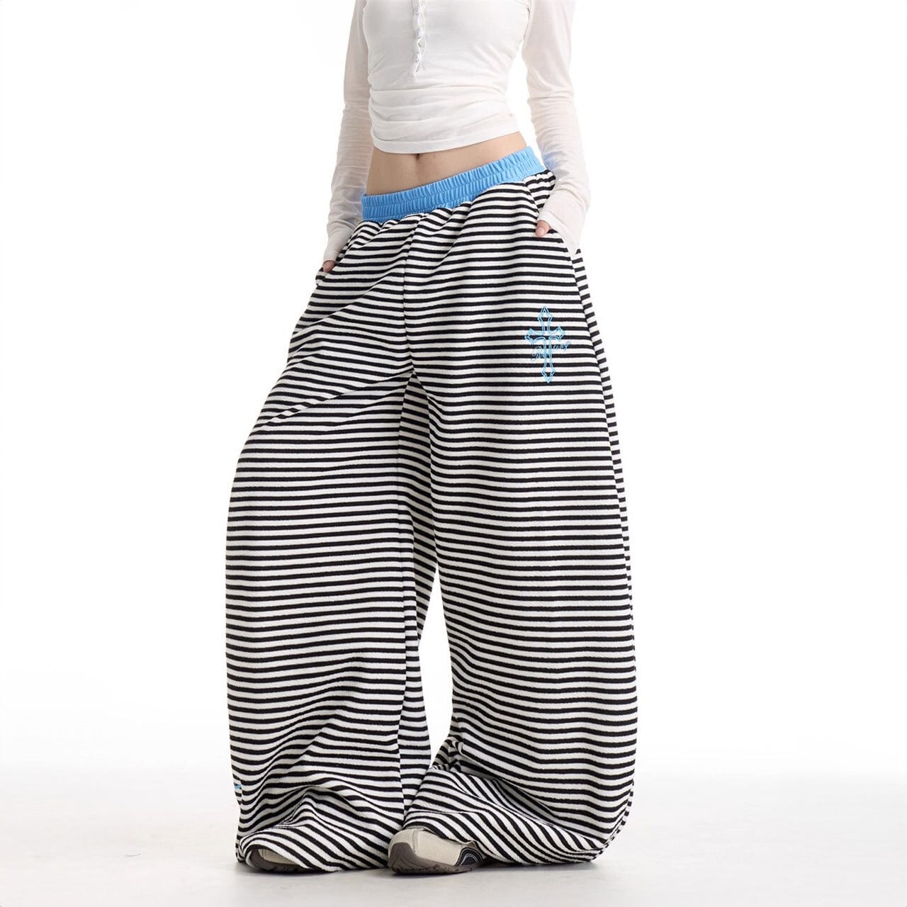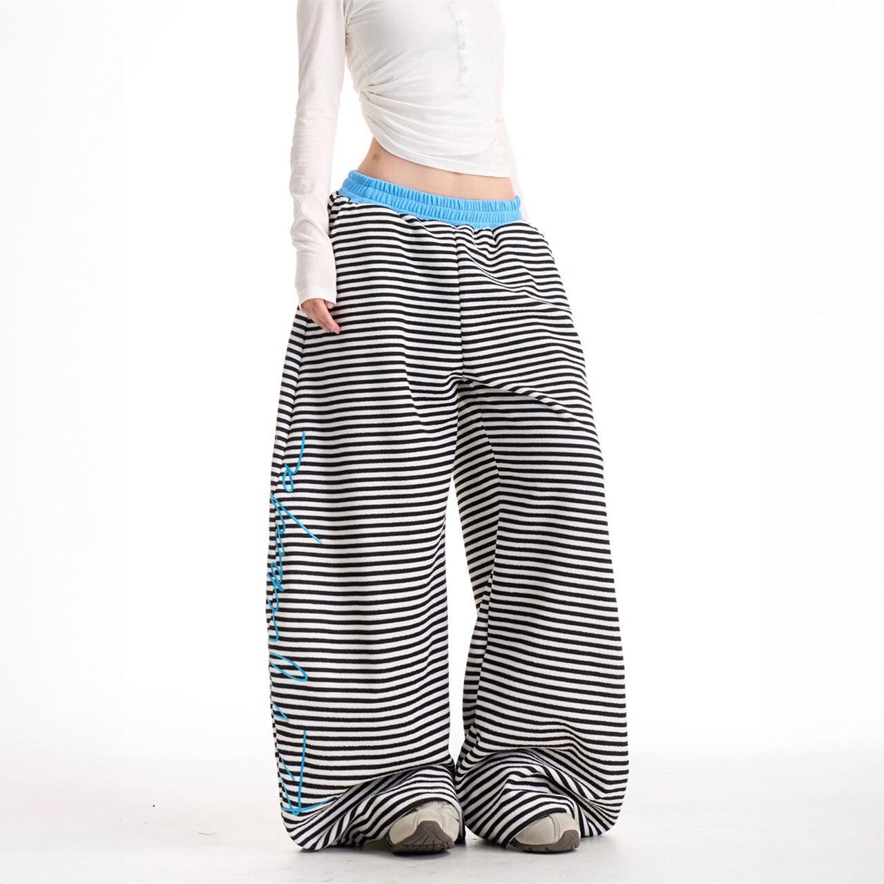 細ピッチのボーダーにブルーのレタリングが効いたポップなデザイン。