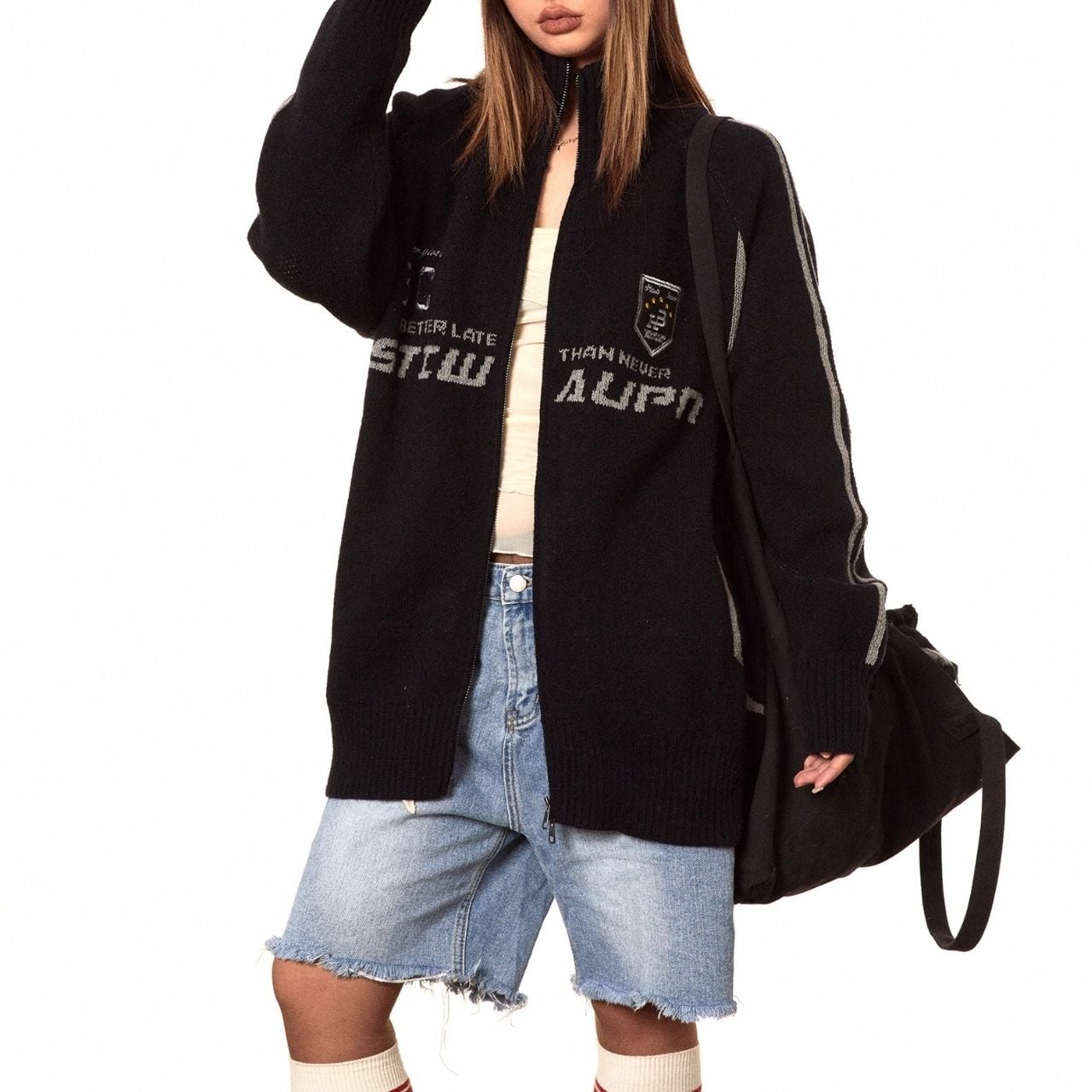 カレッジロゴスポーティジップニット 2col R01226