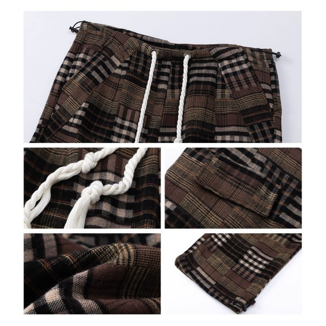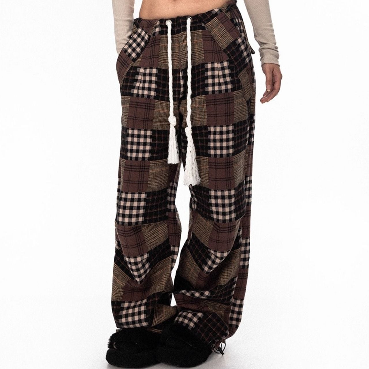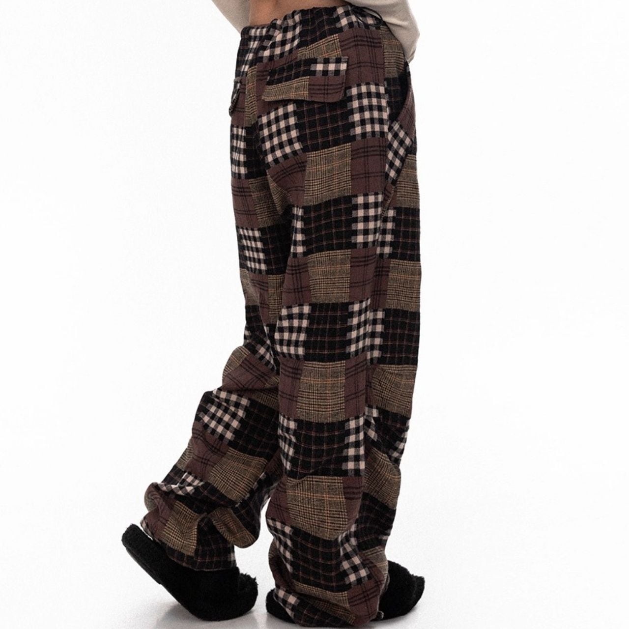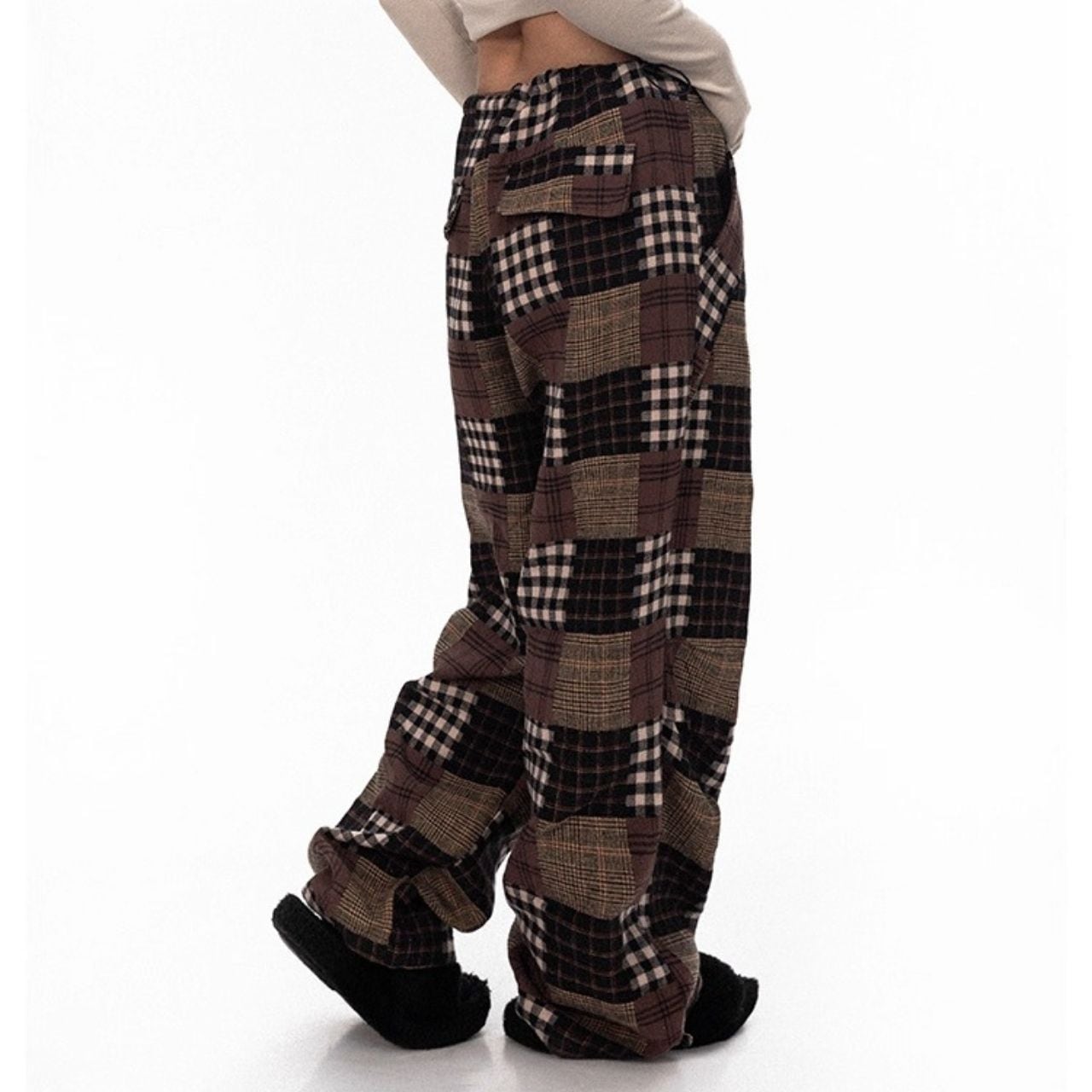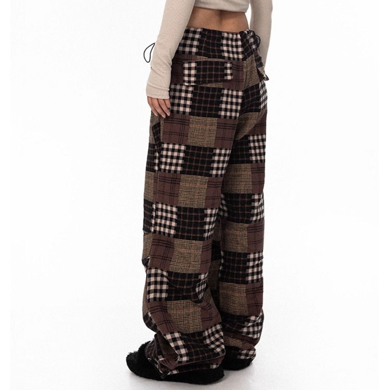 パッチワークチェックルーズパンツ R01227