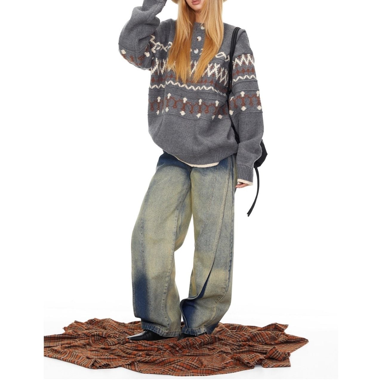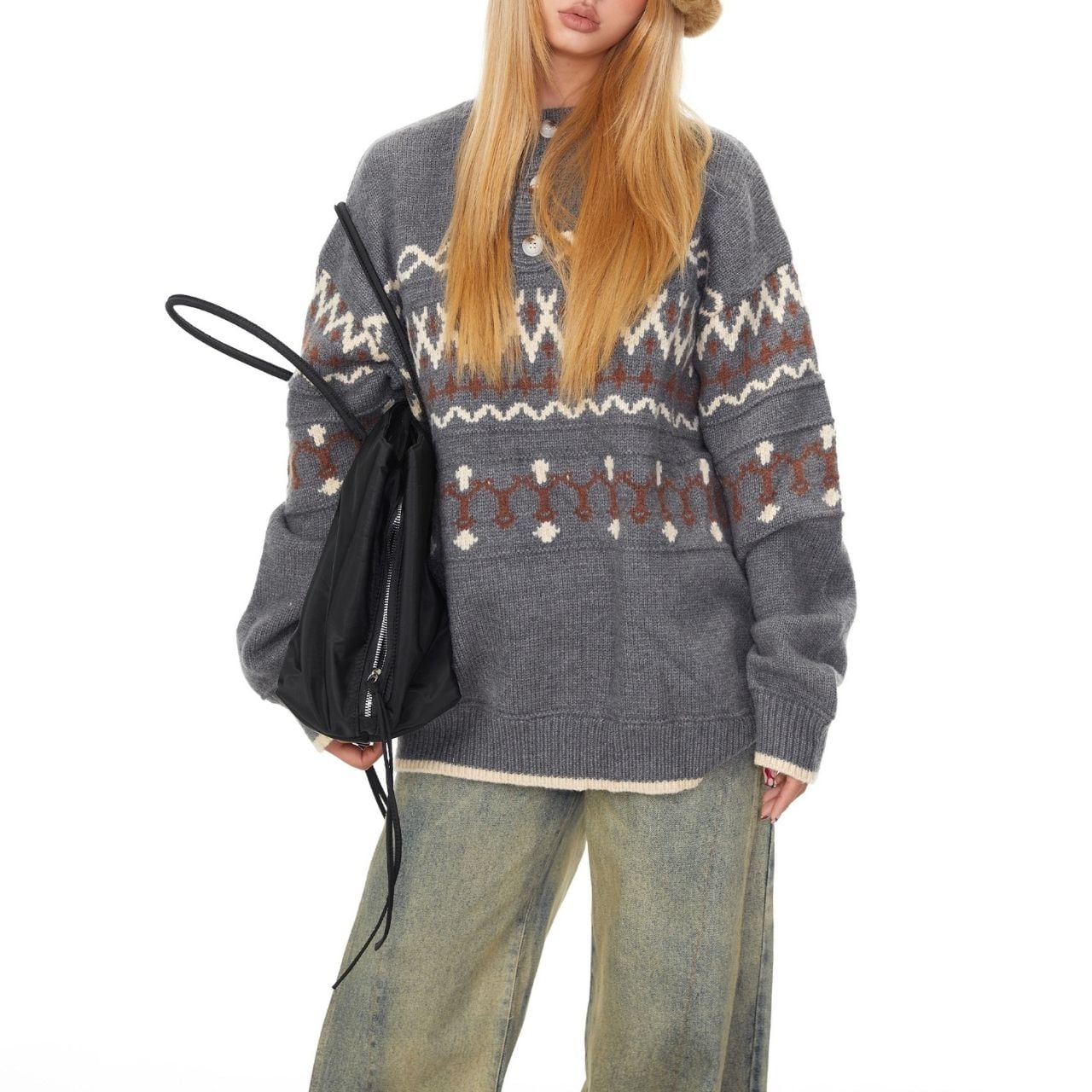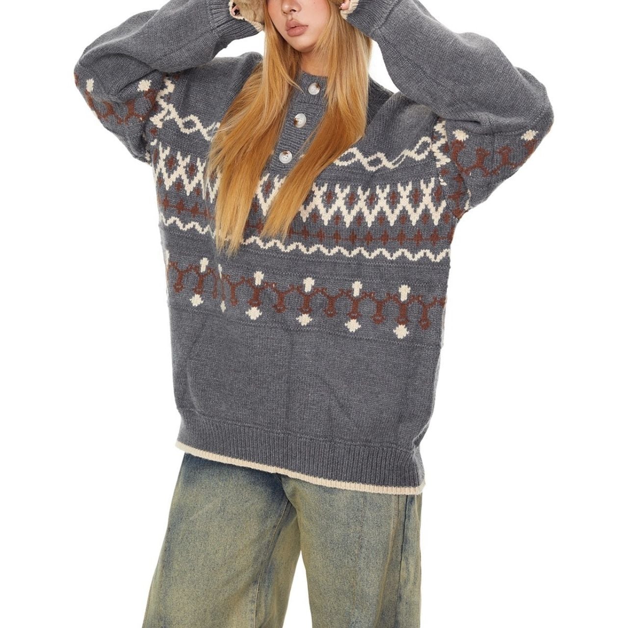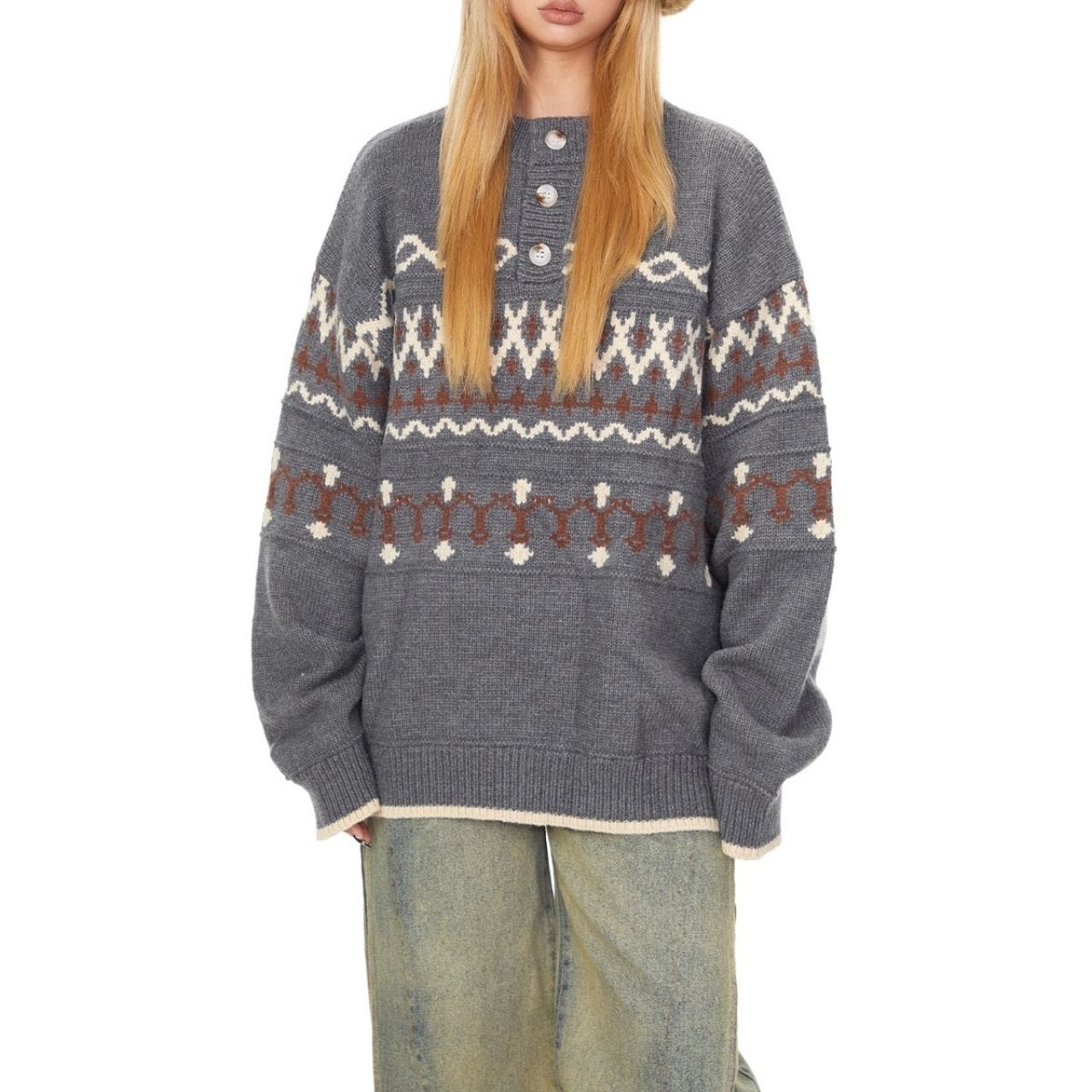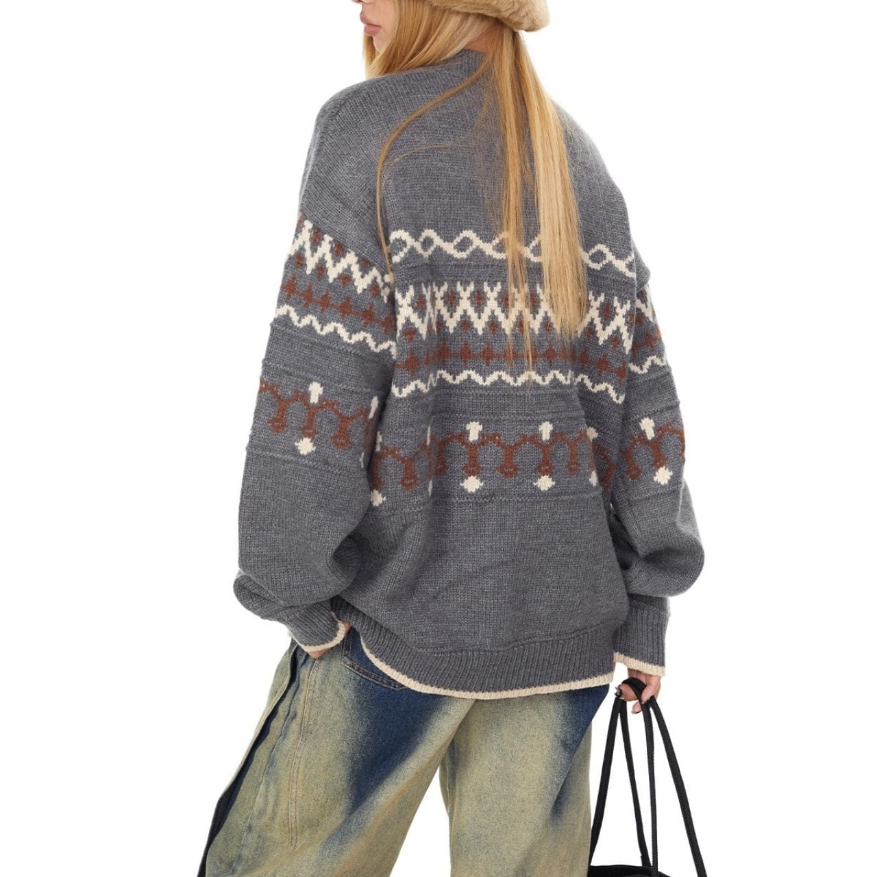 レトロパターンが目を引くノルディック調ニット。