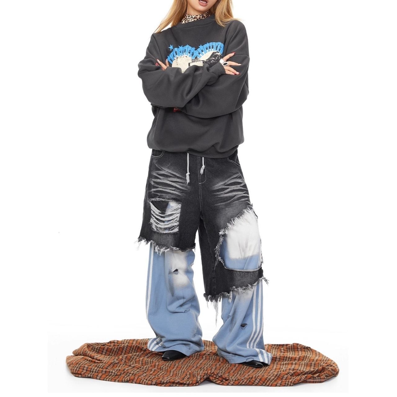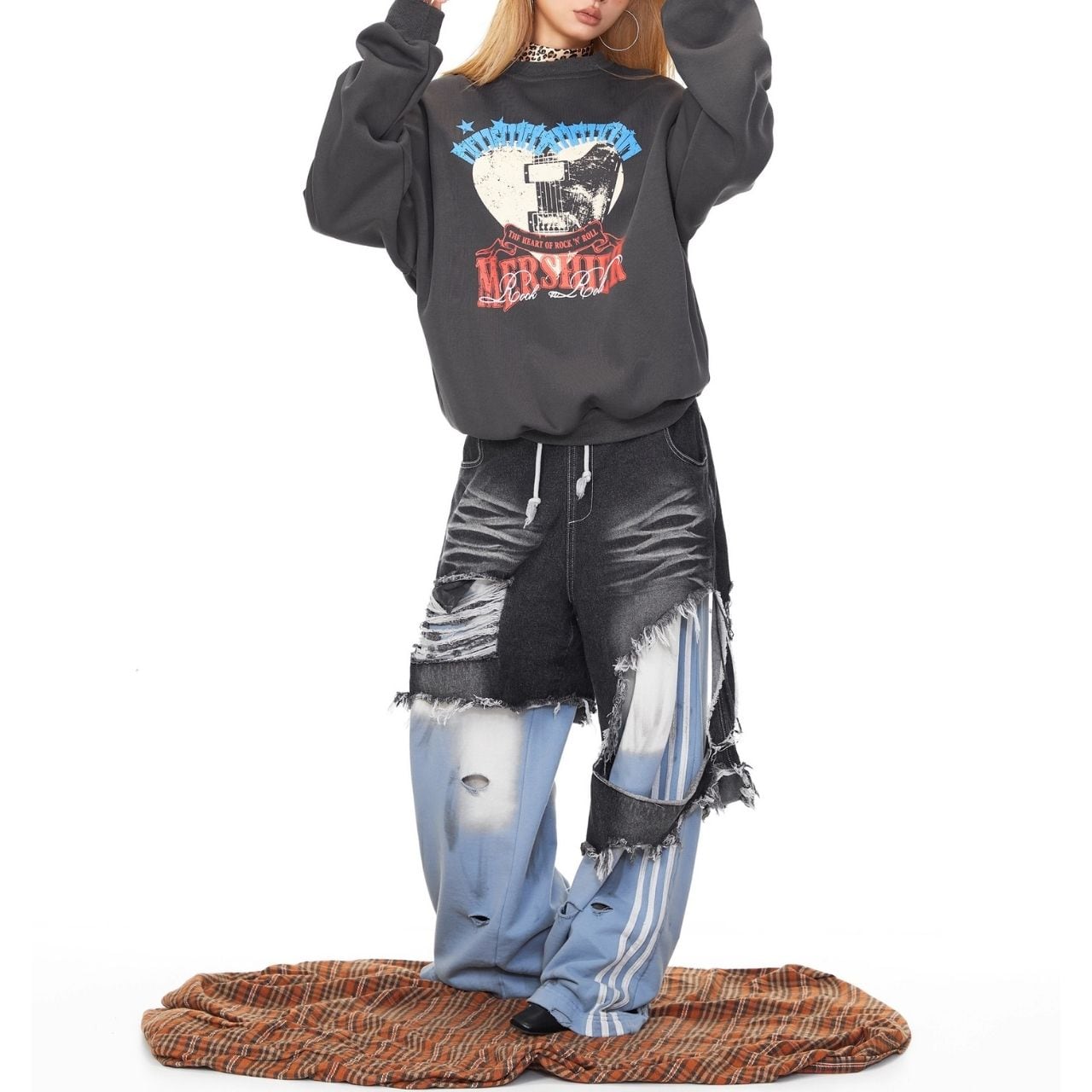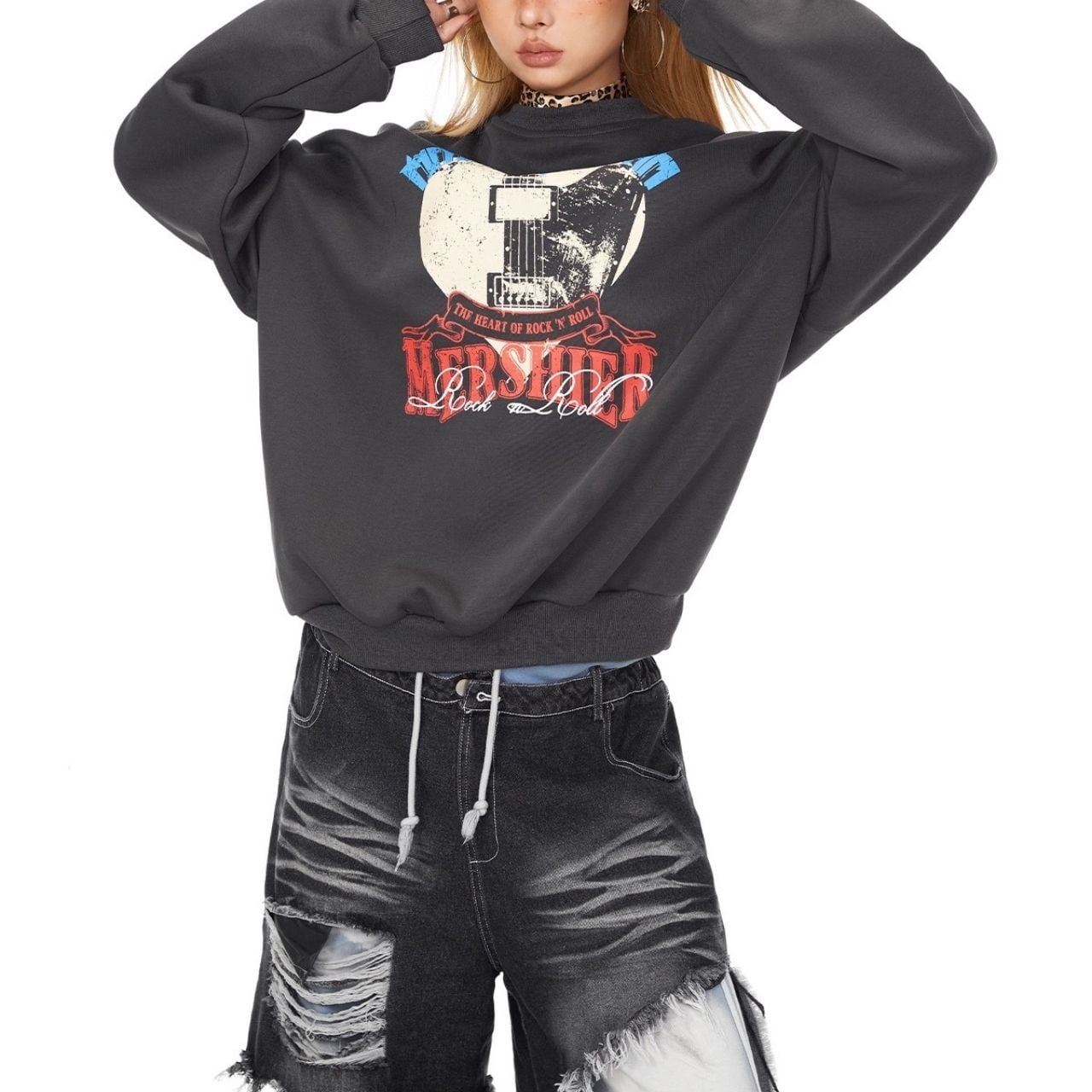 大胆なハートプリントが主役のストリートスウェット。