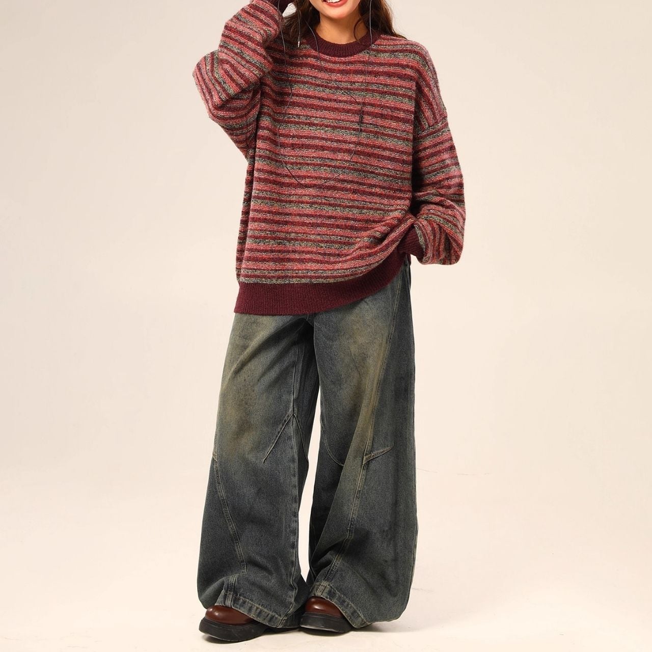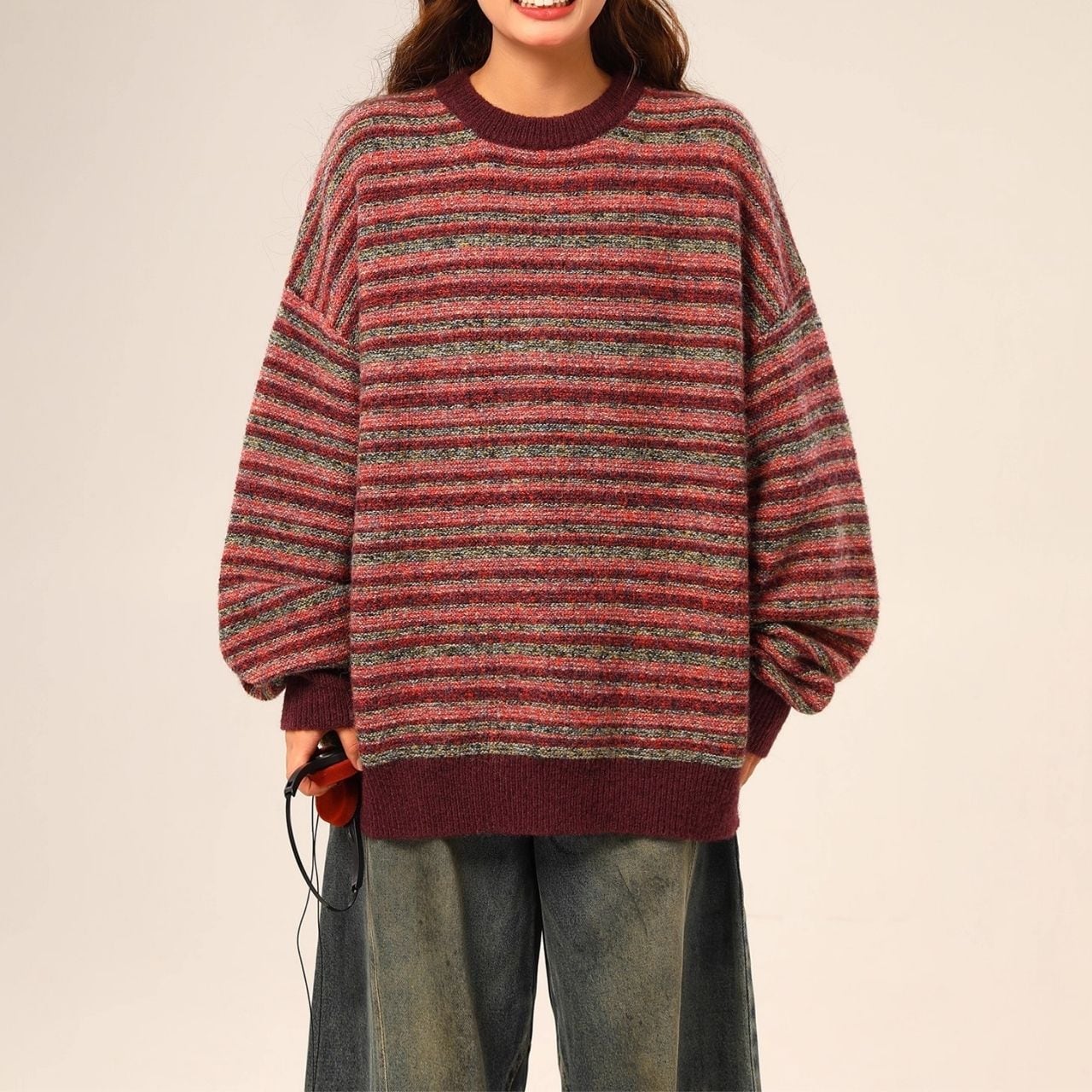 ゆるっとしたリラックス感が可愛いボーダーニット。