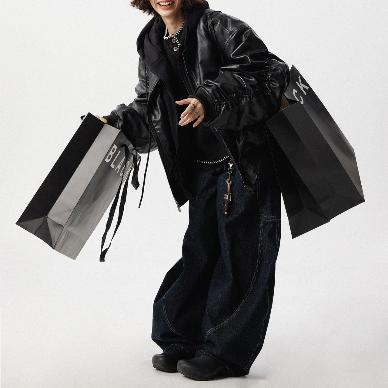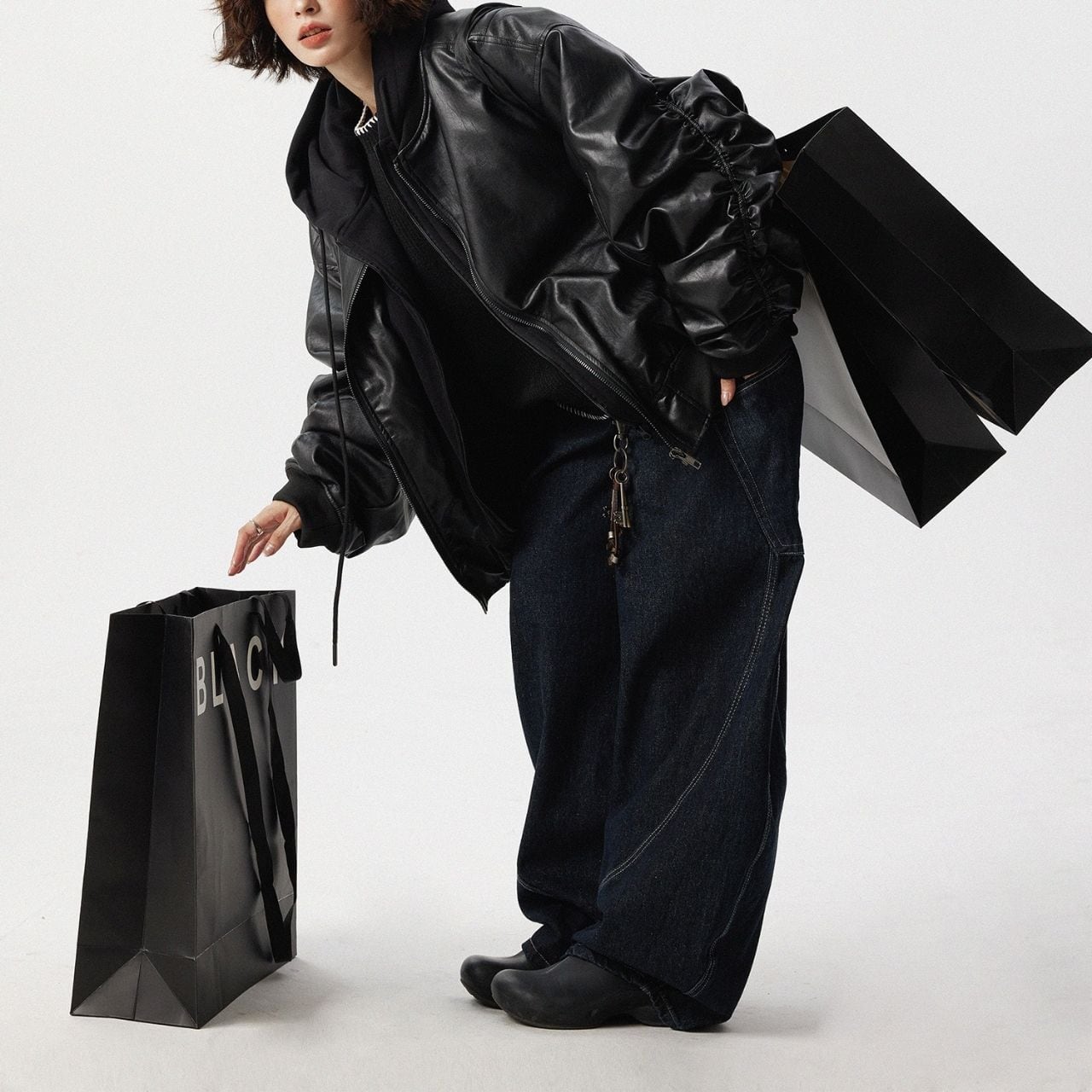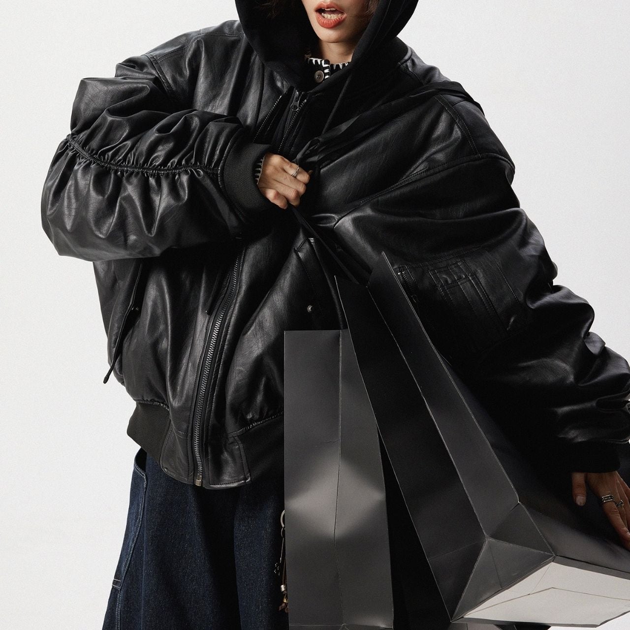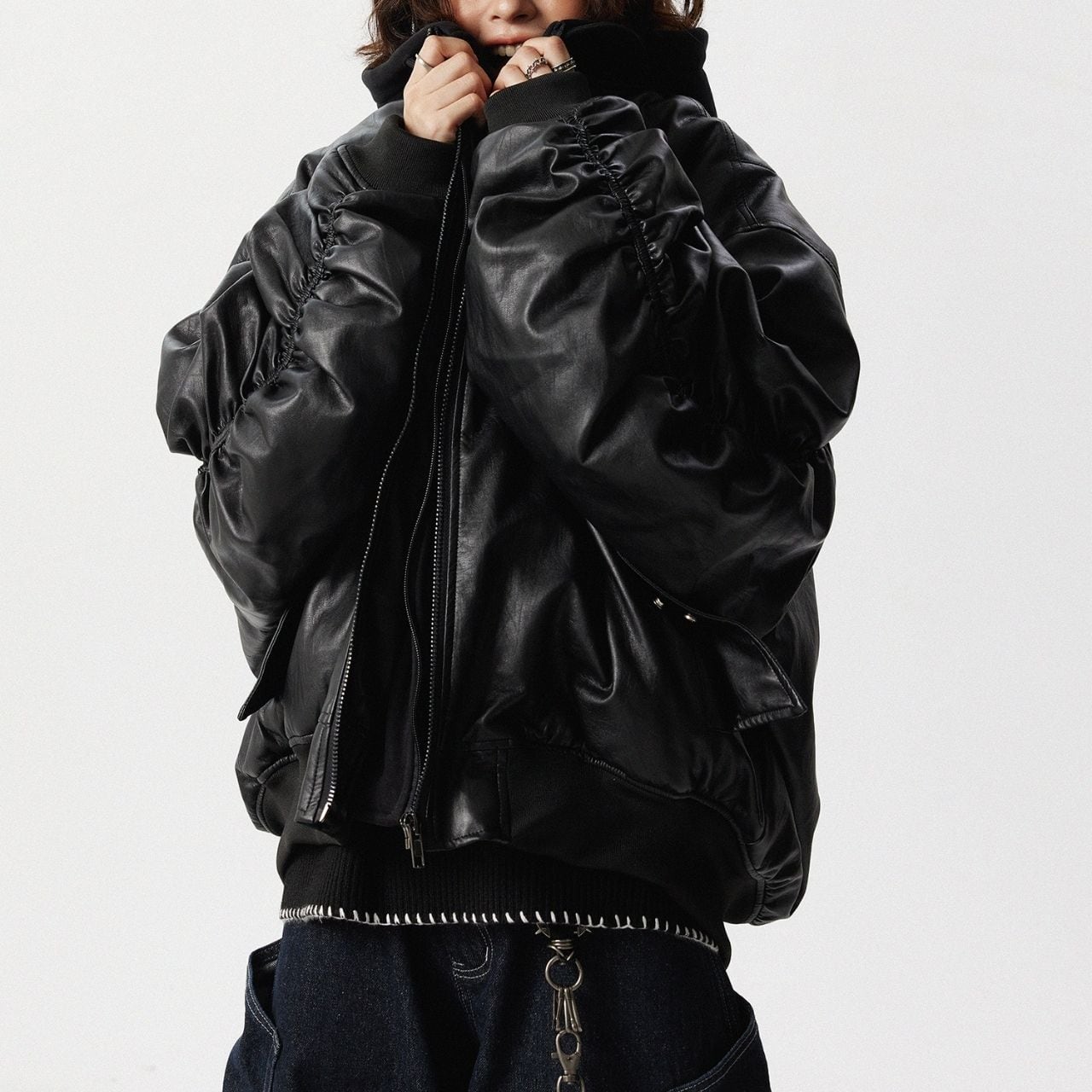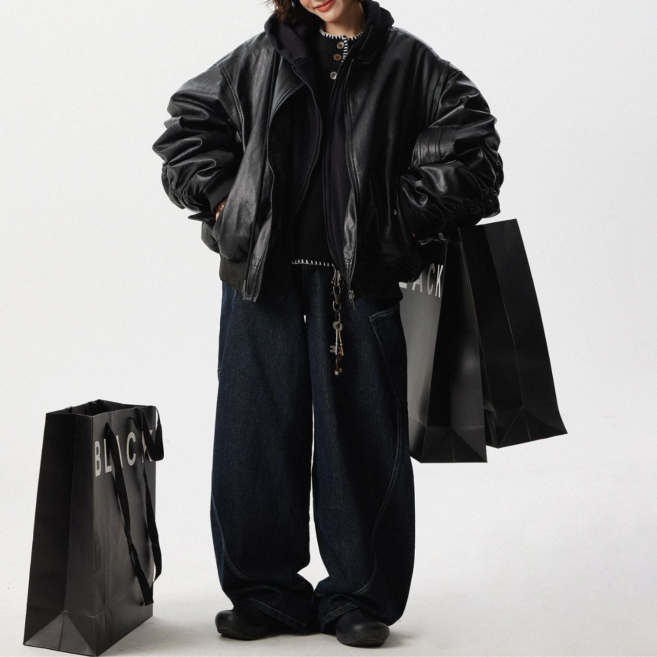 ワイドなボリューム感が主役になるフェイクレザーブルゾン。