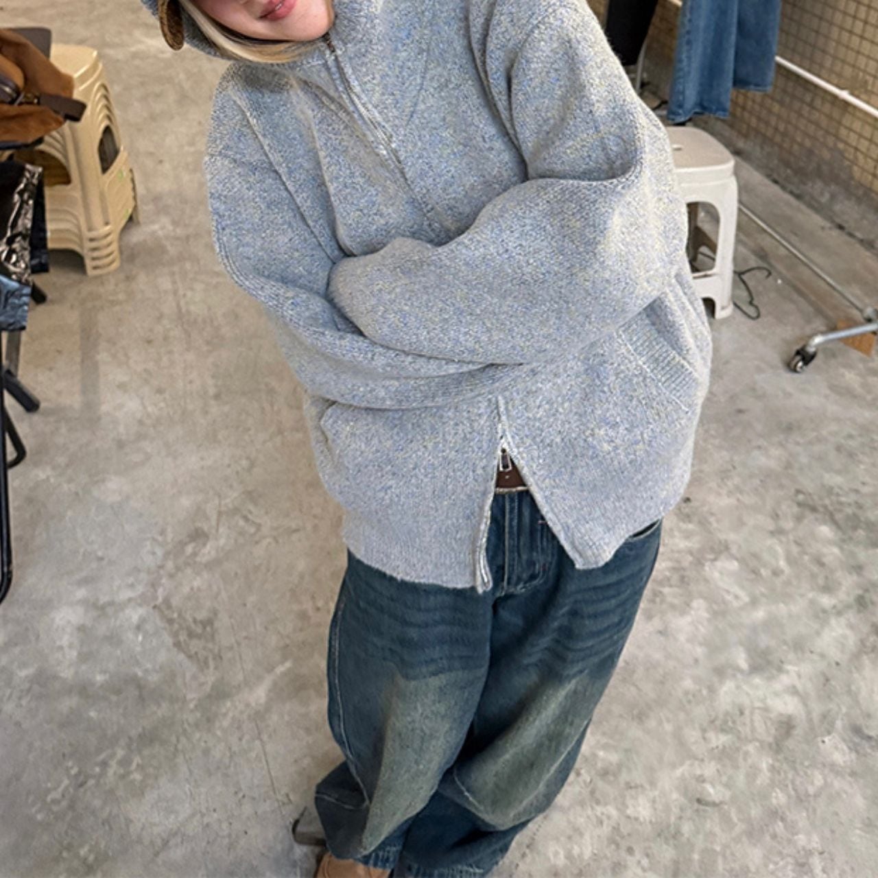 ミックスヤーンソフトルーズフーディニット 2col R01280