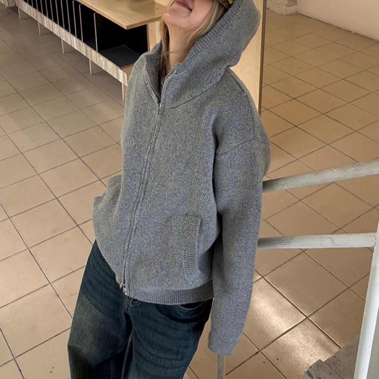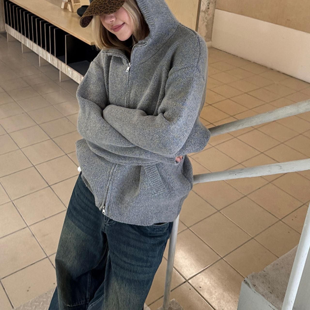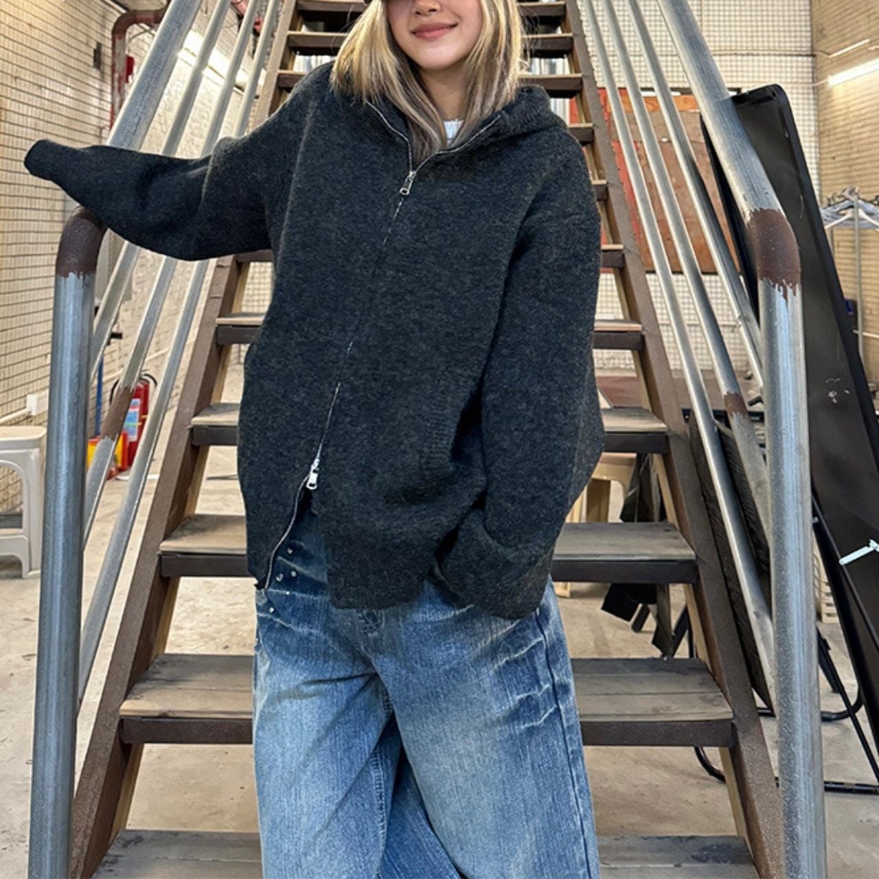 ゆるっと羽織れるオーバーサイズのジップニットフーディ。