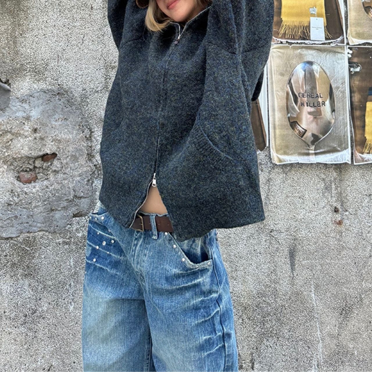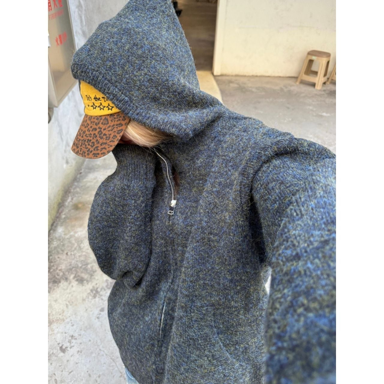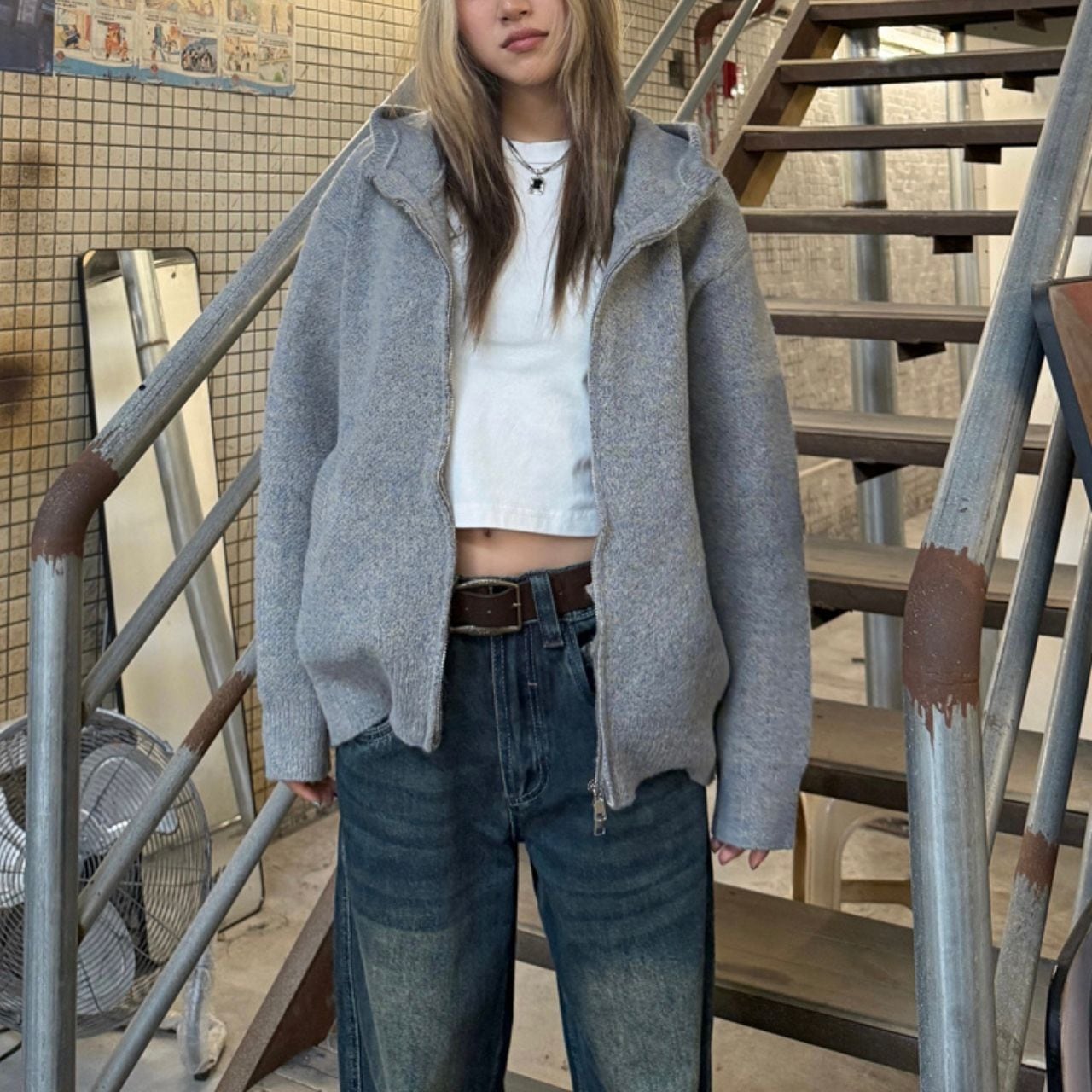 ゆるっと羽織れるオーバーサイズのジップニットフーディ。