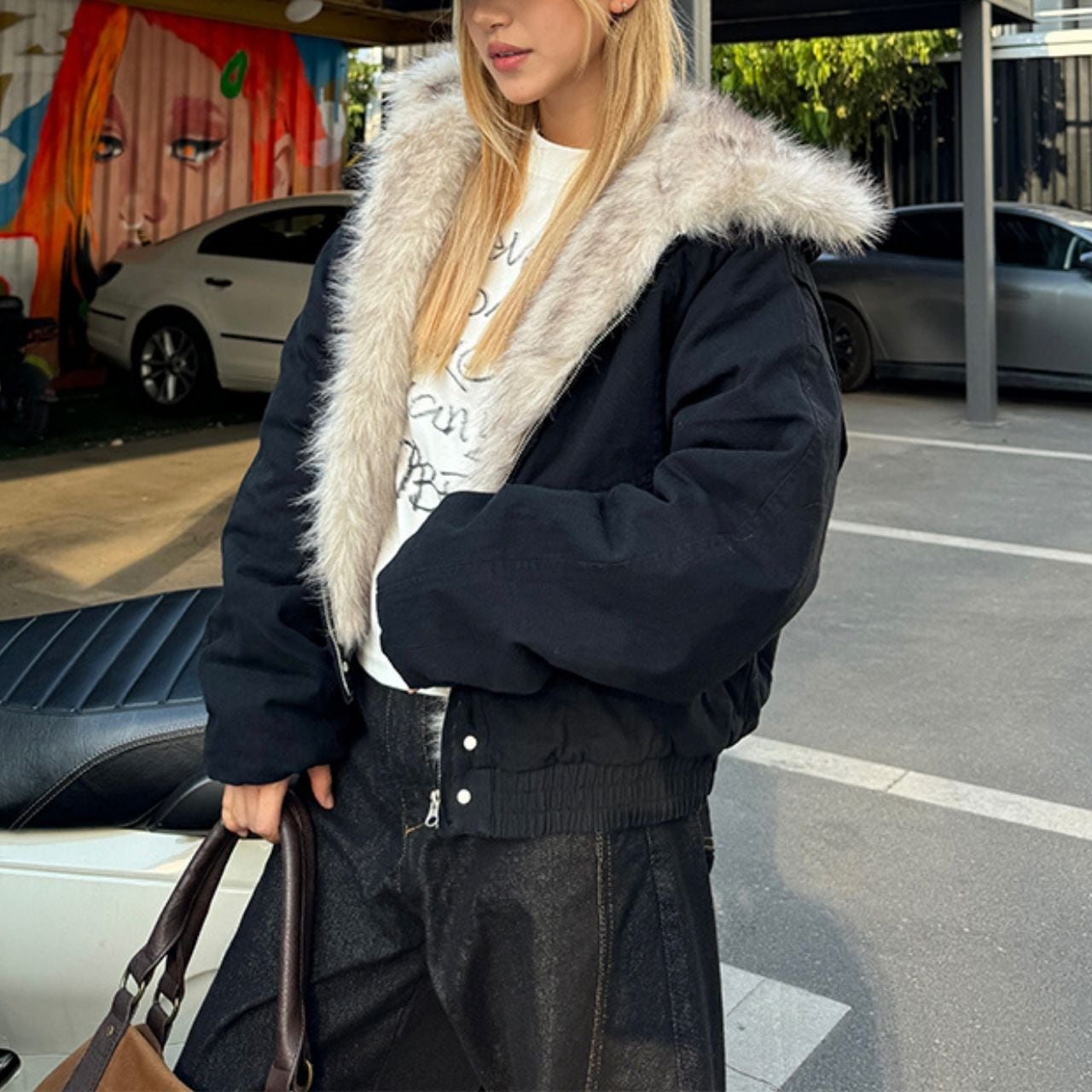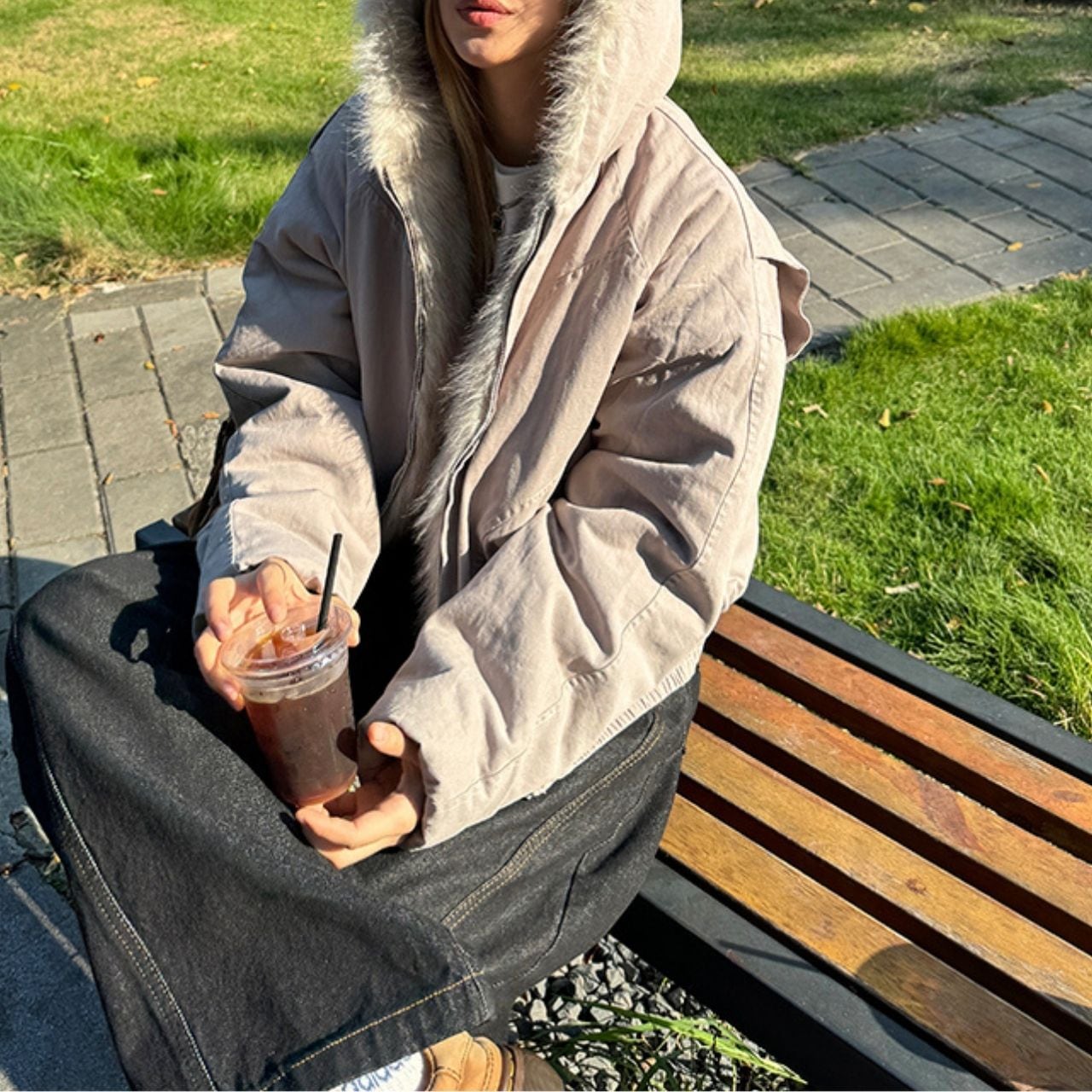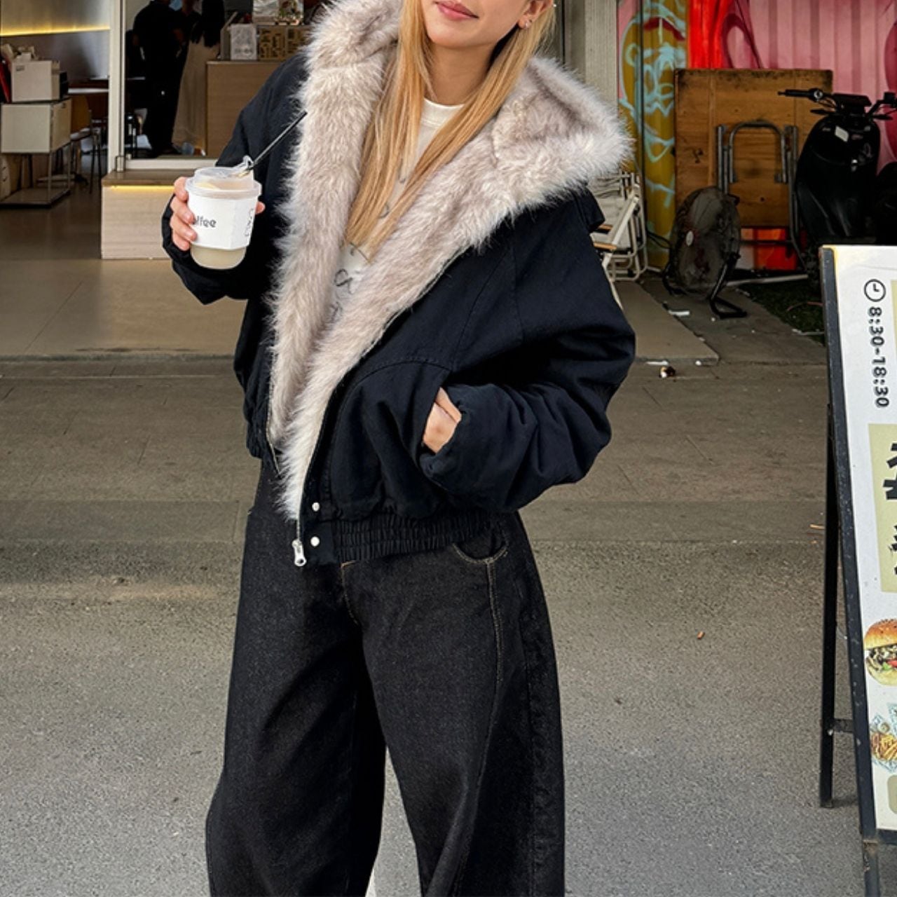 シンプルコーデの上に羽織るだけで、冬らしい存在感がぐっと高まる一枚です。