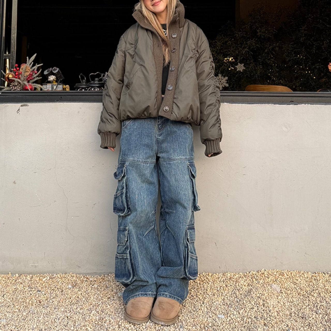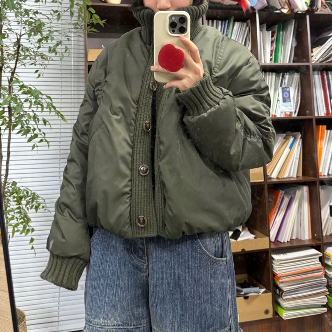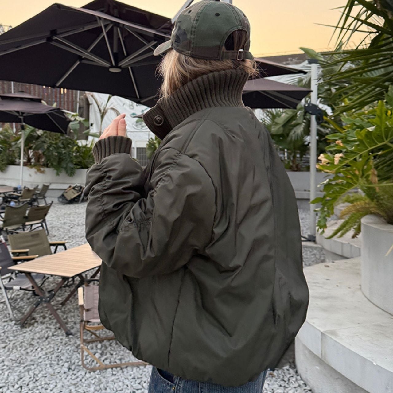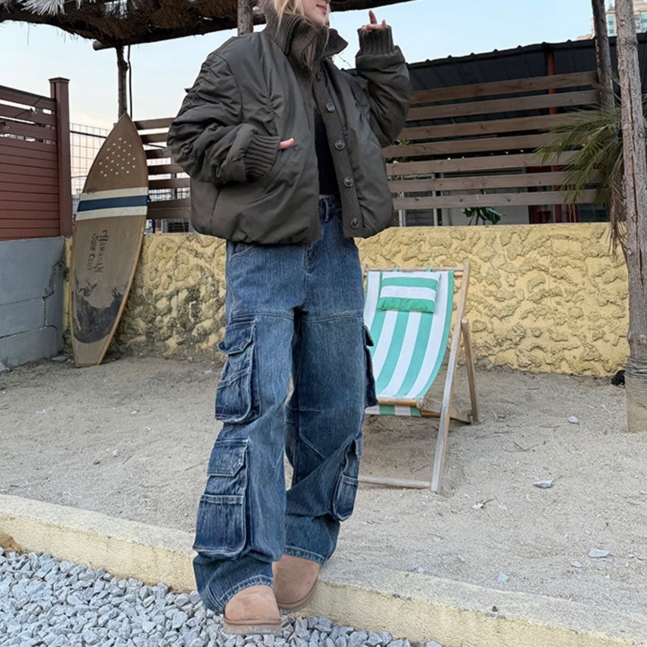 丸みのあるショート丈でバランスよく決まり、デニムとの相性も◎。