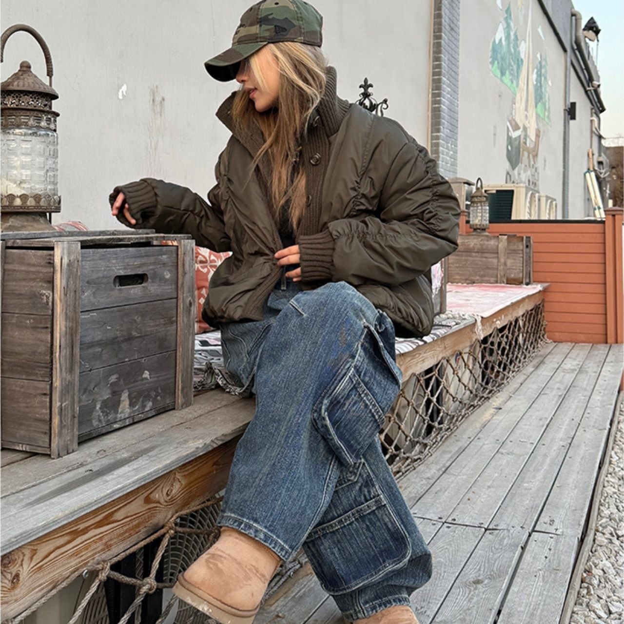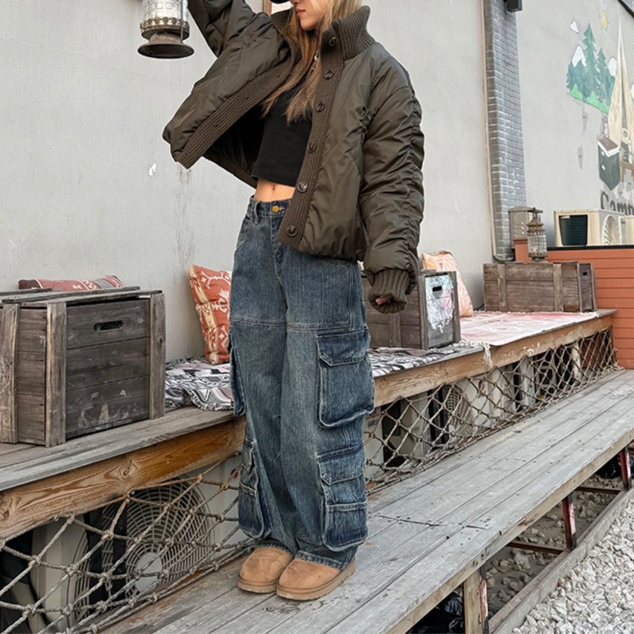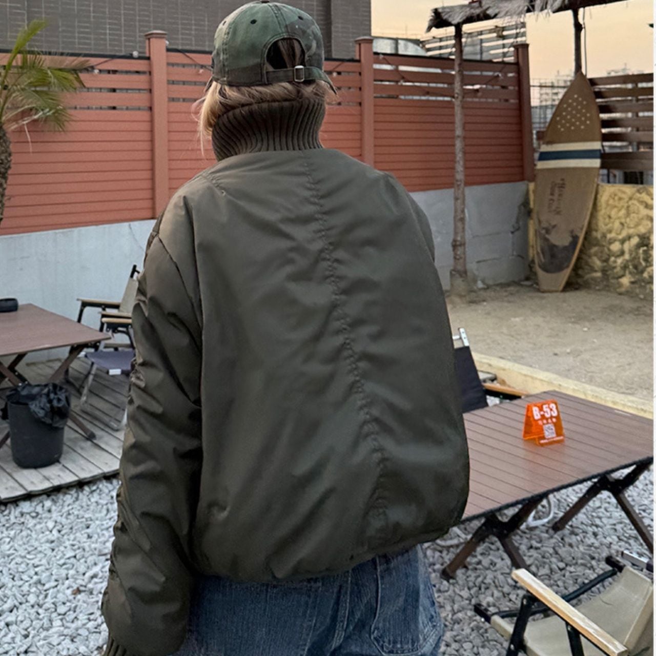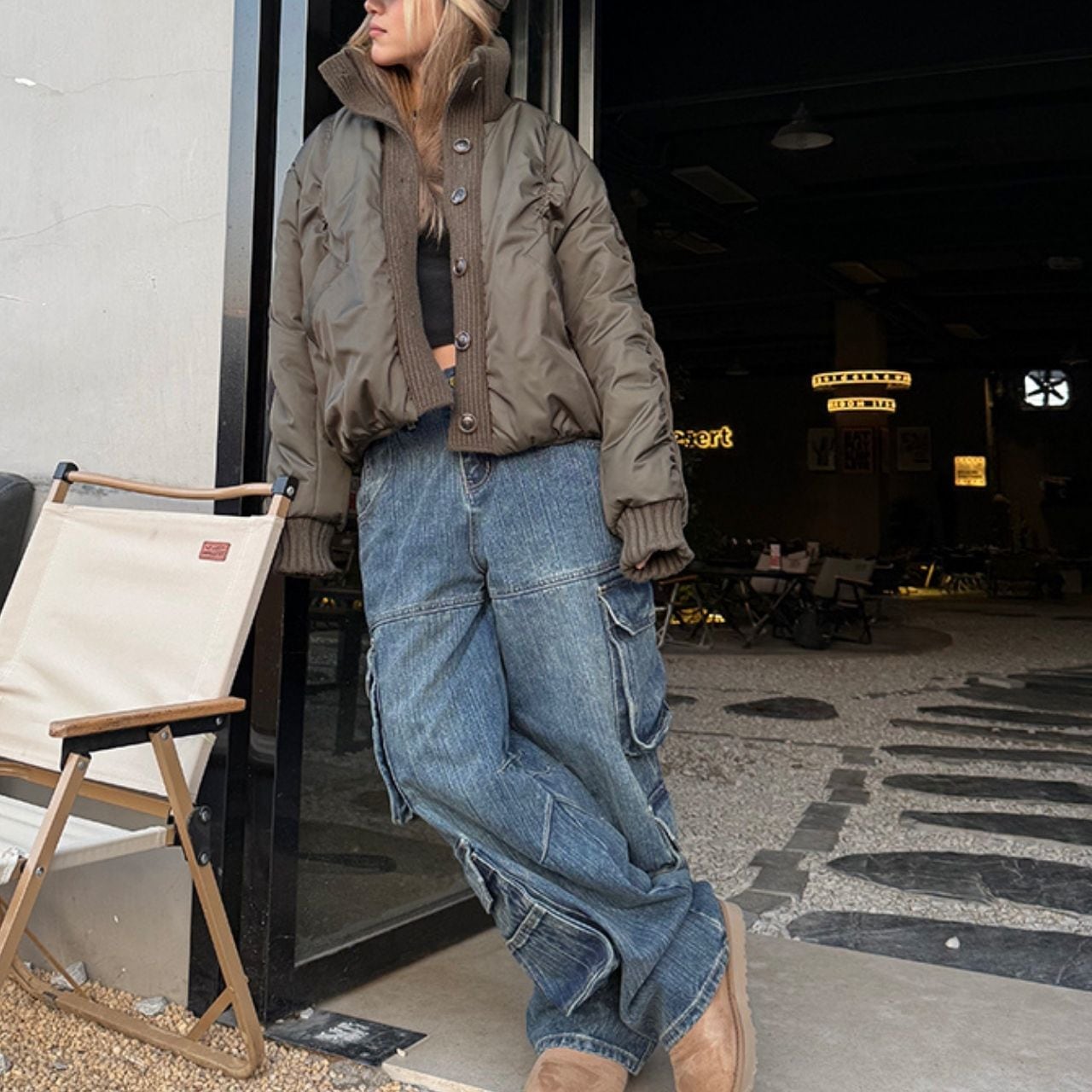 丸みのあるショート丈でバランスよく決まり、デニムとの相性も◎。