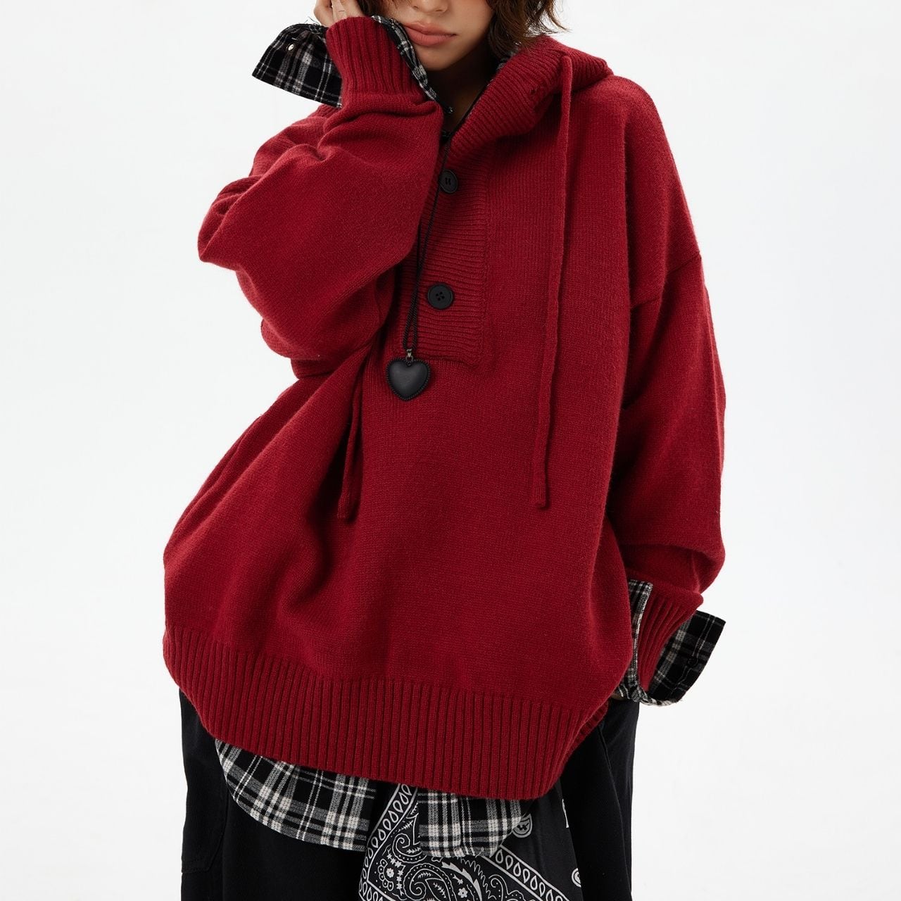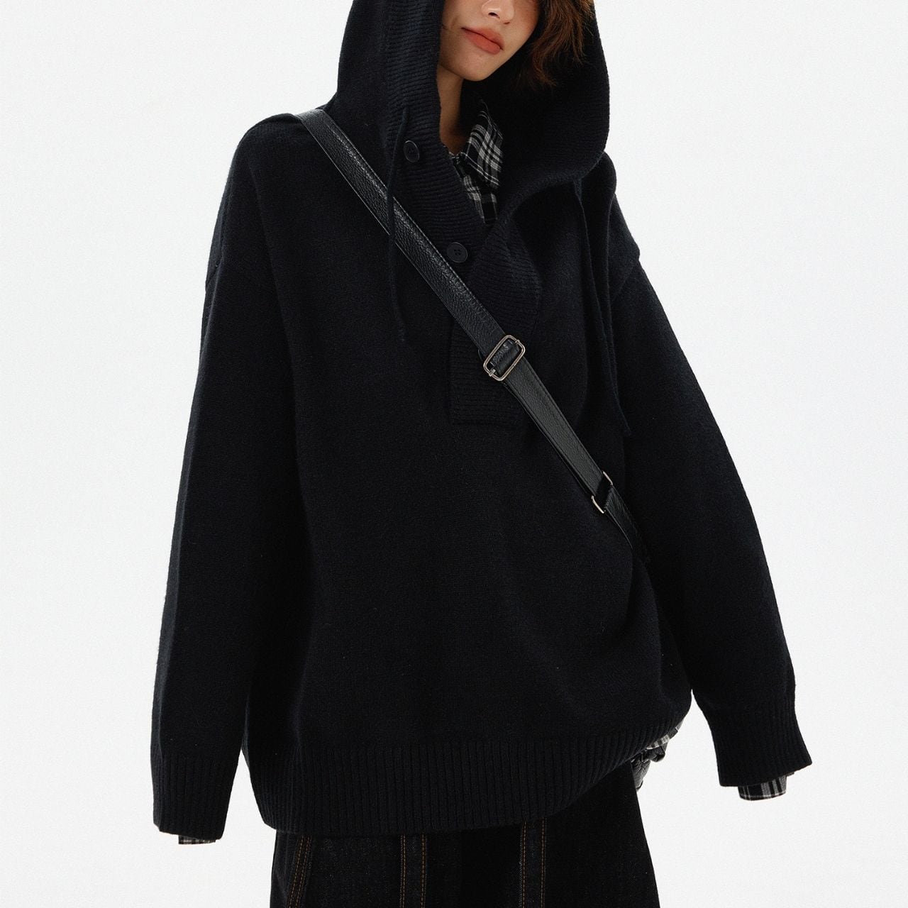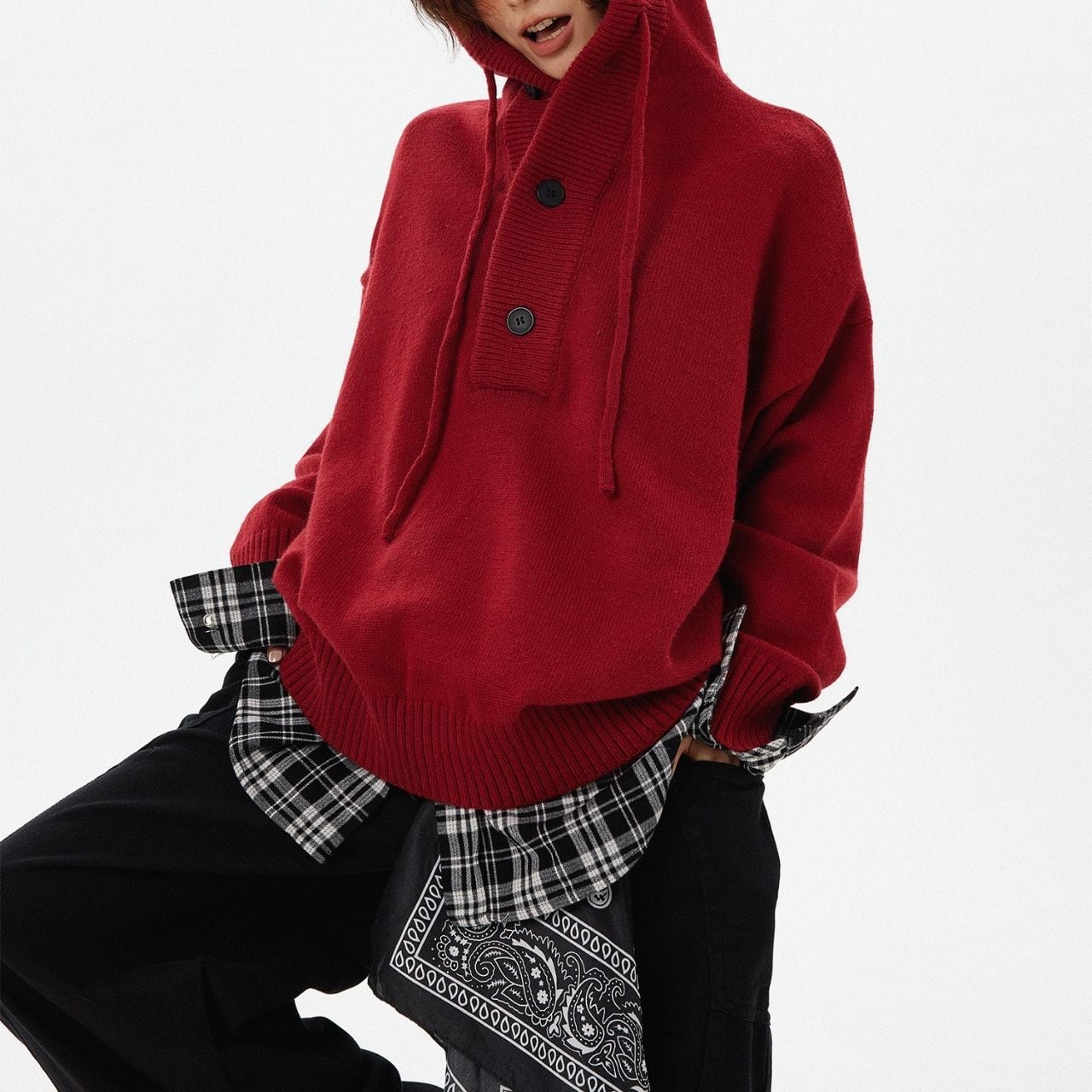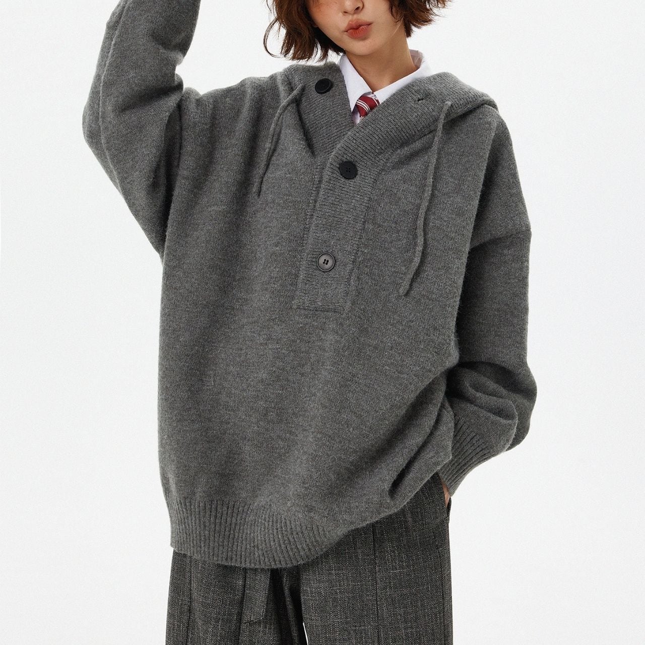 ゆるっとしたシルエットが可愛いオーバーサイズのフードニット。