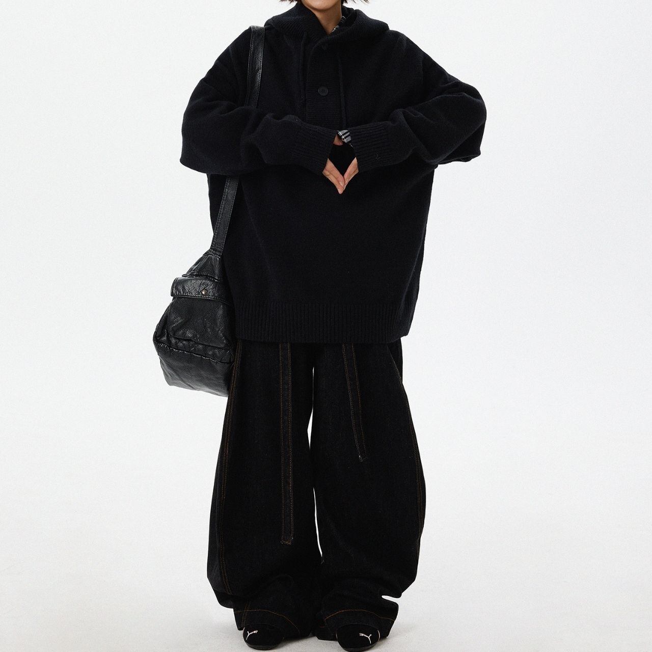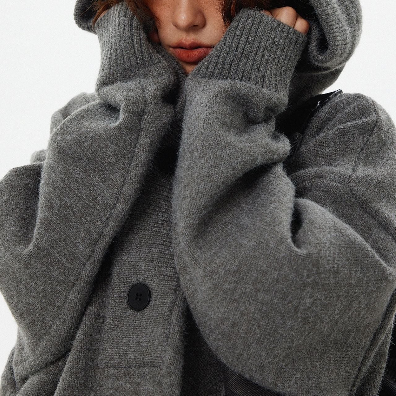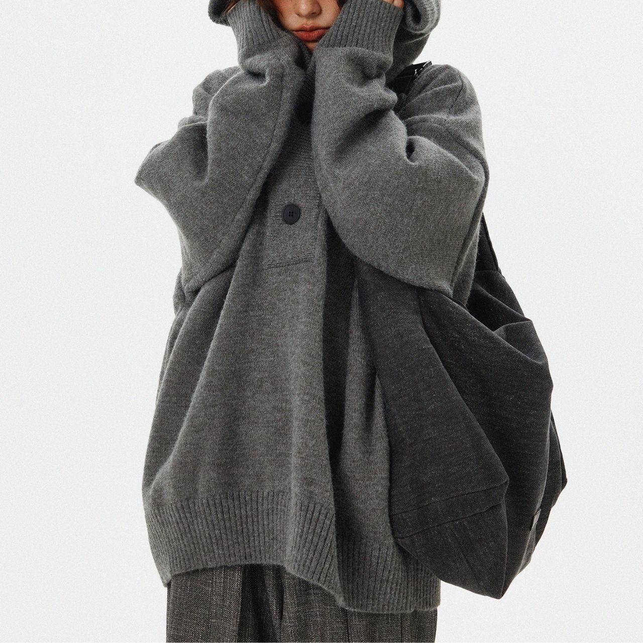 袖を長めにしたバランスがポイントで、思わず包まれたくなるような雰囲気に。